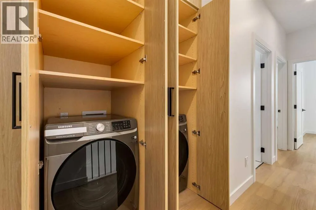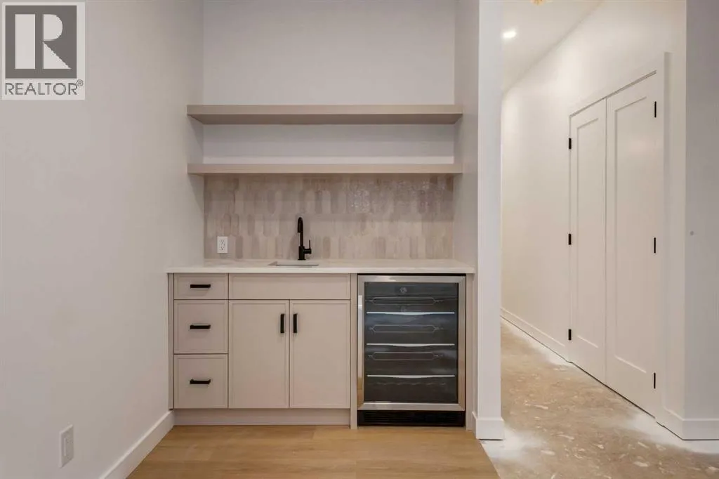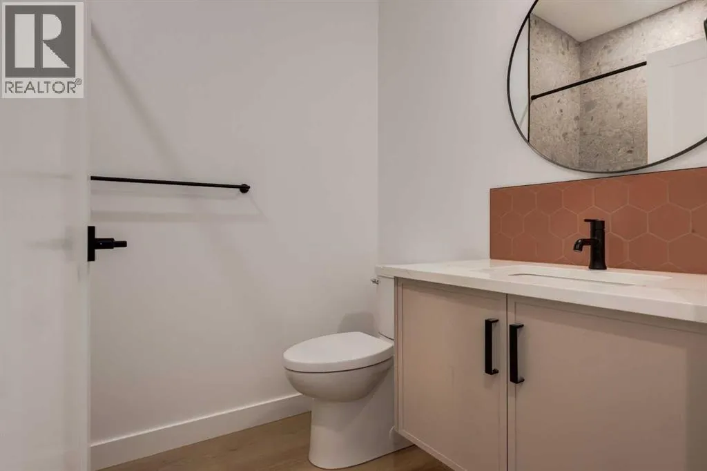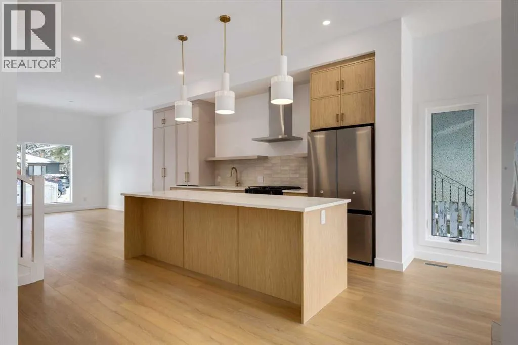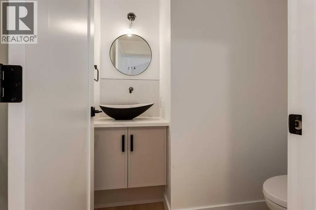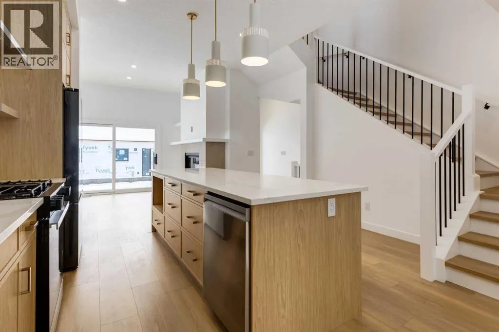 Welcome to a rare & refined opportunity on one of Bownessâ most coveted streets. Perfectly positioned along prestigious 33 Ave NW, this architecturally striking residence by Holt YYC Custom Homes offers an exceptional blend of modern design, quality craftsmanship, and an unbeatable inner city lifestyle. Just a five minute walk to Bowness Park & the Bow River pathway system, this home places nature, recreation, and city living within easy reach.This boutique tri-plex development is an attached single family home, NOT a townhome, meaning you own your land and there are no condo fees. It is similar to a traditional single family attached duplex but with three individual homes instead of two. Every detail reflects the design driven philosophy of Holt YYC Custom Homes, a Calgary based builder known for thoughtfully crafted homes and renovations that enhance the surrounding community. The project was personally overseen from concept to completion, ensuring exceptional attention to detail and superior construction quality.Inside, the home offers over 2,400 sq.ft. of finished living space with 3 bedrooms above grade & a 4th bedroom in the basement with large sunshine windows, along with 3.5 bathrooms. The main floor features flexible living with interchangeable dining, living, and den spaces, a custom fireplace, full height cabinetry, quartz counter-tops, stainless appliances, and luxury hard surface flooring throughout main/upper levels. The primary suite includes a private patio & spa inspired ensuite with walk-in shower and freestanding tub. The lower level includes a custom designed bar & spacious media room, ideal for entertaining. Large windows throughout the home fill the space with natural light, enhancing the modern & refined interior design. The exterior offers a generous backyard with a full custom deck and strong separation from neighbouring homes. Additional features include a detached double car garage, rough-in for air conditioning, a gas line for BBQ, an d a durable exterior finished with Hardie board siding and corrugated metal accents. Located in the heart of Bowness, residents enjoy a vibrant community w/ access to a growing mix of local cafes, restaurants, and shops. With quick access to downtown and the mountains, this location offers an exceptional connected lifestyle.With only three homes in this exclusive development, opportunities like this are rare. Experience modern luxury in one of Calgaryâs most dynamic and beloved neighbourhoods. Finishing touches are underway as the unit is currently under construction. Photos are of the show suite (Unit 3) and reflect the same finishing standards as Units 1. Property taxes have not yet been established and lot size is to be verified. Interior finishing is expected to be completed within 4 - 6 weeks, with landscaping & fencing scheduled for completion by June 2026. Units 1 is anticipated for occupancy btw mid June-mid July 2026. (id:27476)