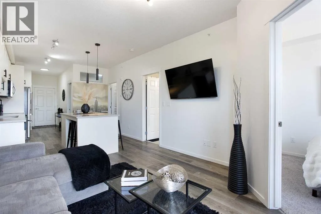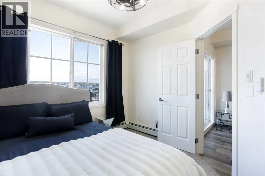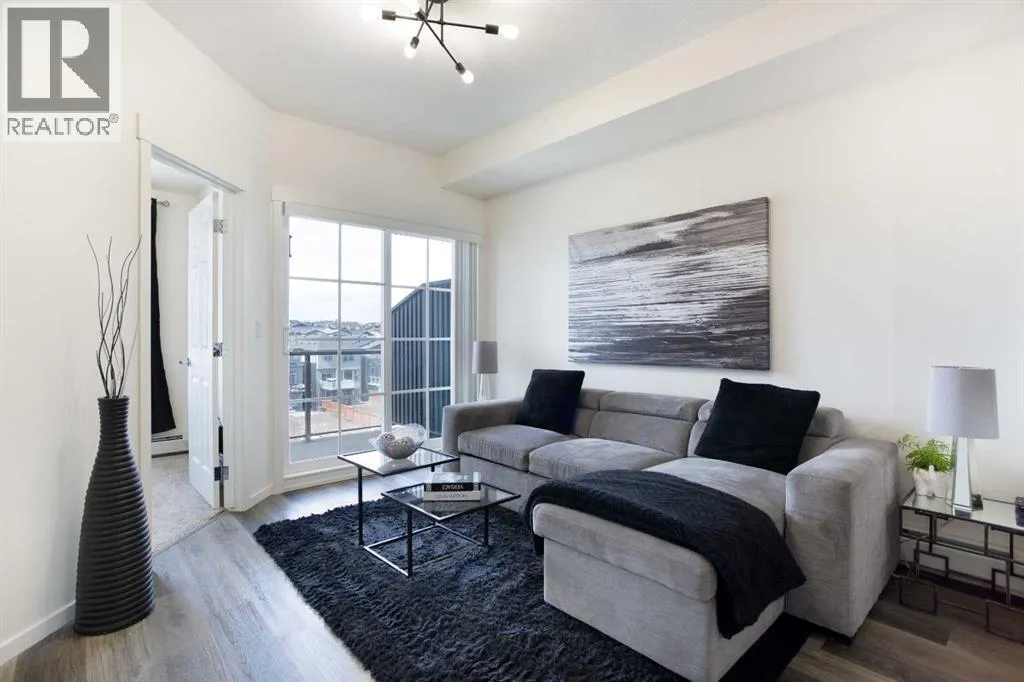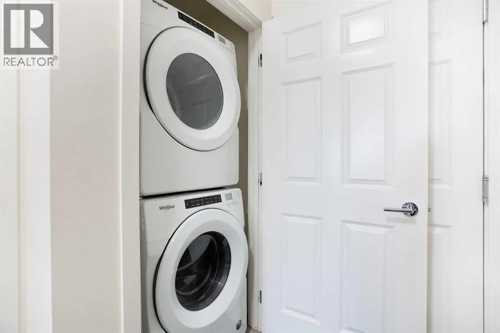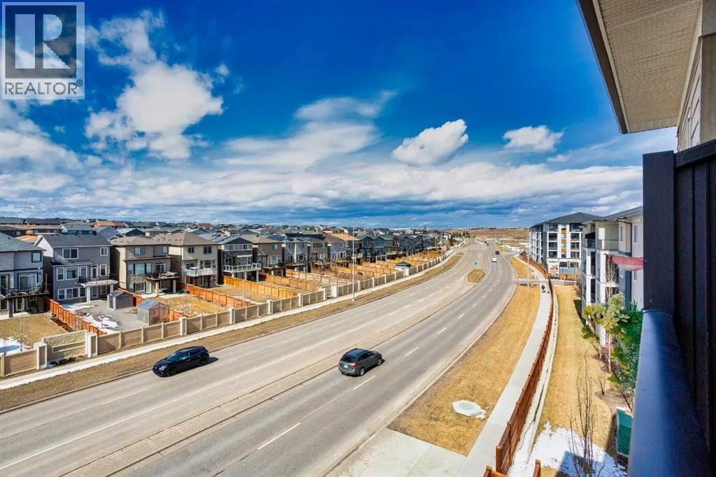 Bright and well maintained top floor condominium offering two bedrooms and a clean, functional layout that makes great use of the space. With 9 foot ceilings and modern vinyl plank flooring, the home feels open, bright, and easy to maintain.The kitchen is finished with quartz countertops, contemporary cabinetry with soft closing drawers, and a full stainless steel appliance package including a refrigerator, stove, built in dishwasher, and microwave hood fan. In suite laundry with a front loading washer and dryer adds everyday convenience. The kitchen flows naturally into the living area, creating a comfortable setting whether you are relaxing at home or having friends over.Both bedrooms are generously sized and positioned near the full bathroom, with the primary bedroom offering direct access to the ensuite style bathroom. Large windows throughout the unit bring in plenty of natural light, while the top floor location provides added privacy and quiet.Step outside to your own private balcony where you can enjoy some fresh air or unwind at the end of the day. The home also includes a titled parking stall and a separate storage locker, giving you extra room for seasonal items and added convenience.Situated in the community of Sage Hill, you are surrounded by walking paths, ponds, and green space while still being close to everyday amenities. Shopping, restaurants, and services are only minutes away at Sage Hill Crossing and Beacon Hill Centre, including major retailers such as Costco. With quick access to Stoney Trail, commuting across the city is simple and efficient.This is a great opportunity for someone looking for a modern, low maintenance condo in a growing northwest Calgary neighbourhood. (id:27476)