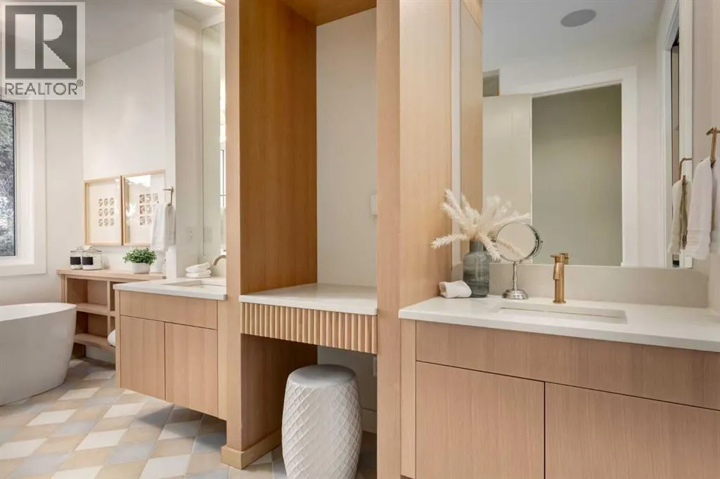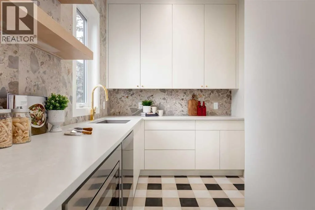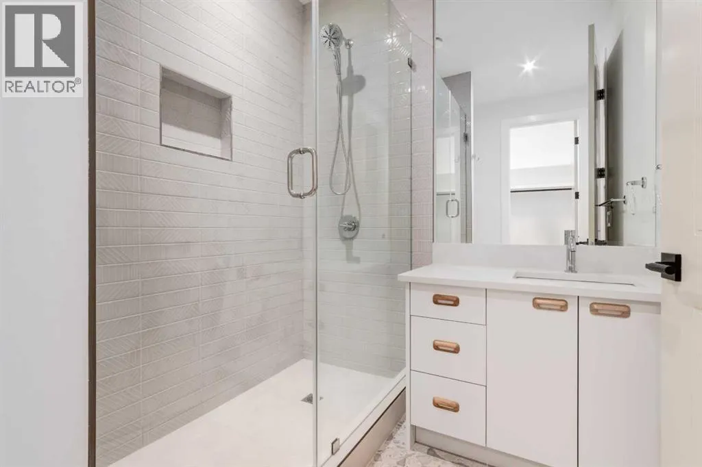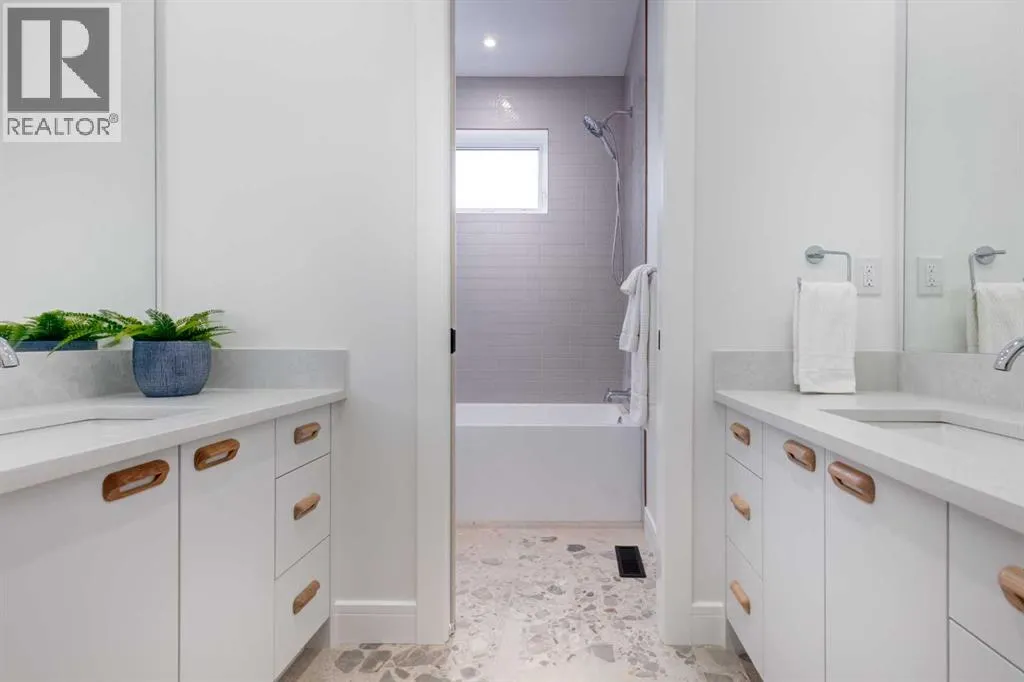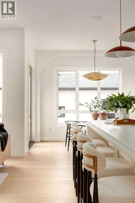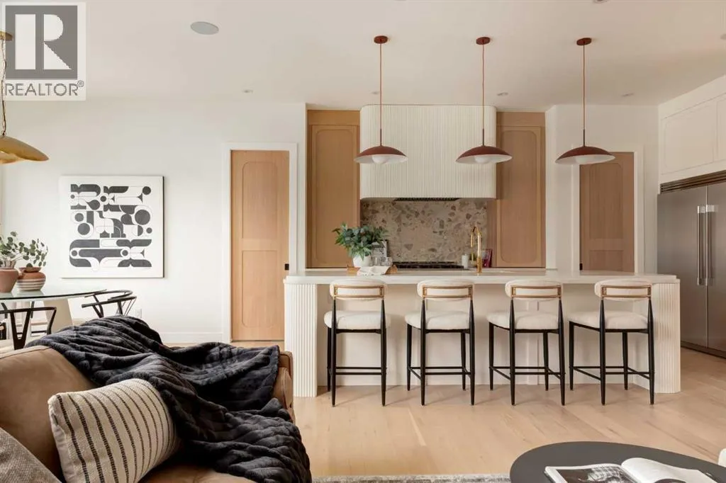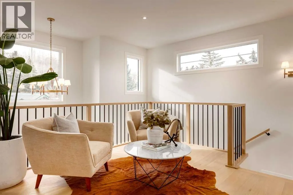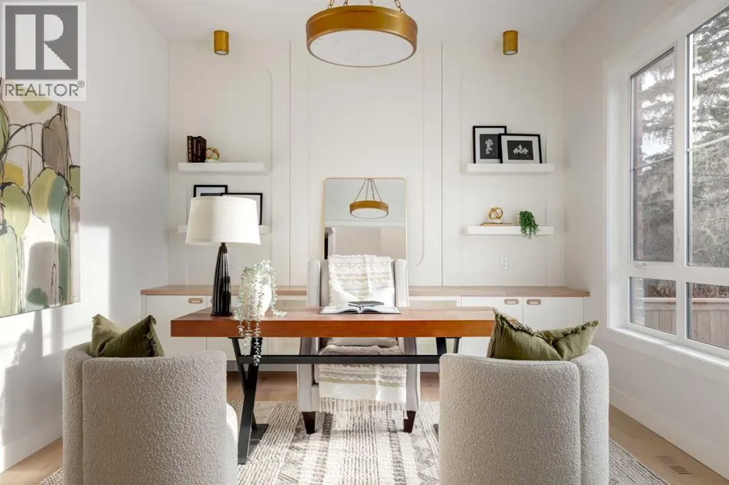 Welcome to 8812 33 Avenue NW, a brand-new luxury home by Platinum Build Homes, designed by Maxime Chin Designs, located on a wide lot in the sought-after community of Bowness. Offering nearly 3,800 sq ft of developed living space, this thoughtfully designed residence combines modern elegance with functional family living. The main floor features 10 ft ceilings and a bright, open-concept layout. A front office with custom built-ins sits behind French doors, while a stylish powder room adds a designer touch. The living room is anchored by a feature fireplace and large windows overlooking the private backyard and deck. The chef-inspired kitchen showcases white oak cabinetry, a quartz island, premium appliances, and a butlerâs pantry, seamlessly connecting to a mudroom with additional built-ins. Upstairs, the primary suite offers a vaulted ceiling, a walk-in closet, and a spa-like 6-piece ensuite complete with a soaker tub and steam shower. Two additional bedrooms share a 5-piece bathroom, and a bonus room and upper-level laundry provide added convenience. The fully finished basement is ideal for entertaining and everyday living, featuring a spacious recreation room with a wet bar, a home gym, two additional bedrooms, a 4-piece bathroom, and an extra powder room. Additional highlights include dual furnaces, ceiling speakers, and a built-in security system. Enjoy a prime location just minutes from the Bow River pathways, Bowness Park, schools, and downtown Calgary. Backed by Alberta New Home Warranty, this move-in-ready home offers an exceptional opportunity to own a high-quality new build in a vibrant inner-city community. (id:27476)