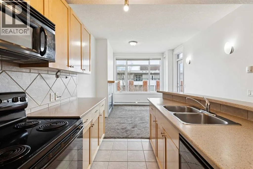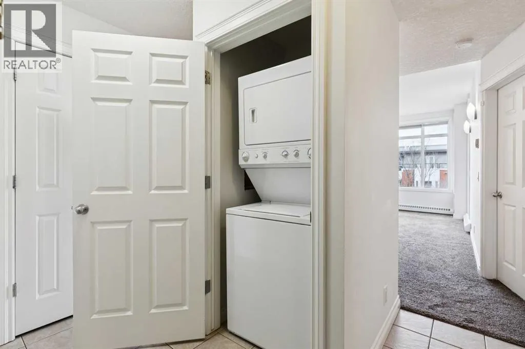 Welcome to this stunning 1-bedroom condo in the highly desirable Pontefino I complex, ideally located in the heart of Bridgeland. This well built CONCRETE building offers superior sound insulation and long term durability. Inside, youâll find high ceilings and large west-facing windows that flood the open concept living space with natural light throughout the day. The thoughtfully designed galley kitchen features sleek black appliances, a breakfast bar, plenty of storage & prep space, & seamless flow into the spacious living area, perfect for both entertaining & everyday living. The generously sized primary bedroom includes dual closets & convenient cheater access to the main bathroom. Additional highlights include in-suite laundry & a large private balcony with beautiful west-facing views & a gas line for bbq. This condo checks all the boxes with titled underground parking, an assigned storage locker, & secure bike storage. Located just steps from Bridgelandâs vibrant amenities including local cafés, restaurants, & boutique shops; youâll also love the large park right across the street and easy access to the Bow River pathway system for walking and cycling. Walk to the LRT station (just 600m away) & enjoy a quick & convenient commute to downtown. Donât miss your chance to own an affordable first home in one of Calgaryâs most sought-after inner-city communities! (id:27476)