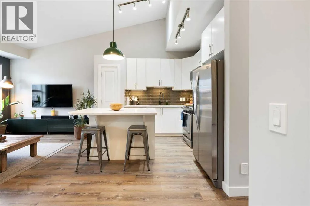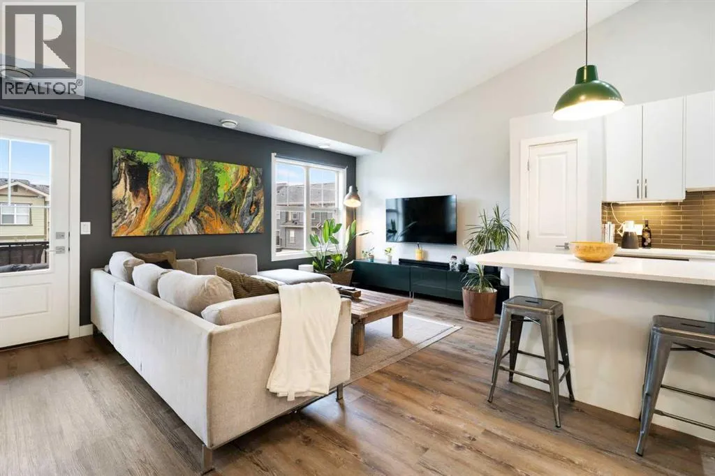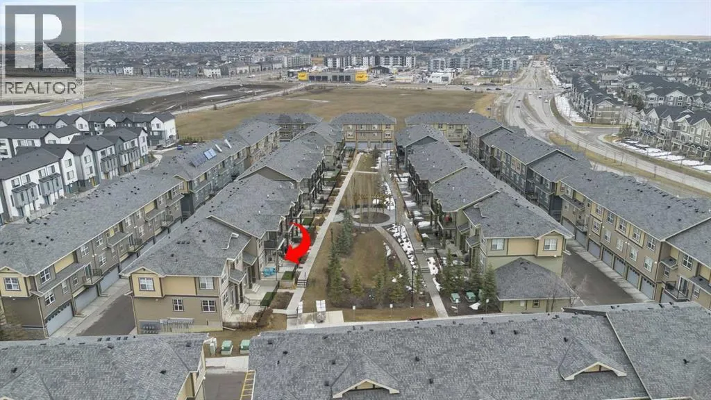Welcome Home to The Link at Evanston! This well-maintained 2 bedroom townhome is perfect for first time buyers, empty nesters and students or anyone looking for the convenience of low maintenance living. The main living area is open concept with vaulted ceilings and light palette making it bright and airy. The well-appointed kitchen comes complete with quartz counters, gas stove, pantry, and a nice sized island with breakfast bar. Off the living room is a balcony with BBQ gas line that overlooks the community courtyard. The additional outside storage closet is perfect for seasonal items. The primary bedroom has a nice sized walk-in closet. A 2nd bedroom and 4pc bath with in-suite laundry finishes off this functional home. There is a single attached garage with room for storage and an additional storage alcove on the lower level. Steps to Transit with 2 direct routes to the Northern Pointe Transit Terminal. Walking distance to the amenities of Evanston Towne Centre & the Shops of Carrington Centres. The area offers plenty of walking paths, parks and skatepark. Easy access to Stoney Tr Ring Rd and 14 St NW. (id:27476)