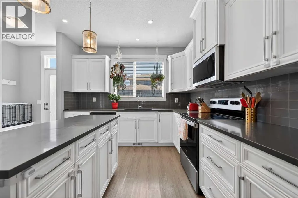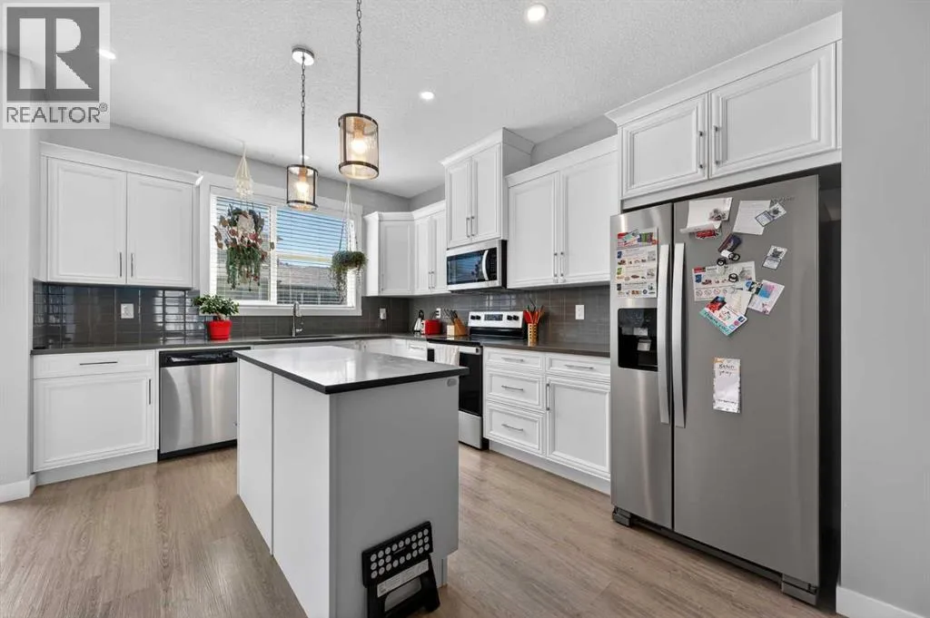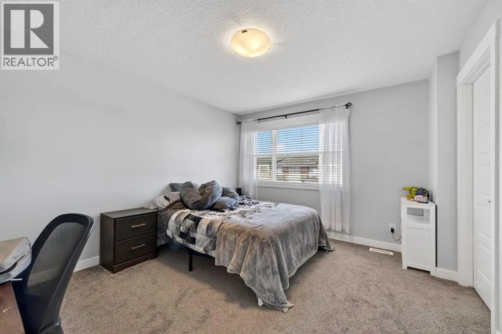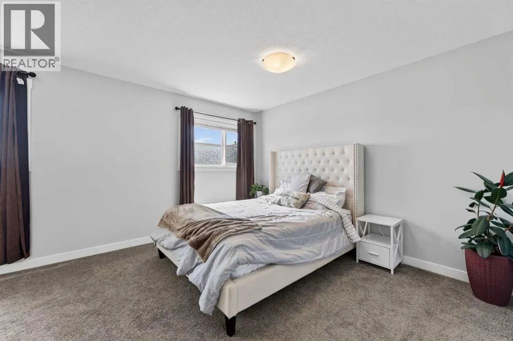 Welcome to this beautifully maintained NO CONDO FEE, CORNER UNIT home offering the perfect blend of functionality, style, and location. Situated on a desirable south-facing lot, this home is bathed in natural light, creating a warm and inviting atmosphere. When you walk in, youâll notice the thoughtfully designed open-concept main floor. It is ideal for both everyday living and entertaining, featuring a stunning kitchen complete with upgraded cabinetry, quartz countertops, and stainless steel appliances. The home continues to impress with custom built-ins including a bench in the rear mudroom, and a versatile built-in nook - perfect as a home office. A convenient 2-piece powder room completes this level. Upstairs, youâll find TWO SPACIOUS PRIMARY BEDROOMS, each with its own large walk-in closet and private 4-piece ensuite, separated by the convenience of upper floor laundry. The basement is ready for your future development with an egress window and bathroom rough-in. Enjoy the sunny SOUTH-FACING FENCED BACKYARD, perfect for gardening or relaxing, along with a BBQ gas line for easy outdoor entertaining. The double detached garage offers ample space for vehicles and storage, with paved alley access for added ease. Additional upgrades include CENTRAL AIR CONDITIONING and a recently installed WATER SOFTENER, adding comfort and long-term value. Location is unbeatable. Just steps from Sky Pointe Landing plaza, a major retail hub offering dining, shopping, fitness, medical services, and everyday essentials. Families will appreciate being within walking distance to both Prairie Sky School (Public K-9) and Apostles of Jesus School (Catholic K-9), with Nelson Mandela High School just a short drive away. Commuting is effortless with a bus stop only a 1-minute walk from your door, making this a highly transit-friendly location. Whether you're a first-time buyer, downsizer, or investor, this is a rare opportunity to own an exceptional property in one of Calgaryâs fastest-growin g communities. Book your showing today! (id:27476)