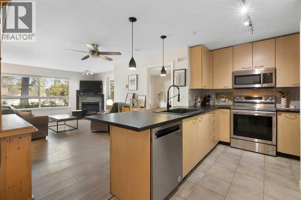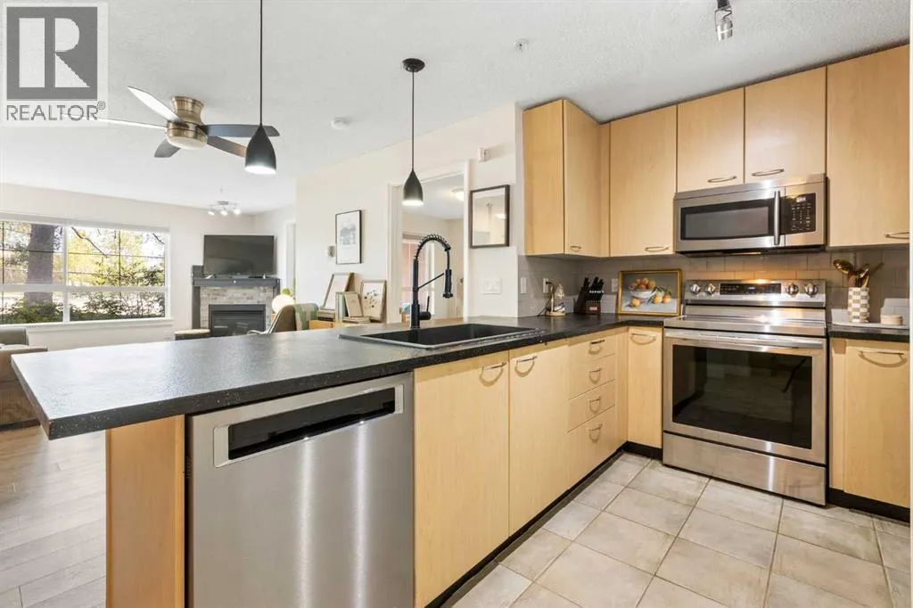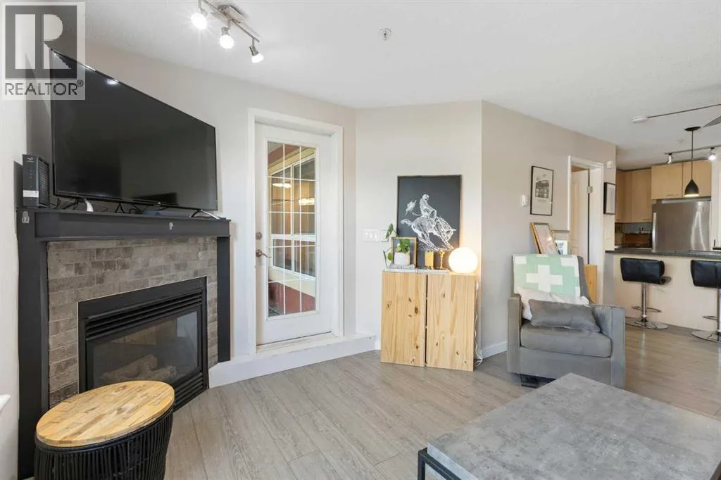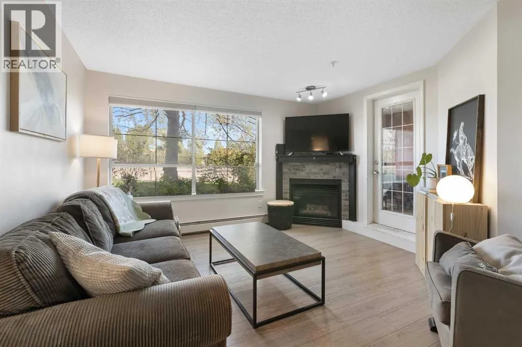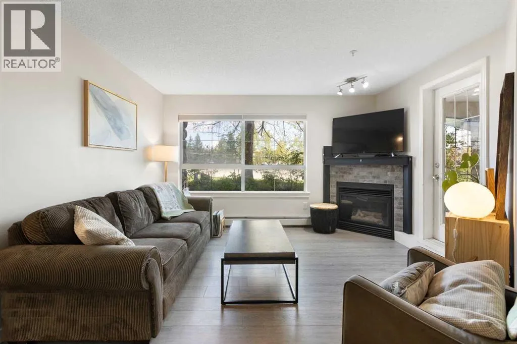 WELCOME HOME â amenities galore! This spacious and beautifully updated main floor unit features 2 bedrooms and 2 bathrooms, offering an ideal layout with bedrooms split by a spacious living and dining area. The unit opens up with a large front entryway, open-concept living, and stylish finishes throughout including newer vinyl plank flooring and a fresh modern colour palette. The well-appointed kitchen features upgraded stainless steel appliances, pantry, and plenty of cabinetry. The bright living room is highlighted by large windows and a cozy corner gas fireplace and opens onto a generous covered patio that backs onto green spaceâideal for relaxing or for owners looking for easy outdoor access. The large primary bedroom includes a 4-piece ensuite, a walkthrough closet & a window overlooking the patio. A second bedroom sits across from a 3 piece bath, perfect for guests or roommates. There's also flexible den spaceâideal for a home office or extra storage. Additional features include 2 titled underground parking stalls, in-suite laundry, and access to premium building amenities such as a fitness centre, party room, bike storage, visitor parking, and a beautiful private courtyard. Ideally located just steps from Mount Royal University, with easy access to Stoney Trail, Crowchild Trail, Glenmore Trail, downtown, and within walking distance to transit, coffee shops, restaurants, and shoppingâthis is a fantastic opportunity for first-time buyers, students, investors, or those looking to downsize without compromising lifestyle. Get in touch today and snag one of the best units in the building! (id:27476)