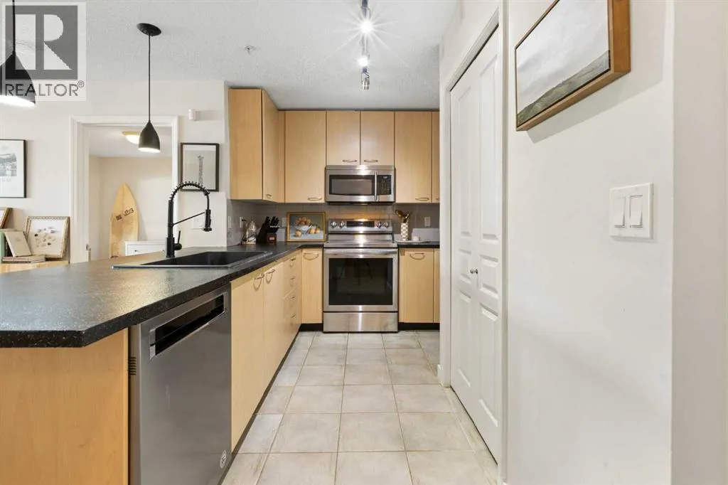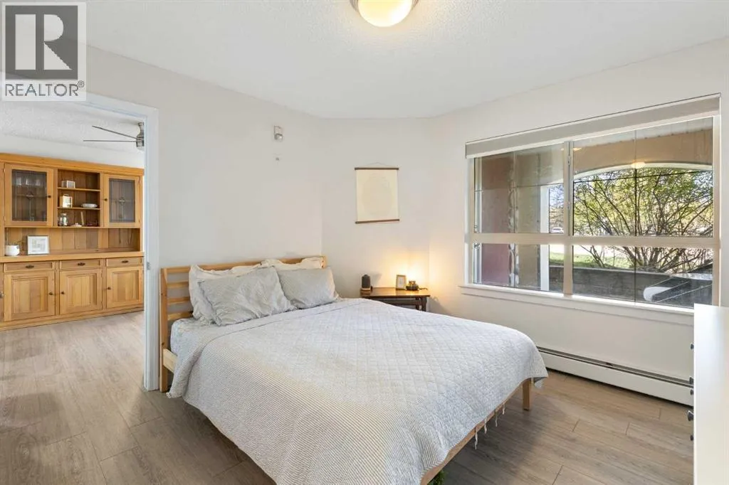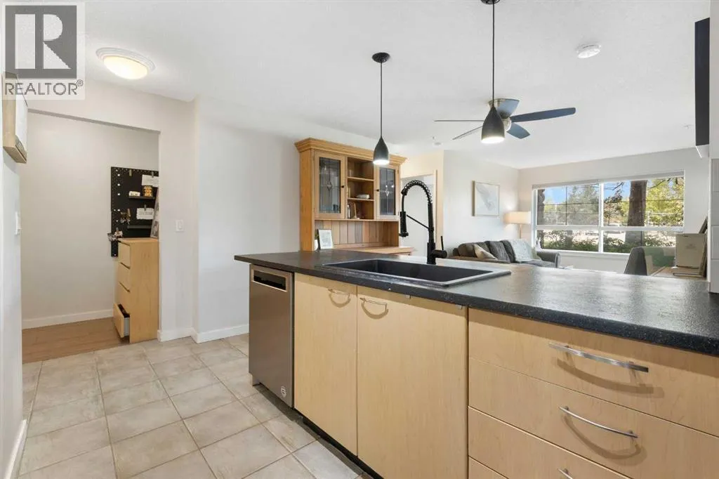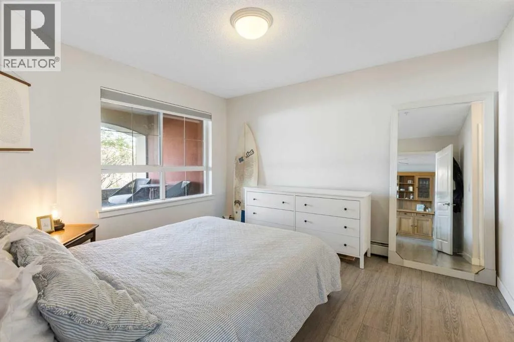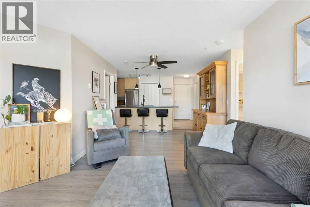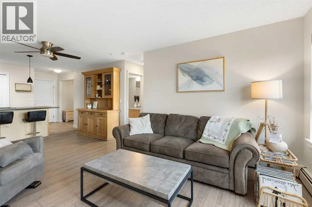 WELCOME HOME â amenities galore! This spacious and beautifully updated main floor unit features 2 bedrooms and 2 bathrooms, offering an ideal layout with bedrooms split by a spacious living and dining area. The unit opens up with a large front entryway, open-concept living, and stylish finishes throughout including newer vinyl plank flooring and a fresh modern colour palette. The well-appointed kitchen features upgraded stainless steel appliances, pantry, and plenty of cabinetry. The bright living room is highlighted by large windows and a cozy corner gas fireplace and opens onto a generous covered patio that backs onto green spaceâideal for relaxing or for owners looking for easy outdoor access. The large primary bedroom includes a 4-piece ensuite, a walkthrough closet & a window overlooking the patio. A second bedroom sits across from a 3 piece bath, perfect for guests or roommates. There's also flexible den spaceâideal for a home office or extra storage. Additional features include 2 titled underground parking stalls, in-suite laundry, and access to premium building amenities such as a fitness centre, party room, bike storage, visitor parking, and a beautiful private courtyard. Ideally located just steps from Mount Royal University, with easy access to Stoney Trail, Crowchild Trail, Glenmore Trail, downtown, and within walking distance to transit, coffee shops, restaurants, and shoppingâthis is a fantastic opportunity for first-time buyers, students, investors, or those looking to downsize without compromising lifestyle. Get in touch today and snag one of the best units in the building! (id:27476)
