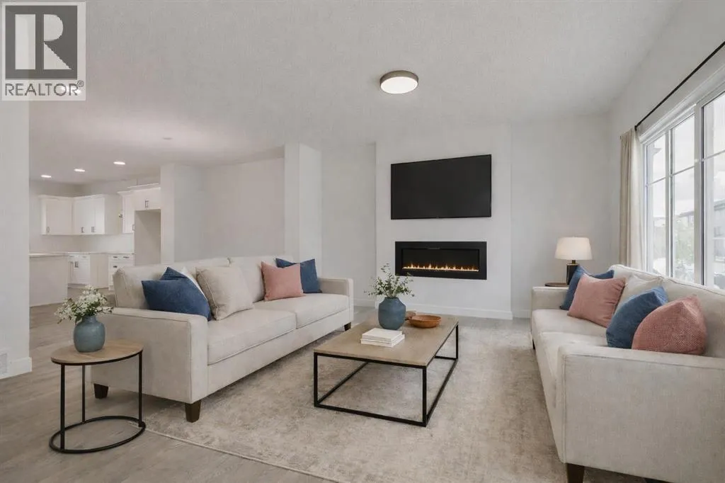 OVER 2000 SQFT WITH A 4TH BEDROOM ON THE MAIN FLOOR & FULL BATH - DESIGNED FOR MODERN FAMILY LIVING! Welcome to Dalton by Akash Homes in the vibrant SW community of Belmont. This thoughtfully designed zero-lot-line home offers a bright open-concept main floor featuring a spacious kitchen with large island, pantry, and seamless flow into the dining nook and living room with fireplace, perfect for entertaining. The main floor bedroom and full bathroom provide incredible flexibility for guests, multigenerational living, or a private office space.Upstairs youâll find 3 generously sized bedrooms, including a primary retreat with walk-in closet and ensuite, along with a central bonus room and convenient upper floor laundry. Built with comfort and style in mind, this home features 9â ceilings and quartz countertops throughout, delivering a clean, modern finish. PLUS A SEPARATE SIDE ENTRANCE AND $5000 BUILDER APPLIANCE CREDIT TO THE BRICK.Located in Belmont, enjoy parks, pathways, future schools, and quick access to Macleod Trail, Stoney Trail, shopping, and transit.PICTURES ARE ARTIST CONCEPT; ACTUAL HOME, PLANS, FIXTURES, AND FINISHES MAY VARY AND ARE SUBJECT TO CHANGE WITHOUT NOTICE. (id:27476)