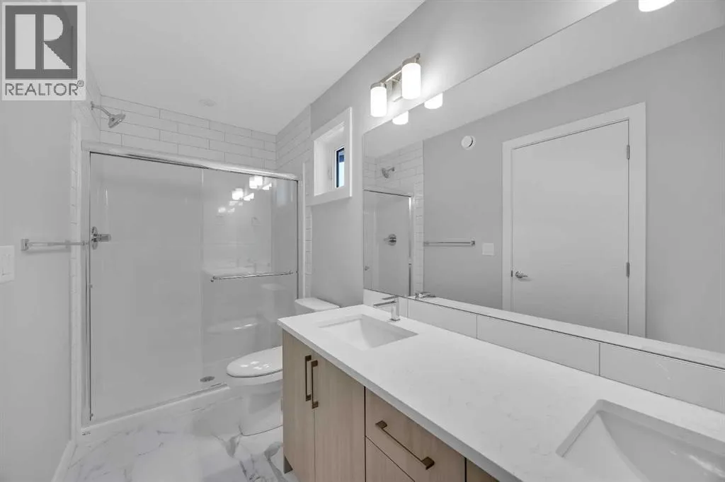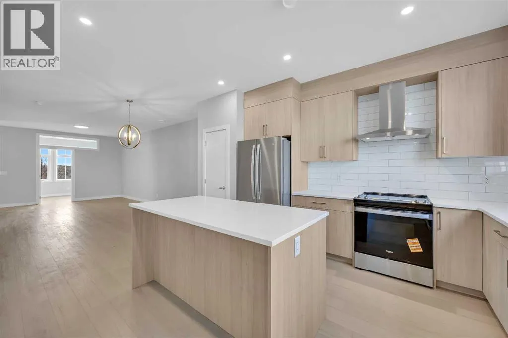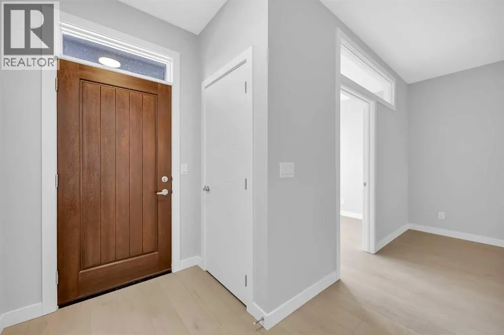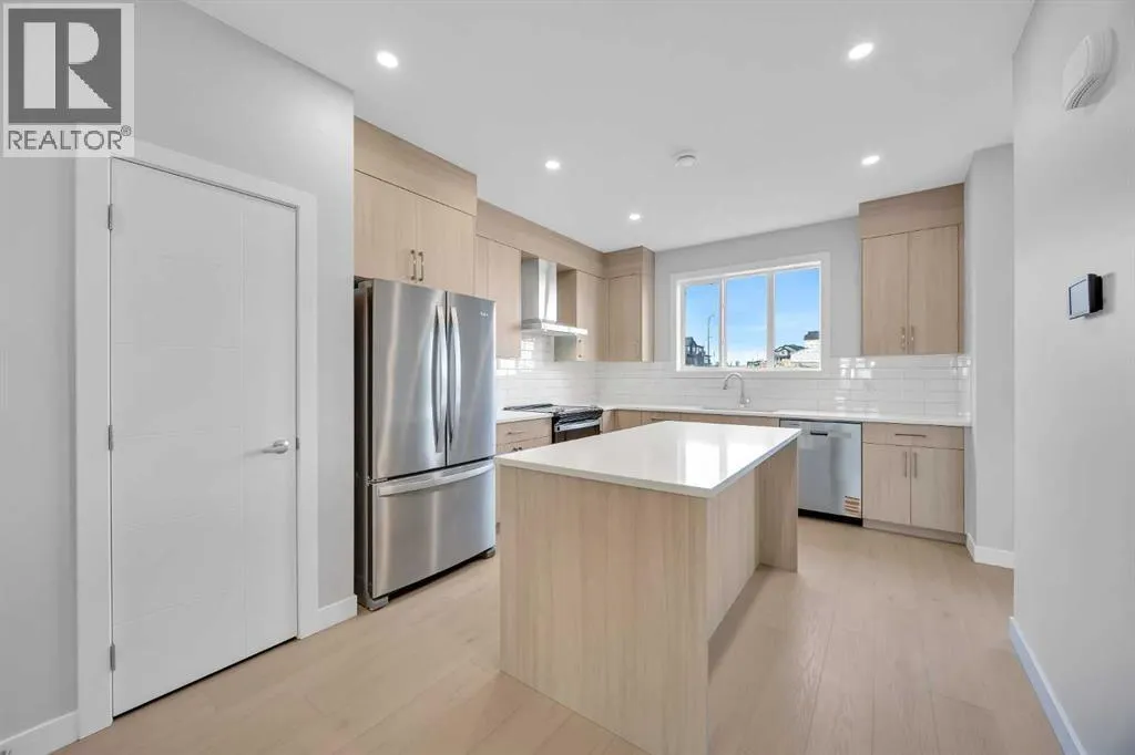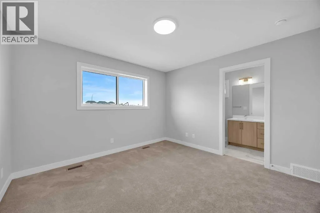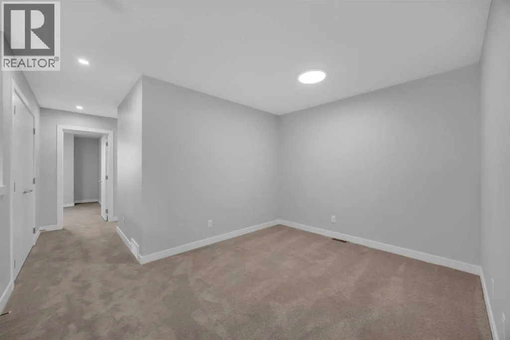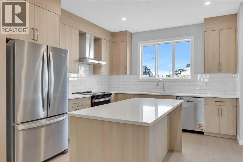 Welcome to The Edward by Partners Homes in Keystone Creek, a brand new home in NE Calgary offering 4 bedrooms including a main floor bedroom, 3 full bathrooms, a central bonus room, and a side entrance. Designed for modern living, this home combines a functional layout, upgraded finishes, and flexibility in one of North Calgaryâs growing communities. The main floor features a bright open concept layout with a front flex room that can easily be used as a fourth bedroom, home office, or guest space, ideal for multi-generational living. A full bathroom is also located on the main level. The kitchen is the focal point of the home, finished with full height cabinetry, quartz countertops, a large island, and a chimney-style hood fan with built-in microwave. The stainless steel appliance package includes an upgraded electric range, along with a gas line to the range. The dining and living areas flow together seamlessly, creating a comfortable space for everyday living and entertaining. A rear mudroom provides additional storage and access to the backyard, and a BBQ gas line is already in place. Upstairs, the primary bedroom offers a private retreat with a walk-in closet and ensuite featuring dual vanities and a tiled walk-in shower. Two additional bedrooms and a central bonus room provide flexible living space, perfect for a family room, media area, or playroom. Upper level laundry with washer and dryer is included for added convenience. The basement features 9 foot ceilings and a wet bar rough-in, offering additional space for future development. Additional features include knockdown ceilings, a prairie elevation, upgraded interior finishes, front landscaping, and a 20â x 21â gravel parking pad with alley access and future garage potential. Located in Keystone Creek, NE Calgary, this home offers access to parks, pathways, and nearby amenities, with convenient connections to Stoney Trail, Deerfoot Trail, CrossIron Mills, and Calgary International Airport. A well-designed n ew construction home in North Calgary that offers space, flexibility, and long-term value. (id:27476)