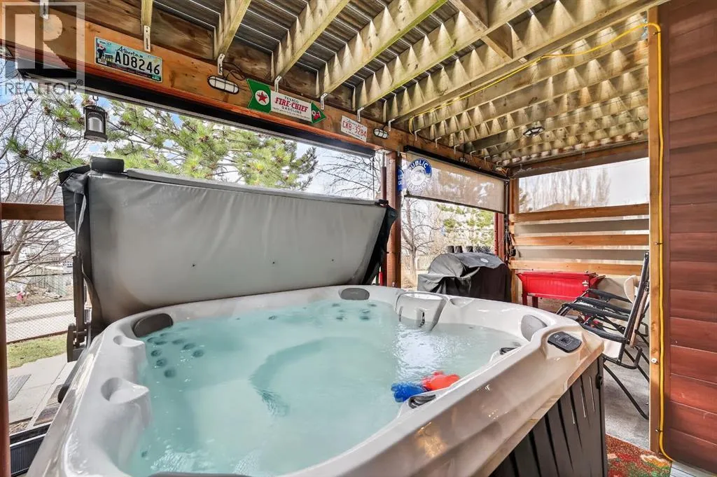 Welcome to this beautifully updated family home in the sought-after lake community of Arbour Lake, just minutes from year-round lake amenities. Offering nearly 3,000 sq. ft. of developed living space, this property sits on an expansive pie-shaped lot of over 7,500 sq. ft. with rear alley accessâperfect for those needing extra space for RV or boat parking with convenient gated entry.Step inside to an impressive front entrance featuring a grand staircase and a spacious formal dining roomâideal for hosting and family gatherings. The main level showcases a functional layout with a bright kitchen complete with quartz countertops, updated tile flooring, and an adjoining dining nook. Just off the kitchen, the inviting living room features a cozy gas fireplace, while remote-controlled curtains add a modern touch. Smart-controlled blinds throughout the main and upper levels provide both convenience and style. The main floor also includes a convenient laundry room with direct access to the garage, along with a 2-piece bathroom.Upstairs, youâll find four generously sized bedrooms, all equipped with ceiling fans. The primary retreat includes a large walk-in closet and a well-appointed 4-piece ensuite. An additional 4-piece bathroom completes the upper level, making it perfect for growing families.The partially developed walkout basement offers excellent flexibility, featuring a spacious entertainment area with a pool table, a dedicated workshop space, and additional room for storage or future development.Step outside to the covered under-deck patio with a hot tub, seamlessly connecting you to the expansive and beautifully landscaped backyard complete with mature trees and a storage shed.Outdoor living is equally impressive with a large deck, covered pergola, and hanging string lightsâideal for relaxing or entertaining. The front yard is fully fenced with a gate, creating a private front seating area perfect for enjoying your morning coffee.This home has been thought fully updated over the years, including newer shingles, hot water tank, flooring, a renovated upper-level bathroom, a replaced garage door, and upgraded exterior siding with a more modern finishâproviding peace of mind and move-in-ready comfort.A rare opportunity to own a spacious, feature-packed home on a premium lot in one of Calgaryâs most desirable lake communities. (id:27476)