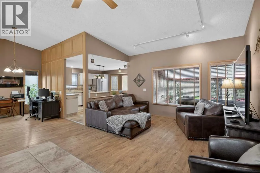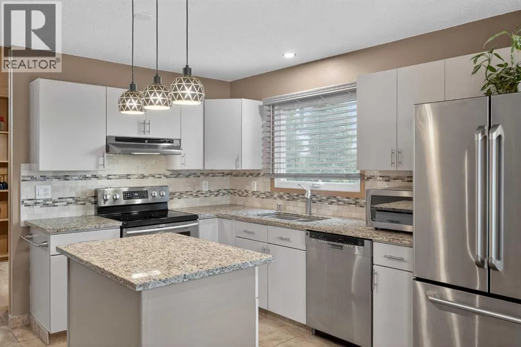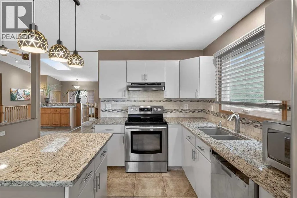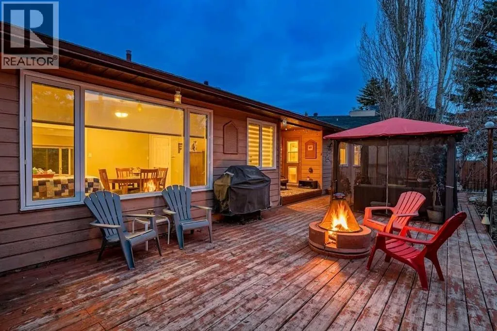 Nestled on a quiet, tucked-away street in the prestigious ESTATES OF DEER RUN, this exceptional bungalow offers a rare combination of sophisticated upgrades and an unbeatable location just steps from the natural beauty of Fish Creek Park. The heart of the home is designed for both comfort and style, featuring elegant granite countertops, stainless steel appliances, and a main living area highlighted by unique antique mirror shelving and a cozy, natural gas fireplace. Natural light pours into the space through a skylight equipped with remote-controlled blinds, while the functional layout includes the convenience of main-floor laundry and a dedicated wet bar for seamless entertaining. With five spacious bedrooms and three bathrooms, the home offers plenty of room for a growing family, including a basement bedroom that was originally a sauna and can easily be reverted for those seeking a private spa retreat.The exterior of the property is a masterclass in low-maintenance luxury and year-round enjoyment. The front yard makes a striking first impression with decorative grey rock landscaping and an underground sprinkler system, while the front entrance is secured with an included Nest video doorbell. In the backyard, a sprawling deck leads to a private oasis complete with a firepit and a gazebo featuring solid winter curtains for four-season use. For the outdoor chef, the BBQ is hooked up to a natural gas line and can be included with the home. Practicality extends to the mechanical systems as well, with a brand-new hot water tank, a new furnace, and a humidifier ensuring peak efficiency. Additionally, an extra fuse panel is already conveniently located in the cold storage room to accommodate a future hot tub.Car enthusiasts and hobbyists will find their sanctuary in the oversized double heated garage, which comes fully equipped with a built-in workbench, ample shelving, and the rare luxury of hot and cold water taps. Storage is abundant throughout the property, ensur ing every item has its place. From the meticulous interior finishes to the tech-ready upgrades and the prime location near Calgaryâs favourite provincial park, this home represents a premier opportunity to live in one of the city's most sought-after estate enclaves. (id:27476)