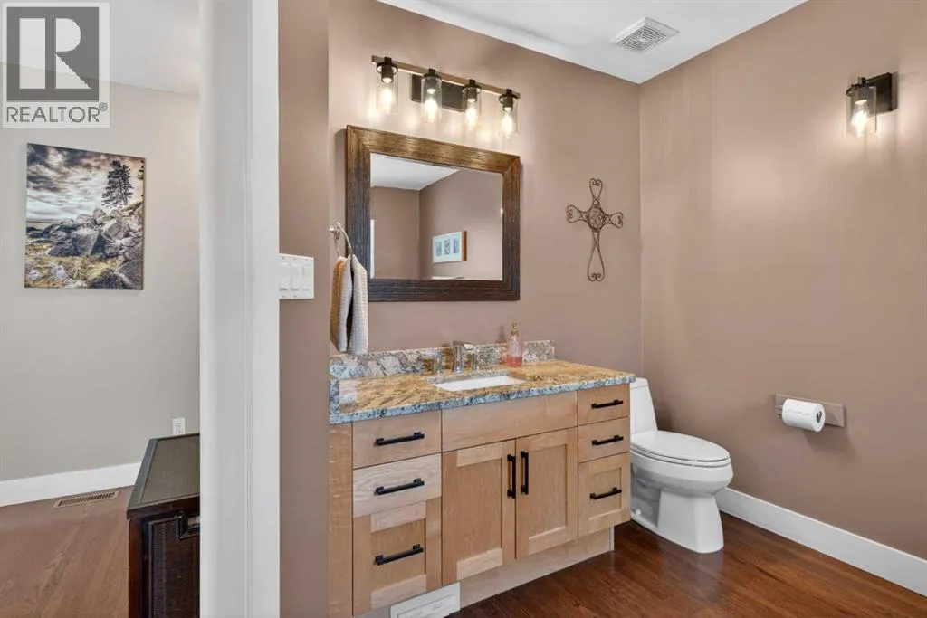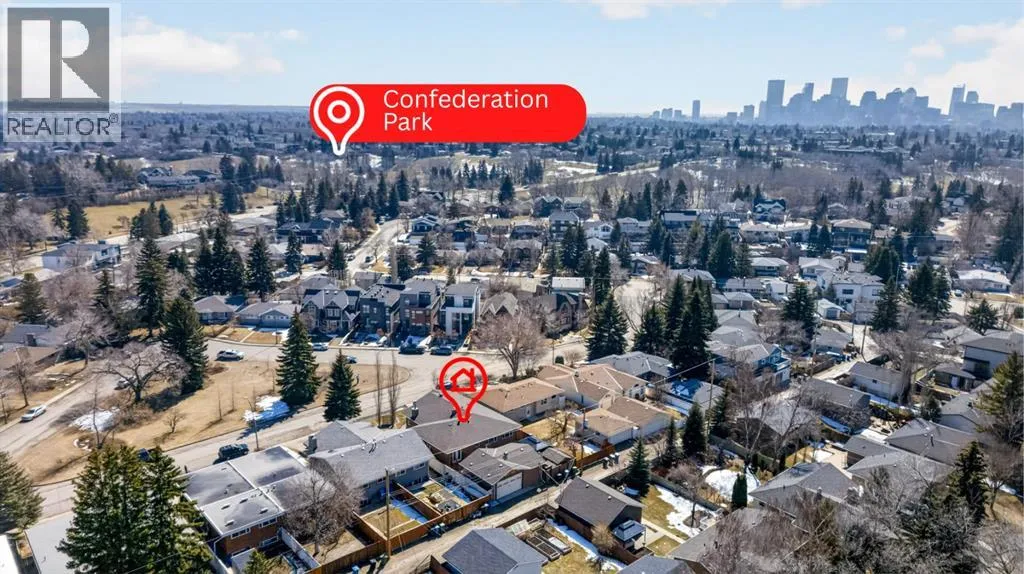 Beholdâ¦welcome to your new home! Located here in one of Northwest Calgaryâs most exclusive neighbourhoods is this incredible estate homeâ¦a stunning showpiece of fine living with a total of 4 bedrooms, oak hardwood floors & maple kitchen with stainless steel appliances, oversized heated 3 car garage & private low-maintenance West backyard for your outdoor pleasure. Offering over 3400sqft of living space, this custom-crafted bungalow will take your breath away the moment you step through the front door, with its expansive great room with wood-burning fireplace & vaulted ceilings with engineered trusses, open concept dining room with built-in hutch for your formal entertaining & airy dining nook for casual family meals & breakfasts. Next to the kitchen is a fantastic mudroom/office area complete with built-in desk, walk-in closet, built-in shoe storage & lockers. At the heart of your new home is the beautifully appointed kitchen with birdâs eye maple cabinetry & granite counters, large centre island with raised bar & built-in wine rack, walk-in pantry & upgraded Bosch appliances including built-in convection oven & dishwasher, plus Dacor gas cooktop & Zephyr chimney hoodfan. The hardwood floors continue into the 3 main floor bedrooms which are highlighted by the ownersâ retreat with walk-in closet, private access into the backyard & relaxing soaker tub ensuite with shower & granite counters. The amazing lower level is finished with a 4th bedroom & a 3rd full bathroom (with walk-in shower), office area with built-in cabinets & desk (which is included), bright games room with granite-topped wet bar, recreation/media room with entertainment centre (also included) & an exercise/lounge area. The detached 3 car garage is oversized & drywalled, with ducted heating, 9.5â ceilings, workshop area with built-in shelving & prepped for 220V/20amp/30amp. Additional features include the lower level laundry room with Bosch washer/dryer & loads of cabinets, 2 furnaces & 2 hot water tan ks, irrigation system, wrap-around covered verandah â accessible from both the front door & dining room, fir construction walls strapped with extra 2â spruce (resulting in 2âx6â for added insulation) & 40year roof shingles (installed in 2013). The low-maintenance & fenced West backyard is your private outdoor sanctuaryâ¦with its sprawling 1000sqft+ brick patio & 2 shedsâ¦one for storage & the other for your lawn equipment. Originally a side-by-side duplex, & converted in 2002 by Morrison Maurer into what you see todayâ¦completely stripped to the studs with all new plumbing, electrical & heating. A truly extraordinary home located across from a park, surrounded by a mixture of charming original & renovated mid-century homes as well as new builds, in this prime location in this mature established community close to neighbourhood schools & shopping, only a few short minutes to the Winter Club & Nose Hill Park, Confederation Park & quick easy commute to downtown. (id:27476)