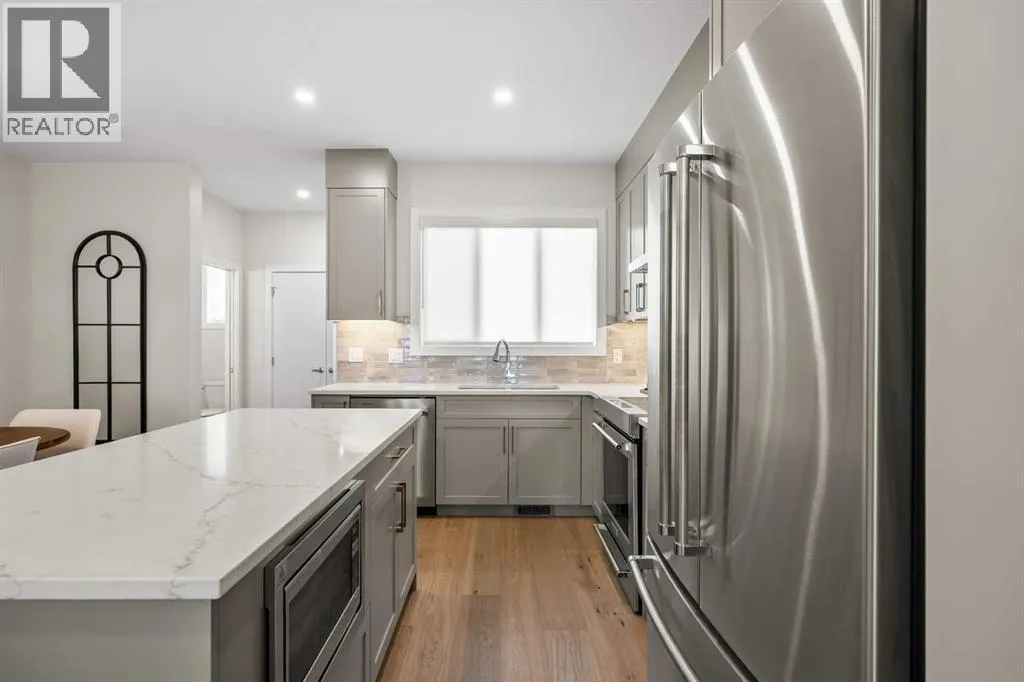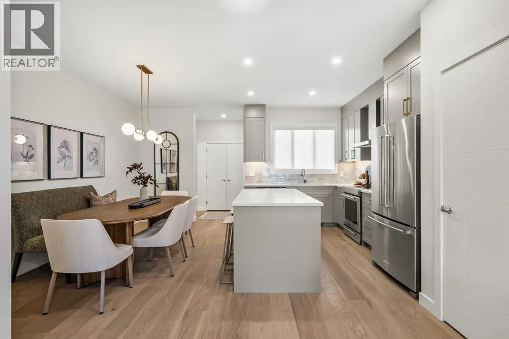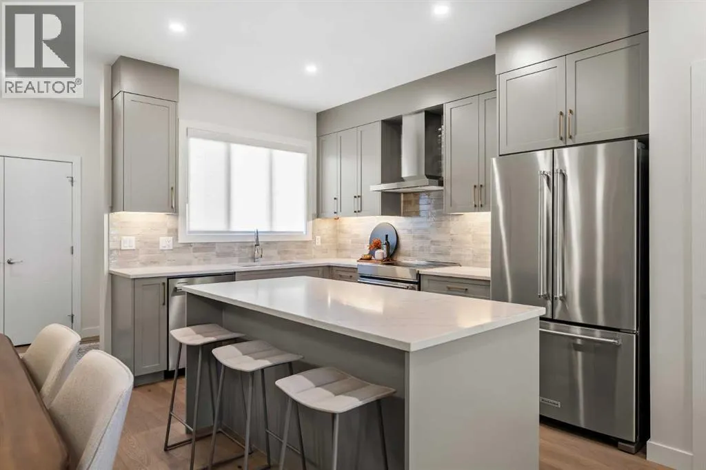 Welcome to the Sophie by Partners Homes in Keystone Creek, a brand new pre-construction duplex in NE Calgary offering a well designed open floor plan with 3 bedrooms, 2.5 bathrooms, and a side entrance. This home is thoughtfully designed to provide functional living, modern finishes, and everyday comfort in one of North Calgaryâs growing communities. The main floor features 9 foot ceilings, knockdown ceiling texture, and a bright open concept layout centered around a spacious kitchen. Finished with full height cabinetry, quartz countertops, a tiled backsplash, and a large central island, the kitchen also includes a stainless steel appliance package and a chimney hood fan with built-in microwave. A gas line to the range adds flexibility for future upgrades. The dining and living areas flow seamlessly together, creating a comfortable space for both everyday living and entertaining. Upstairs, the primary bedroom offers a walk-in closet and a private ensuite featuring a tiled walk-in shower. Two additional bedrooms and a full bathroom complete the upper level, along with convenient upper floor laundry including washer and dryer. The basement features 9 foot ceilings and a side entrance, providing additional flexibility for future use. At the rear of the home, a 20â x 21â gravel parking pad with alley access offers off street parking and future garage potential. Front landscaping is included, allowing for a finished exterior once complete. Finished in a craftsman elevation, this home offers timeless curb appeal in Keystone Creek, a growing NE Calgary community with access to pathways, green spaces, and convenient routes to Stoney Trail, Deerfoot Trail, CrossIron Mills, and Calgary International Airport. A well designed pre-construction home offering a practical layout, upgraded features, and strong value in North Calgary. (id:27476)