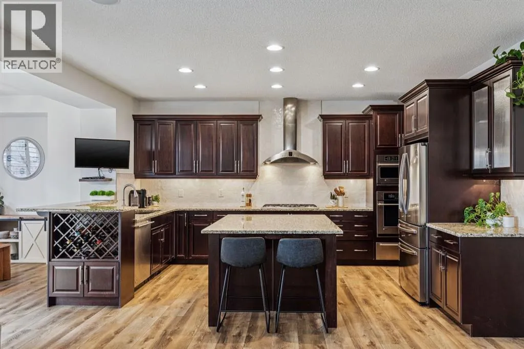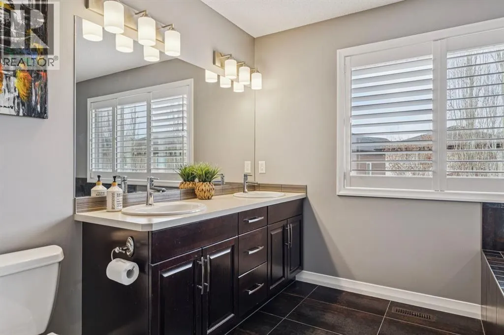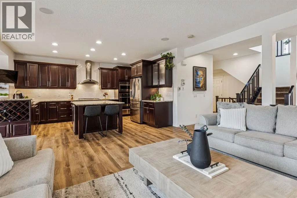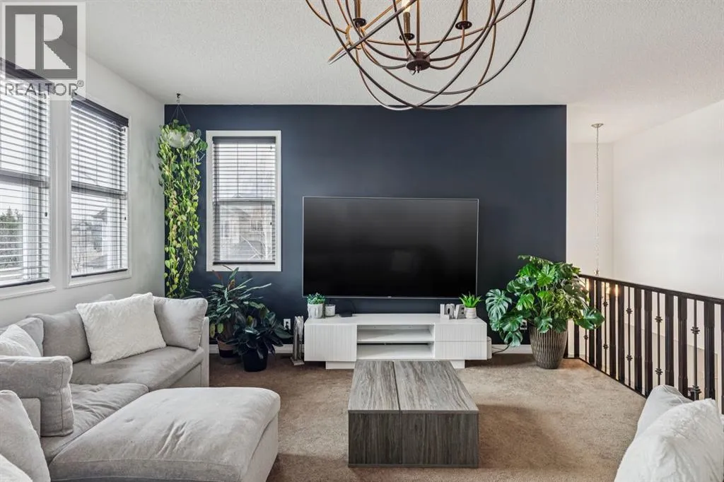 Situated on a quiet, kid-friendly cul-de-sac, this immaculate home offers over 3,200 square feet of beautifully developed living space. The "showhome-quality" main floor features an open-concept layout with newer LVP flooring and a gourmet chefâs kitchen boasting granite countertops, new backsplash, a gas range, and a central island. This space flows seamlessly into the dining area and a living room centered around a cozy gas fireplace- all enhanced by an integrated built-in speaker system, perfect for setting the mood while entertaining. The upper level is designed for relaxation, featuring a spacious bonus room ideal for movie nights. The primary suite serves as a true retreat with a spa-like five-piece ensuite and a large walk-in closet, complemented by two additional oversized bedrooms and a functional laundry room with custom shelving. For even more versatility, the fully finished basement provides a fourth bedroom, a full bathroom, a large recreation room, and a private den/ office. Outside, your professionally landscaped backyard oasis awaits, complete with a new expansive deck, a custom wood privacy screen, and a cozy fire pit. Located just minutes from Auburn Bay Lake, Westman Village, and the amenities of Seton, this home offers an unbeatable lifestyle in a premier lake community. Don't miss outâschedule your private viewing today. (id:27476)
