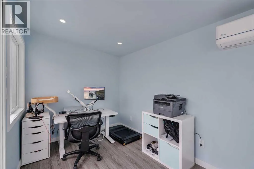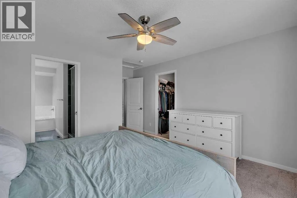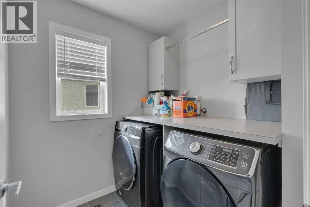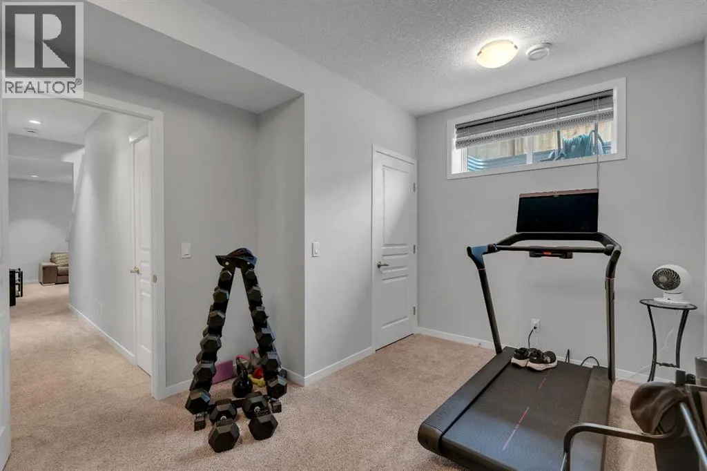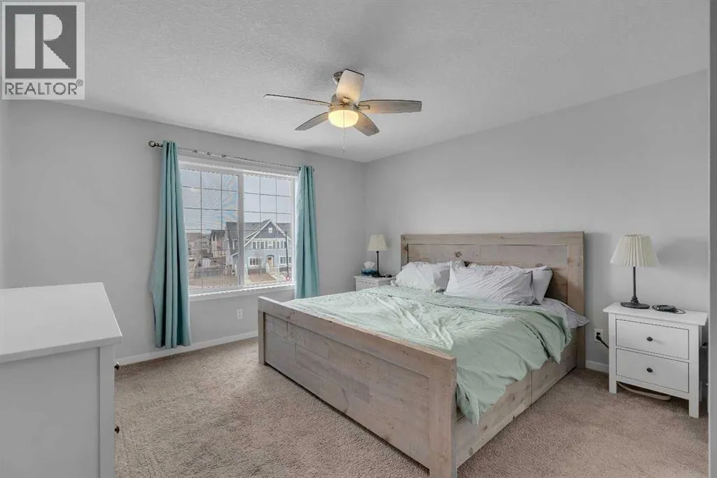 Welcome to Marquis Court! This air-conditioned, fully developed home offers over 2,200 sq. ft. of developed living space, plus a separate backyard office. The main floor features 9-ft ceilings, luxury vinyl plank flooring, and an upgraded kitchen with pot lighting, extended cabinetry, quartz countertops, white subway tile backsplash, stainless steel appliances including a gas range, a pantry, and a peninsula island with seating. The kitchen opens to a spacious dining area with an added window for extra natural light. The family room is bright and inviting, and an additional flex space provides room for a home office or whatever suits your needs. A functional mudroom with a storage bench and closet, along with a powder room, completes the main level. Upstairs, youâll find a spacious primary bedroom with a walk-in closet and a well-appointed ensuite featuring an oversized tiled shower, double sinks, quartz countertops, and a soaker tub. There are two additional bedroomsâone with a walk-in closet and one with a closet organizerâalong with the main bathroom and a convenient upper-floor laundry room with extra cabinetry and a hanging bar. The builder-developed basement includes a large rec room, bedroom, full bathroom, and plenty of additional storage. A standout feature is the separate backyard office, complete with electricity, heat, and air conditioningâan ideal work-from-home setup. The oversized backyard offers a large deck, double garage, and plenty of space to enjoy. Located just steps from the wetlands in the award-winning lake community of Mahogany, youâll enjoy year-round amenities including beaches, skating, paddleboarding, walking paths, and parks, along with nearby schools, shopping, restaurants, and all essential services just minutes away. This home offers tremendous value! (id:27476)