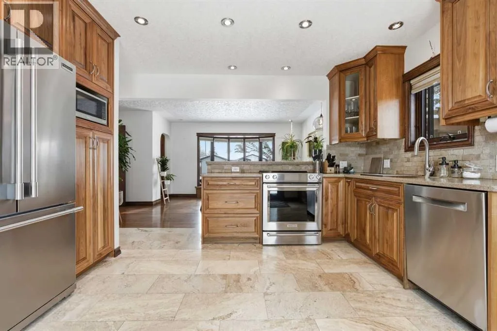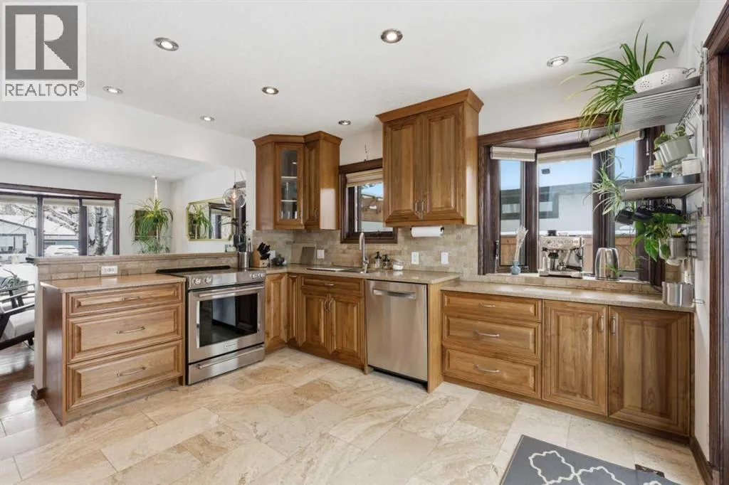 What makes this home stand out?A rare combination of designer upgrades, massive lot size, and a fully built-out lifestyle backyard, just minutes to downtown Calgary.Welcome to 1907 Kelwood Drive SW, a fully renovated inner-city bungalow in Glendale Calgary, sitting on an oversized 60 x 117 ft lot, offering the perfect blend of character, comfort, and high-end functionality. Originally part of the historic Glendale Meadows showhomes, this home retains its charm with arched doorways and textured ceilings, while delivering modern upgrades that todayâs buyers demand.The main floor is thoughtfully designed with two spacious bedrooms and a full bathroom, complemented by a bright and inviting living space filled with natural light. The kitchen is a standout feature, showcasing heated travertine stone tile flooring, custom walnut cabinetry, stainless steel appliances, and premium stone countertops with a breakfast bar. Every detail has been elevated, including dimmable lighting throughout, creating the perfect ambiance from morning coffee to evening entertaining.The fully developed basement expands your living space with a third bedroom featuring heated tile floors, a full bathroom, custom built-in storage, and a cozy entertainment area. The luxury laundry room, also with heated flooring, adds everyday convenience with a high-end feel.Step outside and youâll understand why this home is truly special. The west-facing backyard is a private oasis, designed for entertaining and relaxation. Enjoy multi-level composite decking, a custom pergola with ambient lighting, hot tub, gas torches, and professionally installed outdoor surround sound system with subwoofer. This space has hosted everything from quiet evenings to full-scale gatherings and backyard concerts.The oversized heated garage (22â10â x 29â11â) is more than just parking. With polyaspartic flooring, radiant heating, multiple access points including a rare pull-through door it functions as an extension of the h ome. Whether you envision a gym, workshop, or entertainment hub, this space delivers. A custom heated shed with electrical panel and garage door adds even more flexibility and storage.Additional upgrades include central air conditioning, Kinetico water system with softener, heated flooring in key areas, and extensive custom exterior work that enhances both beauty and durability.Located in Glendale SW Calgary, this home offers quick access to downtown Calgary, 17th Ave SW, Westbrook Mall, Shaganappi Golf Course, and major transit routes, making it ideal for professionals who want space without sacrificing convenience.This is not just a home. Itâs a lifestyle property designed for those who value privacy, entertaining, and elevated everyday living. (id:27476)
