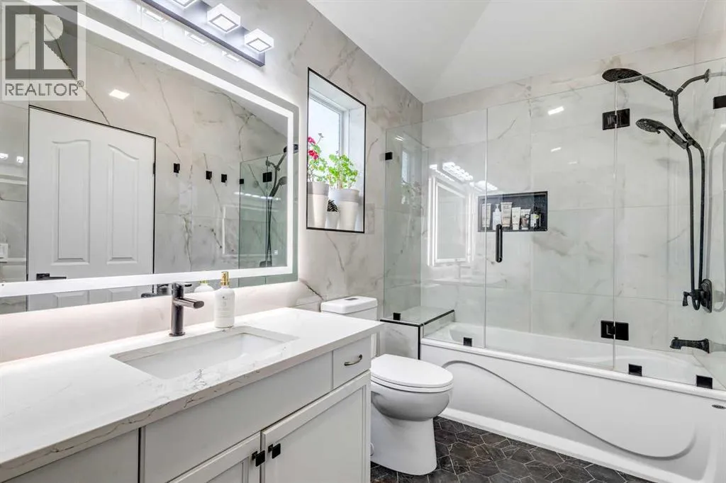 Welcome to this beautifully renovated walkout detached home offering stunning mountain and city views. Thoughtfully updated in 2026 with high-quality finishes throughout, this home blends modern elegance with comfortable family living.The bright and spacious main floor features a fully upgraded kitchen with premium materials and contemporary design, perfect for both everyday living and entertaining. Large windows fill the home with natural light while showcasing the scenic views.Upstairs you will find 3 spacious bedrooms plus a versatile bonus room, ideal for a family lounge, home office, or play area. The home offers 3.5 bathrooms, including two luxurious upstairs bathrooms with heated floors, providing added comfort during Calgaryâs colder months.The walkout basement, professionally developed in 2020 with permits, includes an additional bedroom and a large living area, making it perfect for guests, extended family, or future rental potential.Recent upgrades provide peace of mind, including:Full interior renovation (2026)New roof (2026)New fence (2026)New window blinds (2026)Hot water tank, water softener, and drinking water filtration system (2025)Ideally located in a family-friendly neighborhood, this home is within walking distance to an elementary school (210 m) and close to major amenities including Sobeys shopping plaza (1 km), high school (1.5 km), and LRT station (2 km).This move-in ready home offers modern upgrades, breathtaking views, and exceptional convenience, making it a rare opportunity in todayâs market. (id:27476)