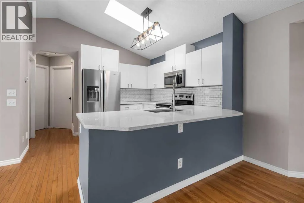 Welcome home! This bright and beautifully updated fully finished bi-level in the desirable community of McKenzie Lake, offering functional living space, tasteful updates, and a warm, inviting feel throughout. Perfect for first-time buyers, young families, or downsizers, this home features 2 bedrooms on the main level and a third bedroom in the fully developed basement, providing flexibility for guests, a home office, or growing family needs.The main floor is filled with natural light and features an open-concept layout with hardwood flooring throughout, vaulted ceilings, and a skylight in the kitchen that enhances the airy feel of the home. The kitchen has been thoughtfully refreshed with new cabinet fronts, quartz countertops, a new kitchen sink, and updated appliances, creating a stylish and functional space for everyday living.The fully developed lower level offers excellent additional living space with a large family room, a cozy gas fireplace perfect for cooler evenings, a full bathroom, and a spacious third bedroom. Recent updates here include new carpet with underlay throughout the basement and an updated basement bathroom, while the upper bathroom has also been improved with a new vanity.Outside, enjoy the benefits of a professionally landscaped backyard, ideal for relaxing or entertaining, along with a new professionally installed fence on the left side for added privacy and peace of mind.Located in the heart of McKenzie Lake, this home enjoys access to one of southeast Calgaryâs most established and family-friendly communities. Residents love the area for its nearby schools, parks, playgrounds, walking paths, shopping, and everyday amenities, along with convenient access to major routes for an easy commute. With its welcoming community feel and excellent nearby conveniences, McKenzie Lake remains a sought-after place to call home. (id:27476)