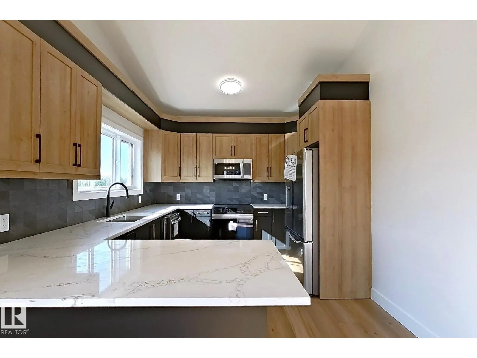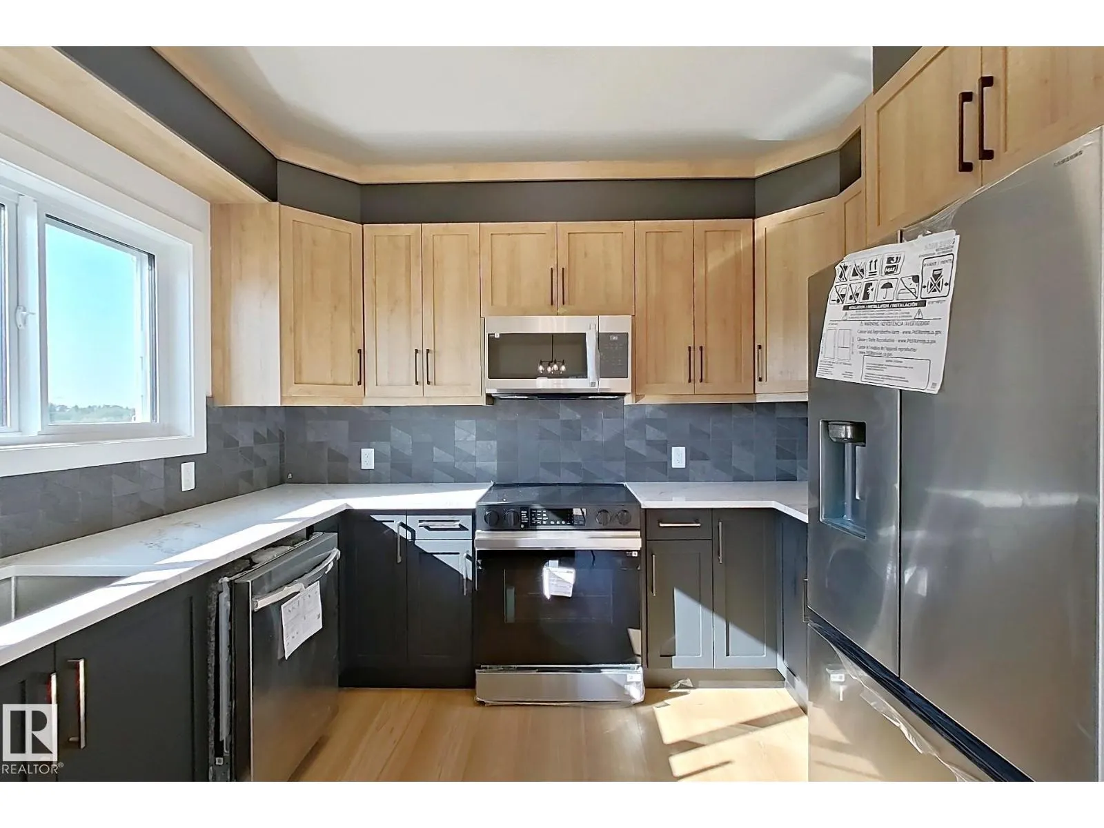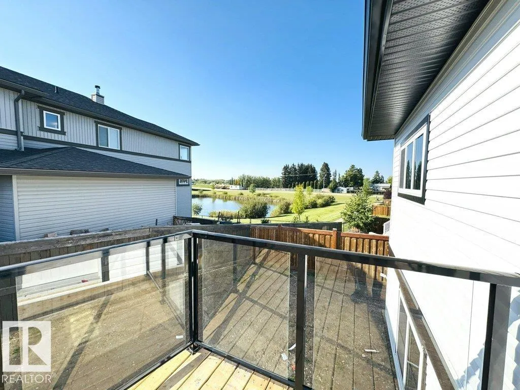 NEW on a CORNER LOT! This bright, family-ready bi-level in the desirable Town of Calmar features a vaulted-ceiling living room filled with natural light and an open kitchen with breakfast Peninsula, ample cabinetry and a dining area overlooking the deck and pond fountains. The spacious backyard offers parking for an RV or fifth-wheel camper, complemented by a 3-car attached garage. Two bedrooms and a full bath are on the main floor, while the upper-level primary suite is a private retreat with 4-piece ensuite. The unspoiled basement with large windows is ready for future development. Just 10 minutes from EIA, this versatile home blends comfort, functionality, and a prime location in a well-established neighbourhood. (id:27476)