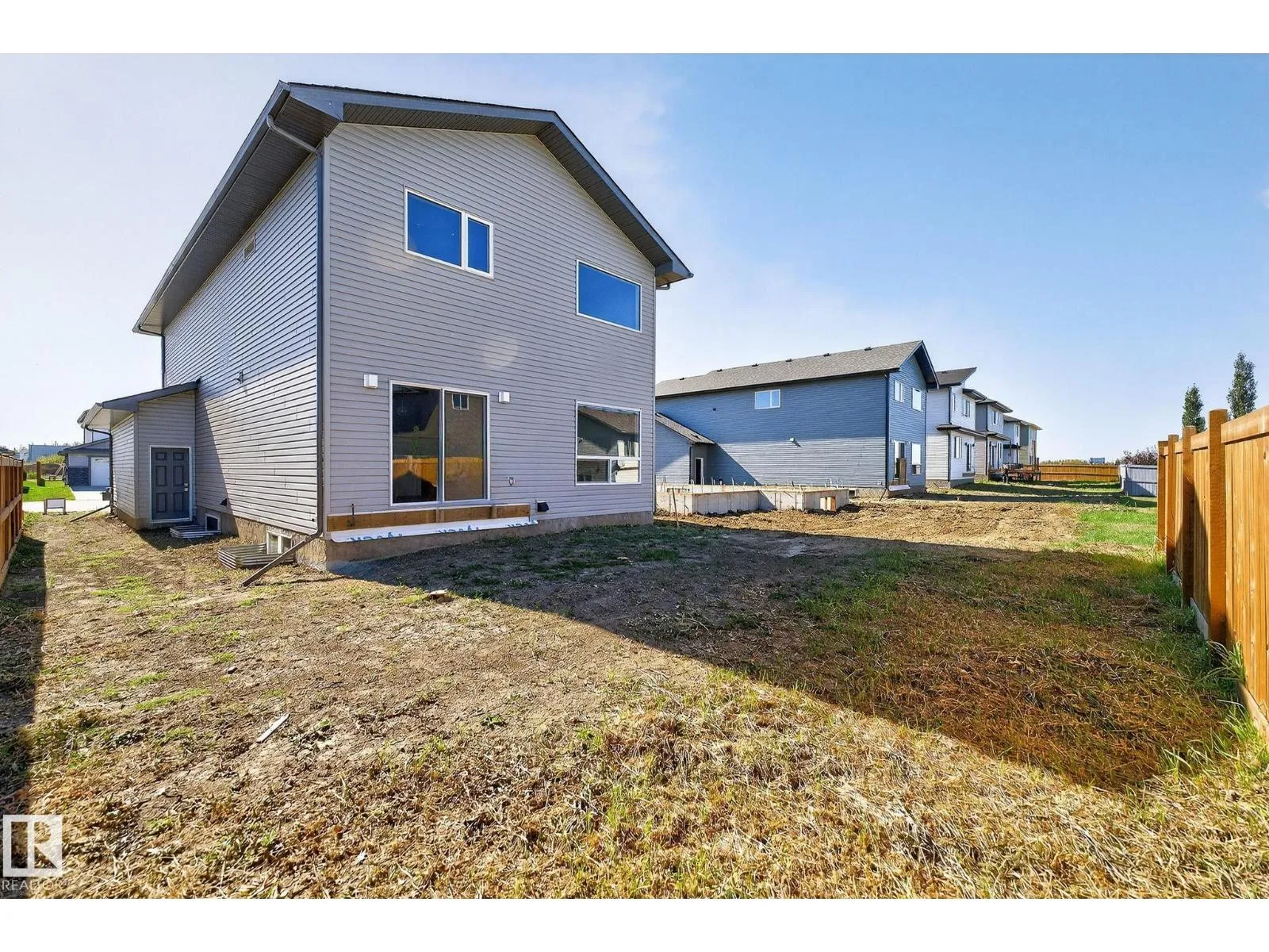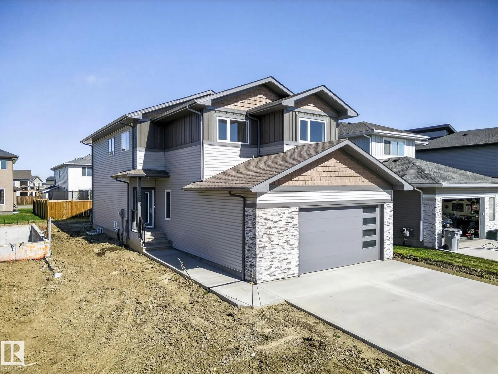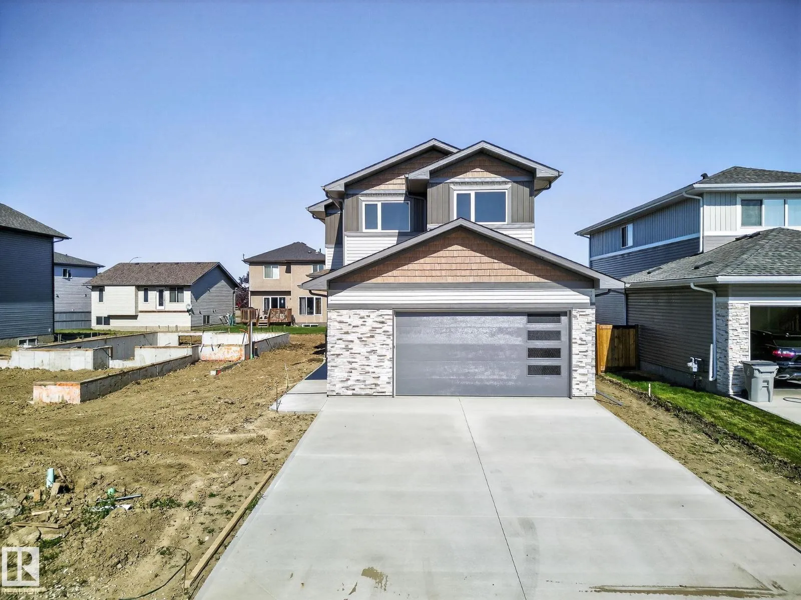 Discover over 1900 sq ft of luxurious living space nestled in the highly desirable community of Southbridge in Calmar! This stunning two-storey home features upgraded finishes, 3 spacious bedrooms, soaring OPEN-TO-BELOW living room ceilings, 9' kitchen ceilings, sleek QUARTZ countertops, AMPLE CABINETRY, STAINLESS STEEL APPLIANCES, a WALK-THROUGH PANTRY AND BUILT IN SHELVING THROUGHOUT. This OPEN-CONCEPT layout and cozy fireplace perfectly blend relaxation and entertainment. A versatile flex room can even be transformed into a 4th bedroom if desired. The primary bedroom offers a luxurious 4-PIECE ENSUITE with a private enclosed toilet area & modern shower which flows seamlessly into a WALK-IN CLOSET to get ready with ease. A 2nd FULL upstairs bathroom and laundry room adds convenience. The EXTENDED DOUBLE GARAGE is practically designed roughed-in for a future garage heater and includes a hose bib. Conveniently located near the airport, Leduc, Devon & is in walking distance to expansive park-like settings! (id:27476)