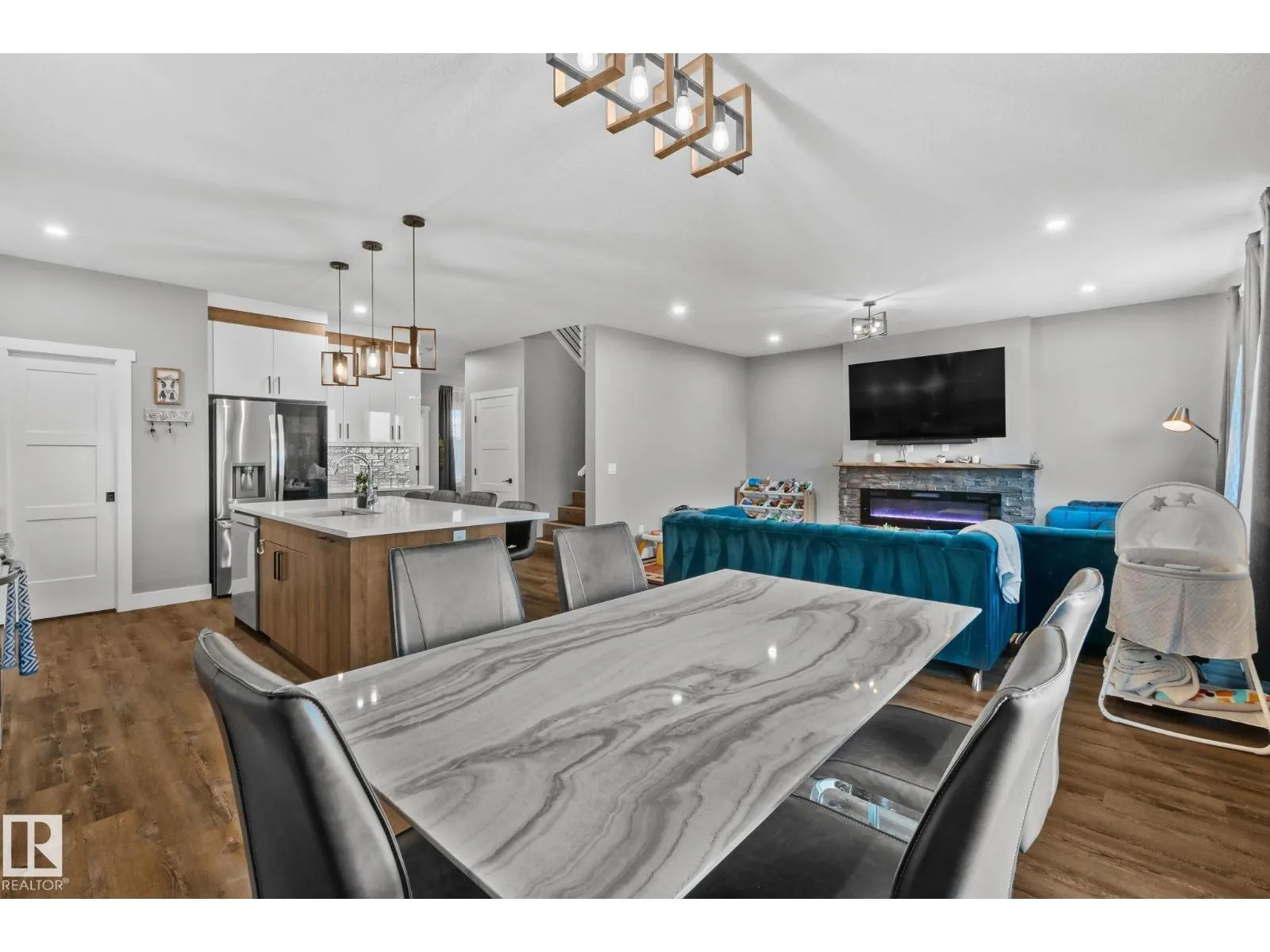 Escape to the serene beauty of the countryside and indulge in the epitome of luxury living with this exceptional custom home, perfectly situated on a sprawling corner lot. Boasting a triple car garage, 4+1 beds & 3 full baths, this architectural masterpiece offers an abundance of space and convenience. As you enter, be captivated by the breathtaking panoramic views of lush fields stretching as far as the eye can see, allowing you to unwind and find solace in nature's embrace. Every corner of this meticulously crafted residence exudes opulence, featuring lavish upgrades that cater to the most discerning tastes. From the exquisite finishes to the state-of-the-art appliances, no expense has been spared. Immerse yourself in the gourmet kitchen, where culinary dreams come to life, or luxuriate in the sumptuous master suite, where tranquility and comfort converge. With every detail meticulously thought out, this countryside retreat is an oasis of sophistication. Fully fenced and landscaped. (id:27476)