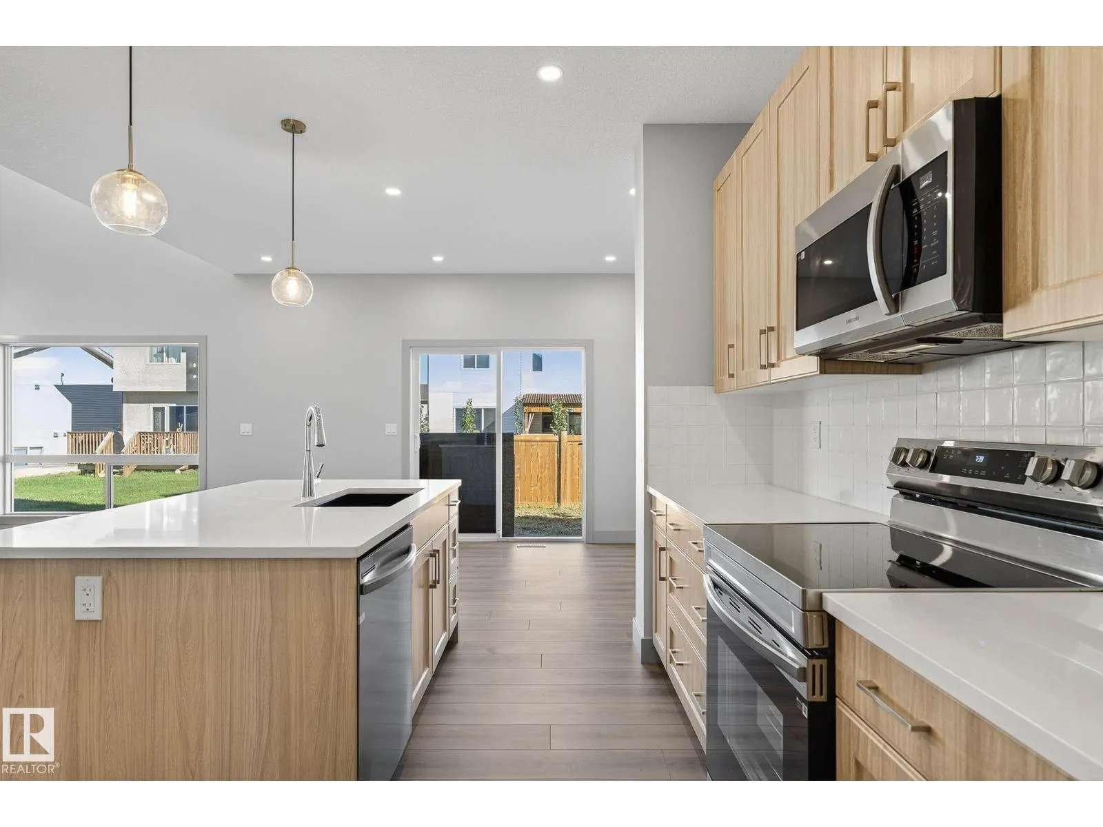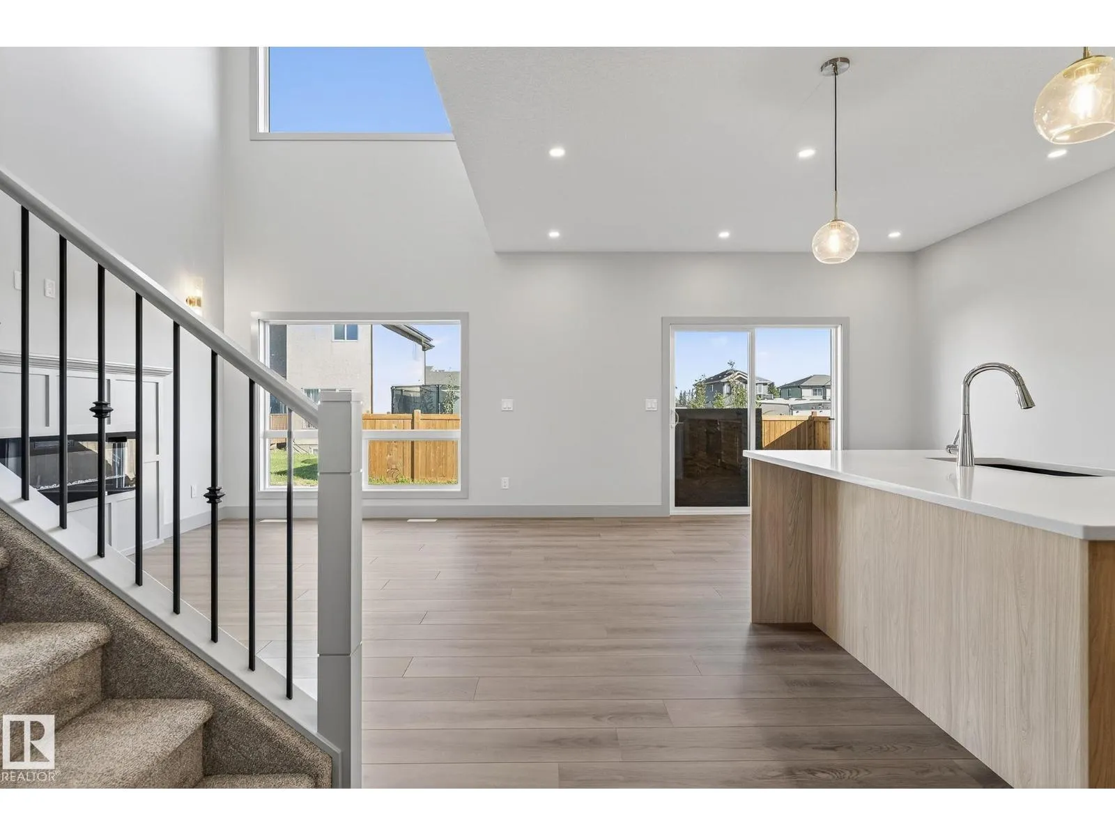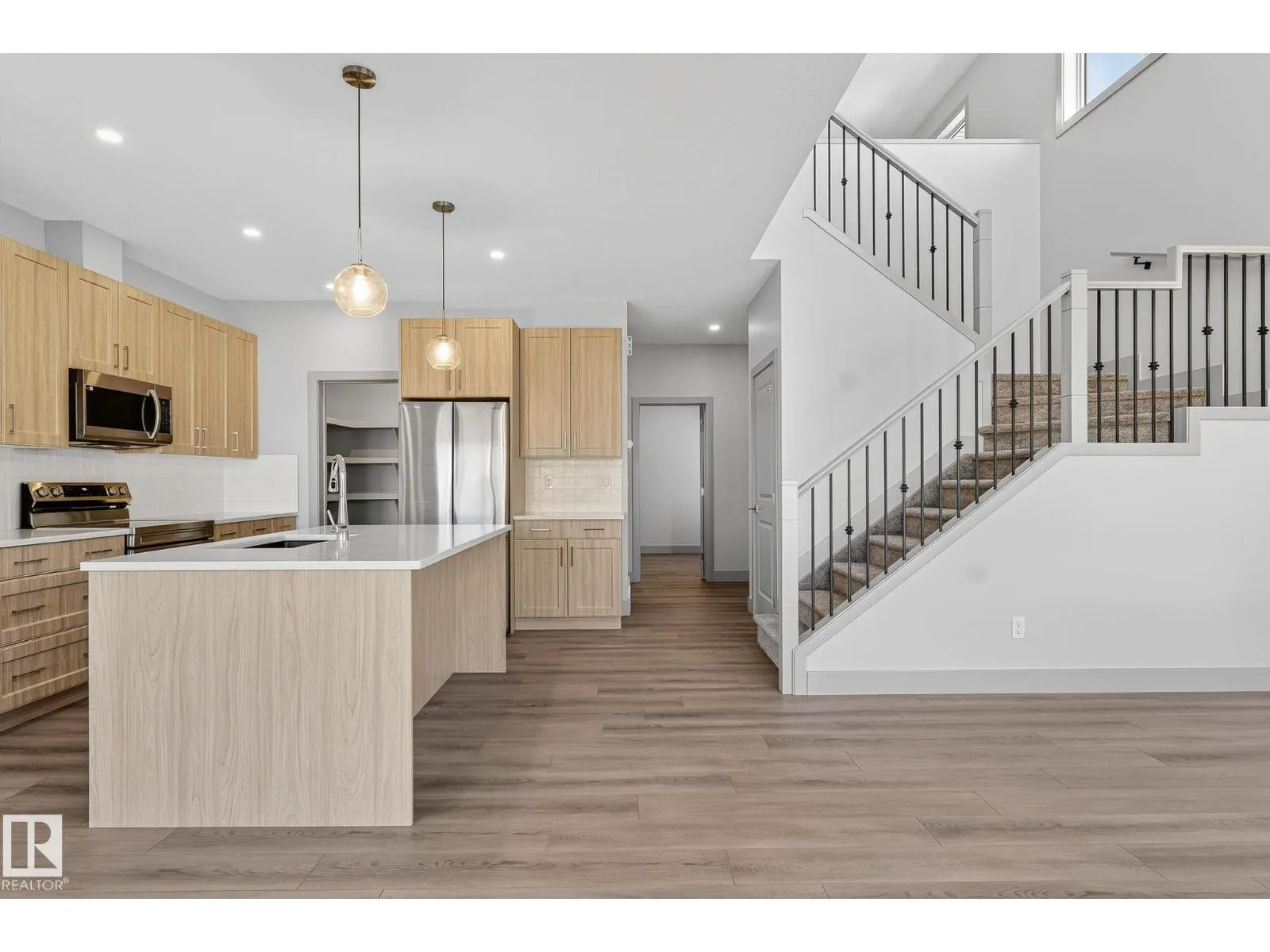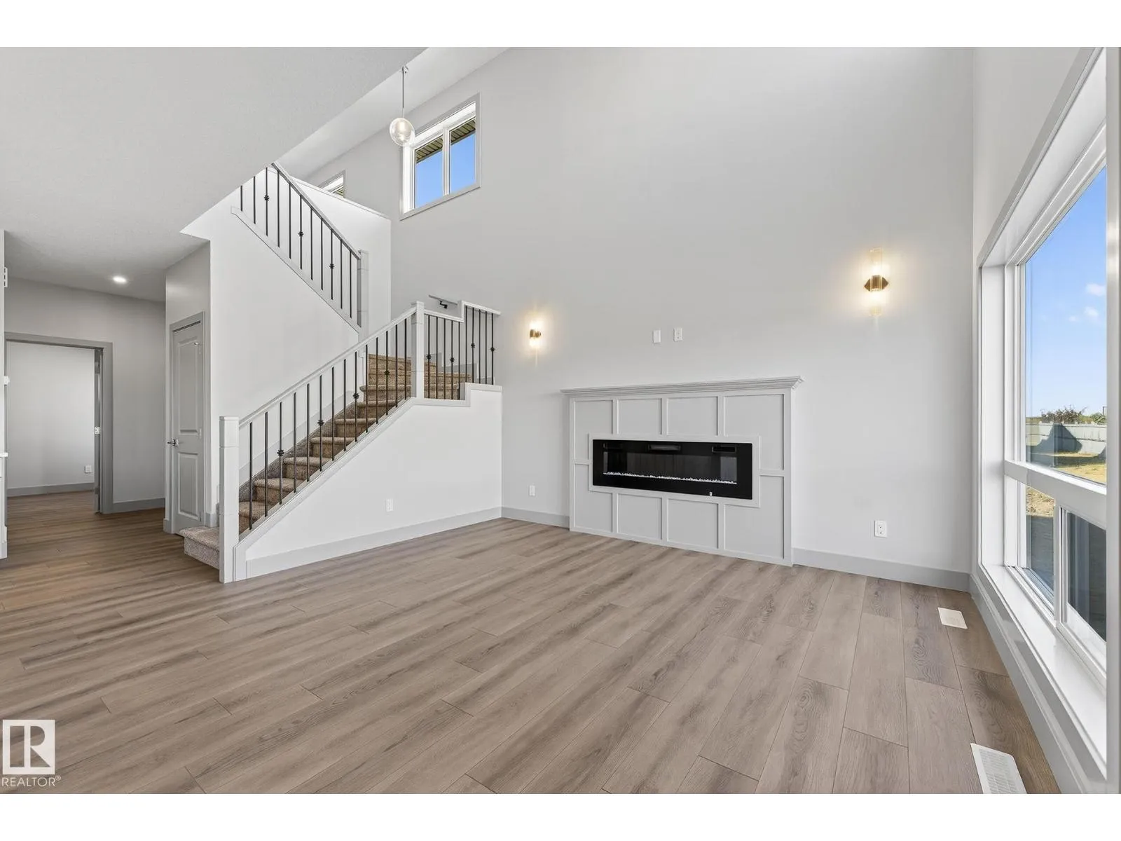 Discover luxurious living in the highly desirable community of Southbridge in Calmar! Crafted by a reputable builder with 30 + years of experience, this stunning home features upgraded finishes, 3 spacious bedrooms, open-to-below living room ceilings, 9' kitchen ceilings, quartz countertops, ample cabinetry, stainless steel appliances, a walk-through pantry & built-in shelving throughout. This open-concept layout & cozy fireplace perfectly blend relaxation & entertainment. A versatile flex room can even be transformed into a 4th bedroom if desired. Primary bedroom features a spacious 4-piece ensuite that flows into a walk-in closet for added convenience. 2nd full bathroom & upstairs laundry room provide even more functionality. Garage enthusiasts will LOVE the extended double garage complete with heater rough-in & hose bib. High efficient furnace, hot water tank & HRV. Located near the airport, Leduc, Devon & in walking distance to parks! Check out the uploaded video! (id:27476)