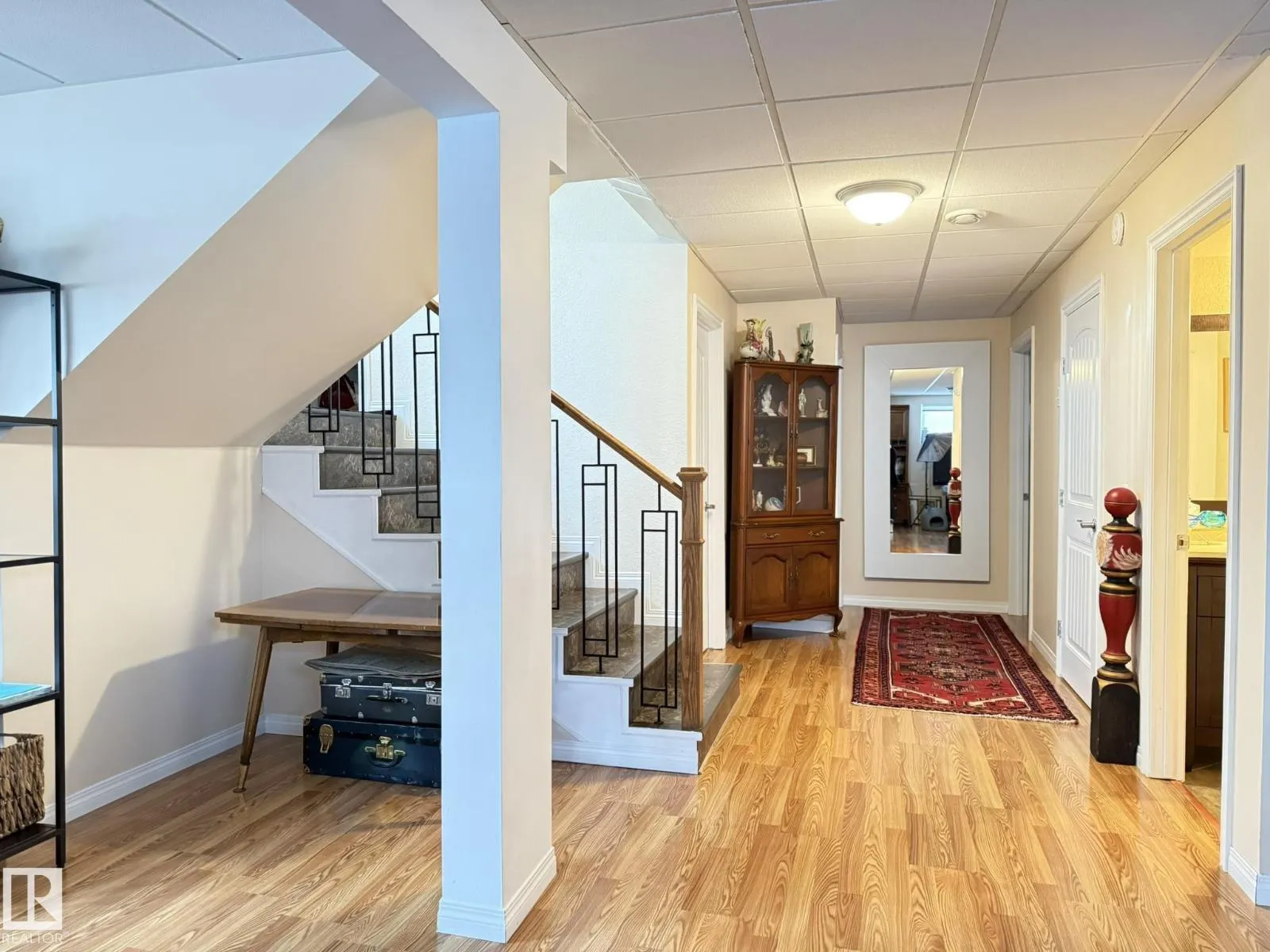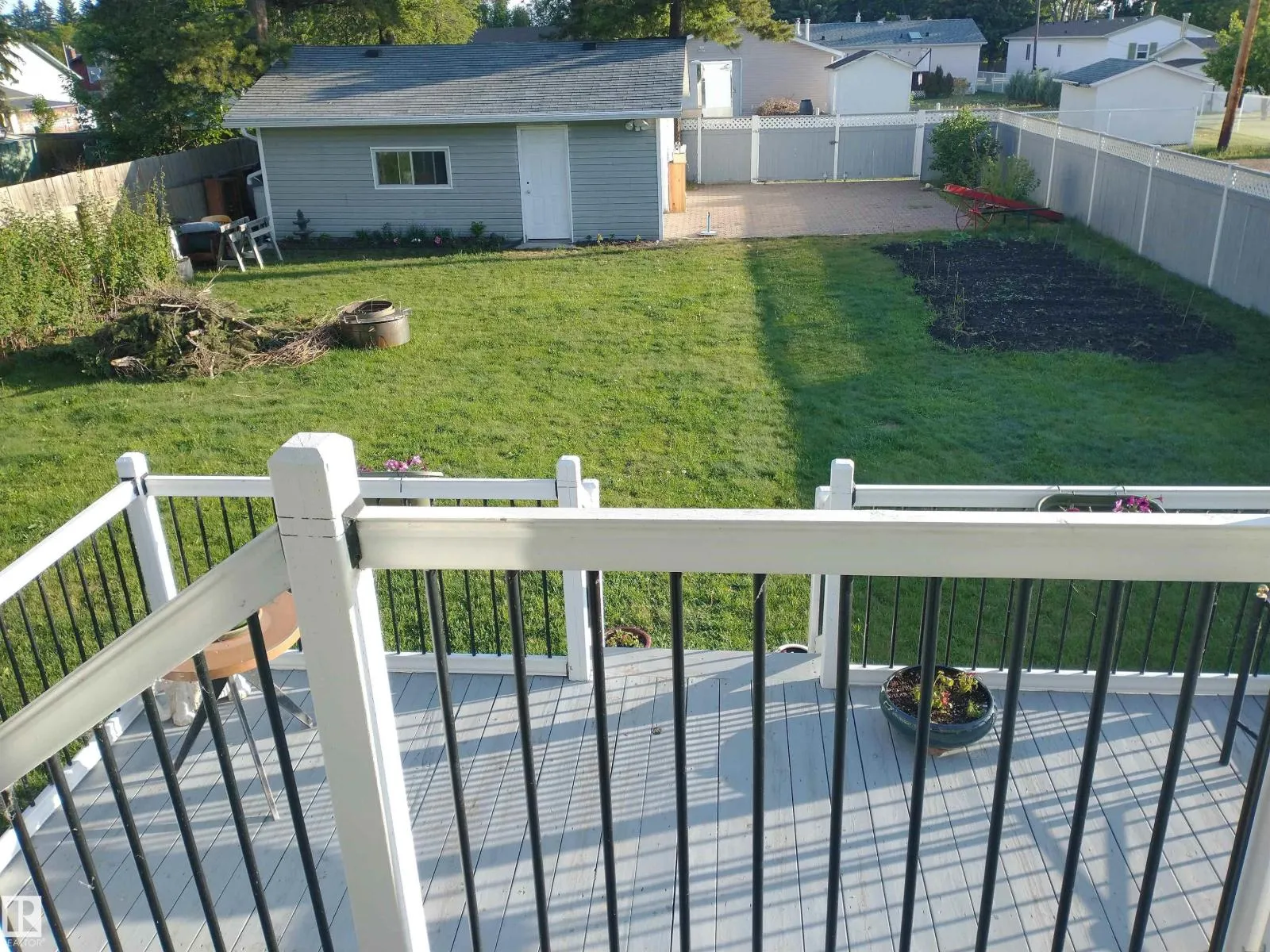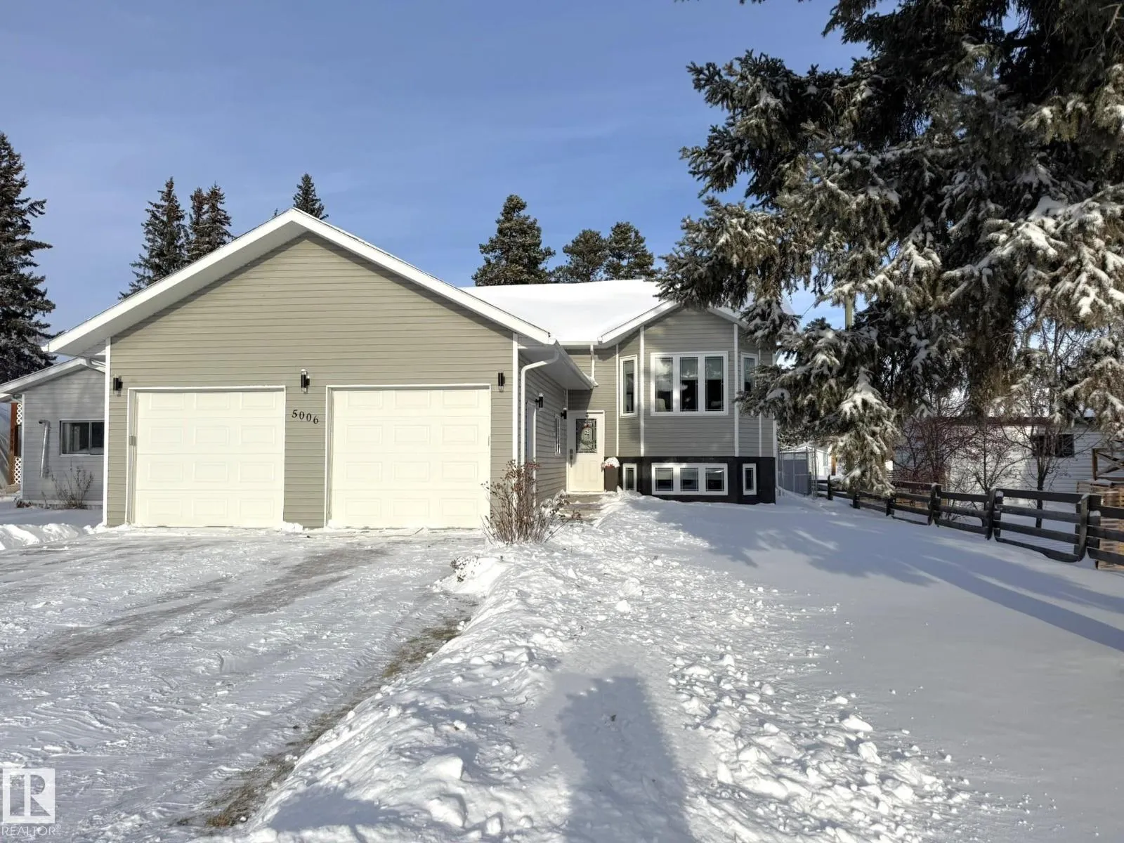 Well built and beautifully maintained gem in Calmar with 2 garages on a huge 55x165 foot fenced lot with lane access and RV parking! Enter this bilevel through the front entrance or garage into the spacous entry with a large walk in closet. On the upper level you will be greeted with a large kitchen, Canadian made cabinets with large pot drawers, pull outs and corner pantry, open to the dining area with access to the deck. The bright living room boasts a big South facing bay window. 2 good sized bedrooms, one with a walk in closet, 4 piece bathroom and a main floor laundry room complete this level. Downstairs you will find a huge rec room with a bright bay window, 2 more bedrooms, another bathroom and plenty of storage. The attached 23x24' garage is insulated, the 22x24' detached workshop is insulated and has power. Other upgrades that come with this home include new 5' gutters with leaf guard, new lighting, new Hunter Douglas blinds, cobblestone driveway and pad and it was built with ICF foundation. (id:27476)