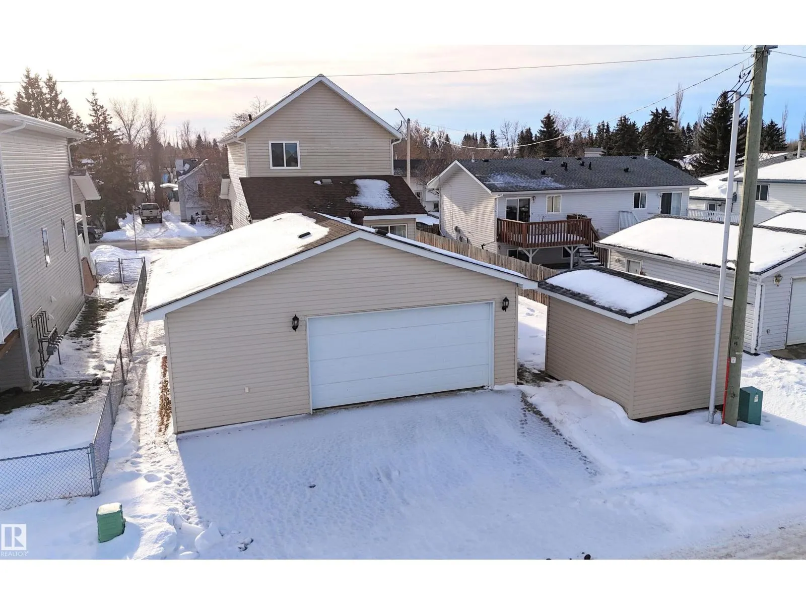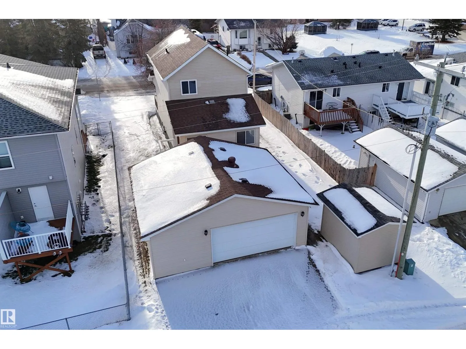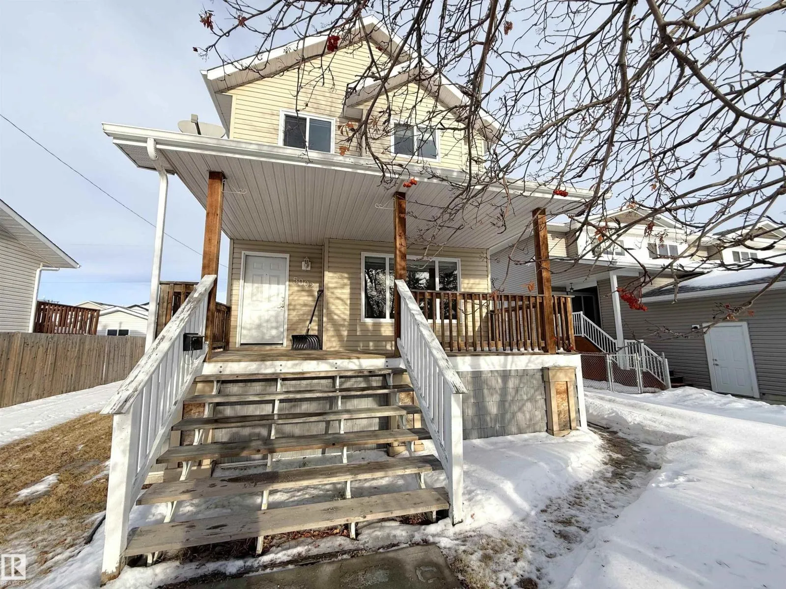 2-storey with heated detached double garage (28Wx24L, insulated, 220V & air lines) near schools, parks & amenities in the heart of Calmar. This well-maintained 1,270 sq ft (plus full basement) home features new hot water tank & furnace insides, main floor laundry room & a great functional layout. On the main level: bright living room w/ large south facing windows, 2-pc powder room with washer & dryer, u-shaped kitchen w/ pantry, dishwasher & dining area with deck access. Upstairs: 2 full bathrooms and 3 generous-sized bedrooms including the ownerâs suite w/ 4-piece ensuite. The partially finished basement is drywalled for a large family room, awaiting finishing touches. Outside: covered south-facing front porch, a very private back deck w/ insulated walls & ceiling, 10x12 storage shed on skids and space for RV parking beside the house or by garage. Located in the family-friendly town of Calmar; 15 mins to the airport, 10 mins to Leduc & 20 mins to Edmonton. Small town charm with fantastic accessibility! (id:27476)