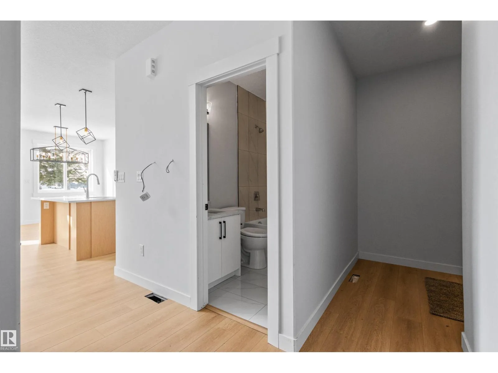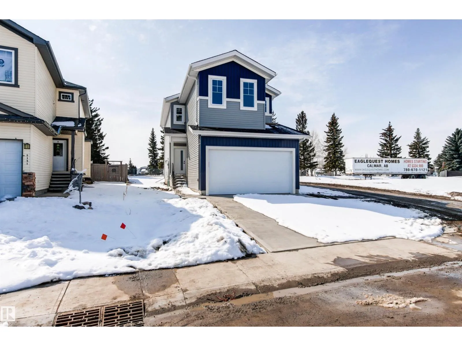Eagle Quest Homes welcomes this beautiful brand new 1820+ Sq feet move in ready home. Open to above floor plan with 3 bedrooms, bonus room, main floor den / office and 3 full bathrooms. Available for quick possession. Back lane access allows for extra parking for your RV and toys. Separate side entrance to the future basement for that guest or family member requiring privacy or a future income generating suite. Laundry room on top floor near bedrooms.This 2 storey home has it all and is move in ready. New home warranty included . Country style living with city Amenities. The newest development in Calmar backing onto Calmar Elementary school. Quick access to the expanding Edmonton Airport, minutes to Leduc, Nisku and Edmonton. Welcome to Hawks Landing. Donât miss this one ! (id:27476)