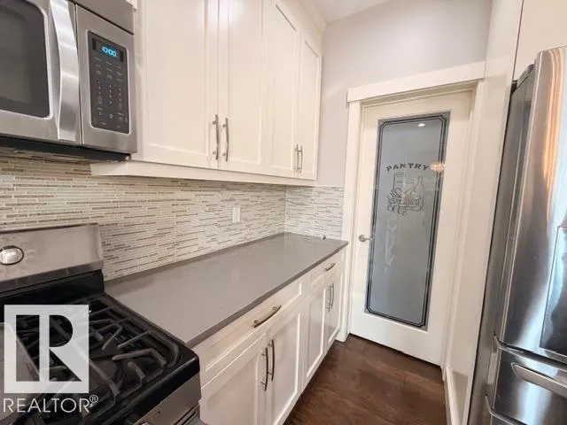 Welcome to this fully finished 5 bedroom, 3.5 bath move in ready home located within walking distance to Calmar school. The main floor has 9 ft ceilings, hardwood flooring, a half bath and a fantastic chefs kitchen, living room with a fireplace and a spacious dining room with access to the huge deck and south facing backyard. Perfect for a large family, upstairs you will find a total of 4 bedrooms including the primary bedroom with a 5 piece ensuite and walk-in closet, laundry and a bonus room with dual skylights. There is a separate side entrance for that guest or family member requiring private access to the fully finished basement which has a bedroom, second kitchen, full bath and second laundry. The double attached garage, fully fenced (with an added dog run as well) and landscaped yard even has back lane access. This property has brand new carpets and paint, is turn key and available for quick possession at an incredible price. (id:27476)
