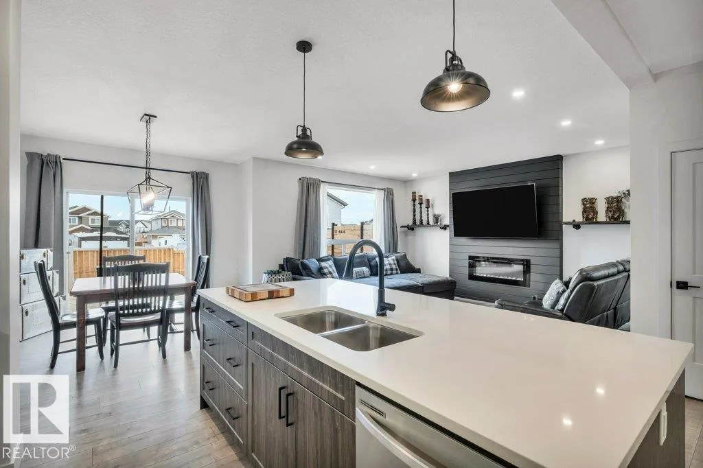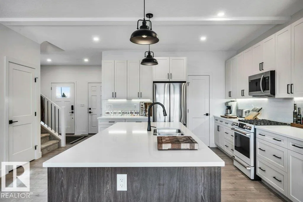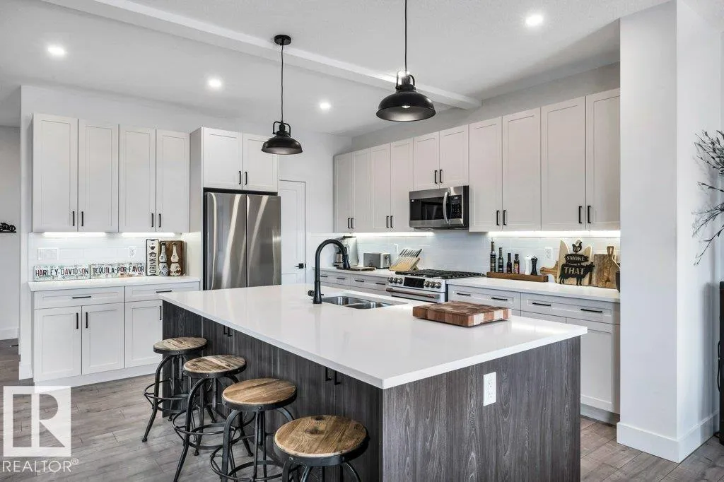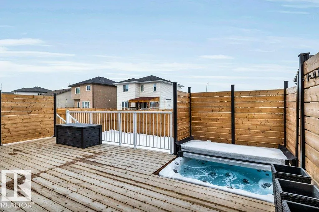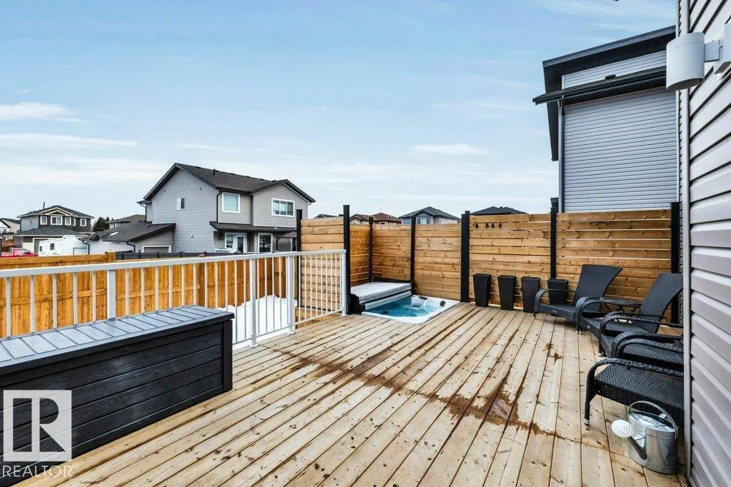 Wowza!!! A 10 out of 10 for this trendy 2-story home in Calmarâs most sought-after area of Southbridge Crossing. It is literally move in ready & feels like a brand-new home with the advantage of having all your landscaping, fence, hot tub, deck, window coverings & garage heater already installed. This stylish 4 BEDROOM home is nearly 1900sqft of living space & comes with exceptional finishings. The kitchen layout boasts elegant quartz counters, stainless appliances, large island & walk thru pantry. Entertain guests in your living room with its feature gas fireplace. Rare 4-bedroom upper level including a primary suite with a gorgeous 4pc. ensuite & walk in closet. Laundry just came enjoyable again with its beautiful upper floor room. EXTENDED DOUBLE GARAGE with heater , window & 16x8 GARAGE DOOR for full size truck. Love the peace and quiet and home prices of a small town while just a short drive to Leduc (id:27476)