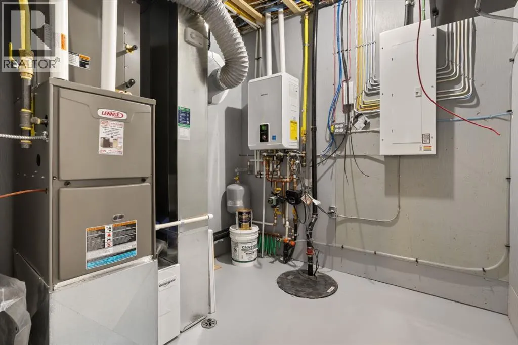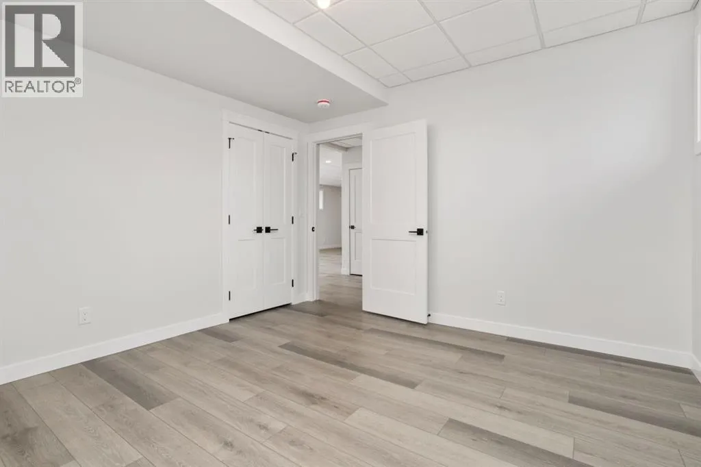 Brand New Build from Battle River Homes. Fully Finished Up and Down! Only 2 steps from the Garage to the main level! Great Bungalow layout with Oversized Rear Garage 25x24/29 with epoxy floors, a floor drain, hot/cold taps, gas rough-in, space for working area and finished to perfection. ICF Foundation, Basement In-floor Heat, Triple Pane Windows, AC, Built-in Central Vac with retractable hose. Excellent Curb Appeal with an Inviting Front Covered Veranda. Step inside and take in this new floorplan from Battle River Homes - open concept arrangement sees a front facing living room with cozy electric fireplace with wood accents and mantle, central kitchen and rear dining area that overlooks a private 10x12 no maintenance deck and yard space. 9ft ceilings on the main with 10ft coffered in the living room. Gorgeous kitchen with White Maple Cabinetry, Quartz counters with waterfall edge anchored by a richly stained 8'7 central island with eating bar. Very accommodating eating area with room for the whole family and your favorite dining set - there's also a handy pantry. Excellent Primary Bedroom suite with private 4pc ensuite, double sink with quartz counters, a fully tiled shower with bench seat and a 6x9'2 Walk-in Closet! The main floor also sees a 2nd bedroom at the front - excellent for guests or as a hobby room, an additional 4pc bath and laundry in the mudroom. Basement comes fully completed in vinyl plank and sees a huge 38ft long family room, 2 additional bedrooms and a 4pc bath. A wonderful Bungalow floorplan with minimal exterior upkeep. You'll Love It!. (id:27476)