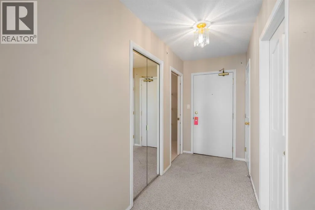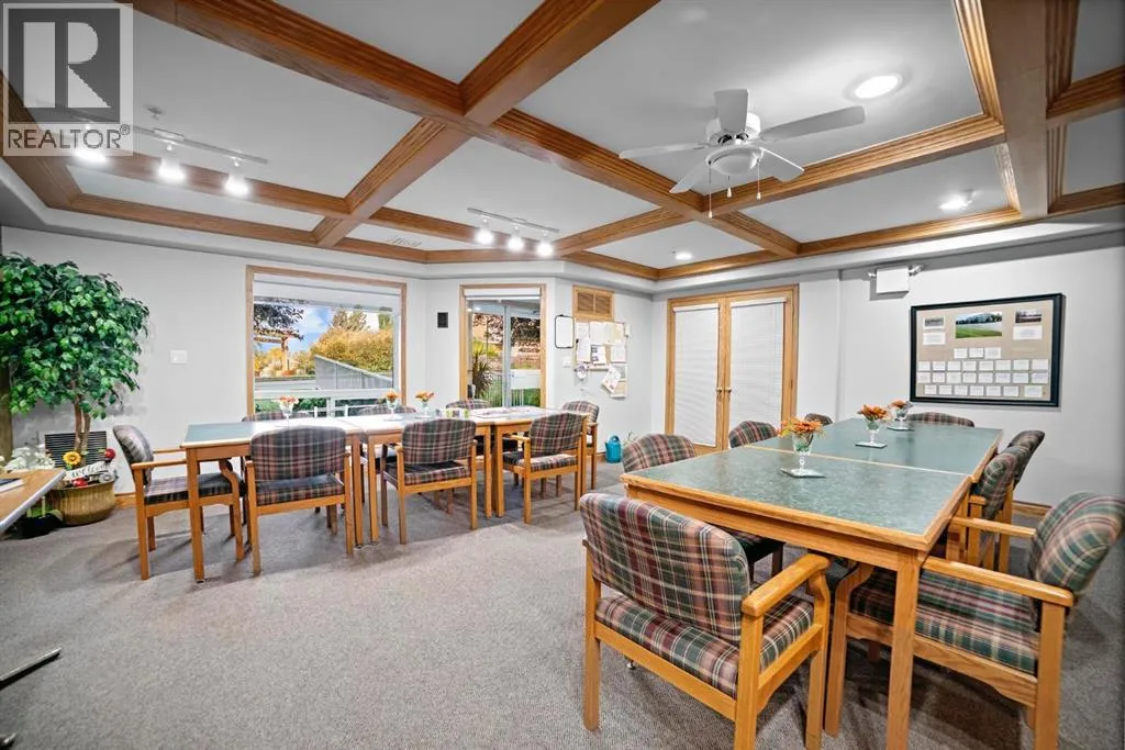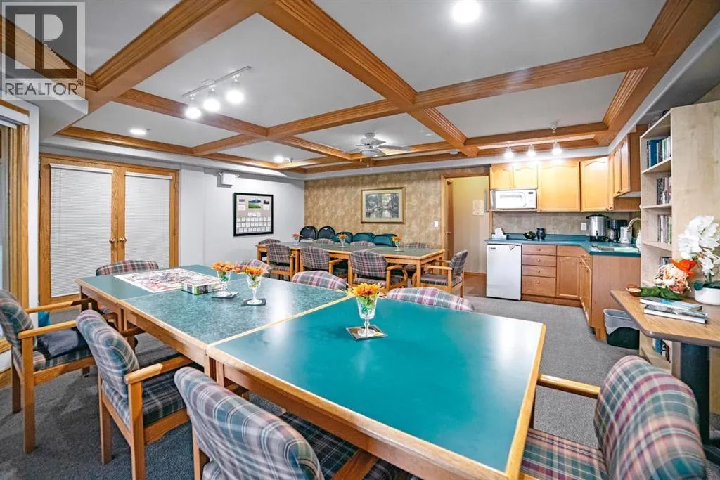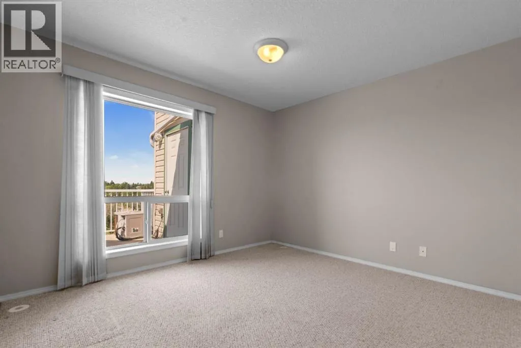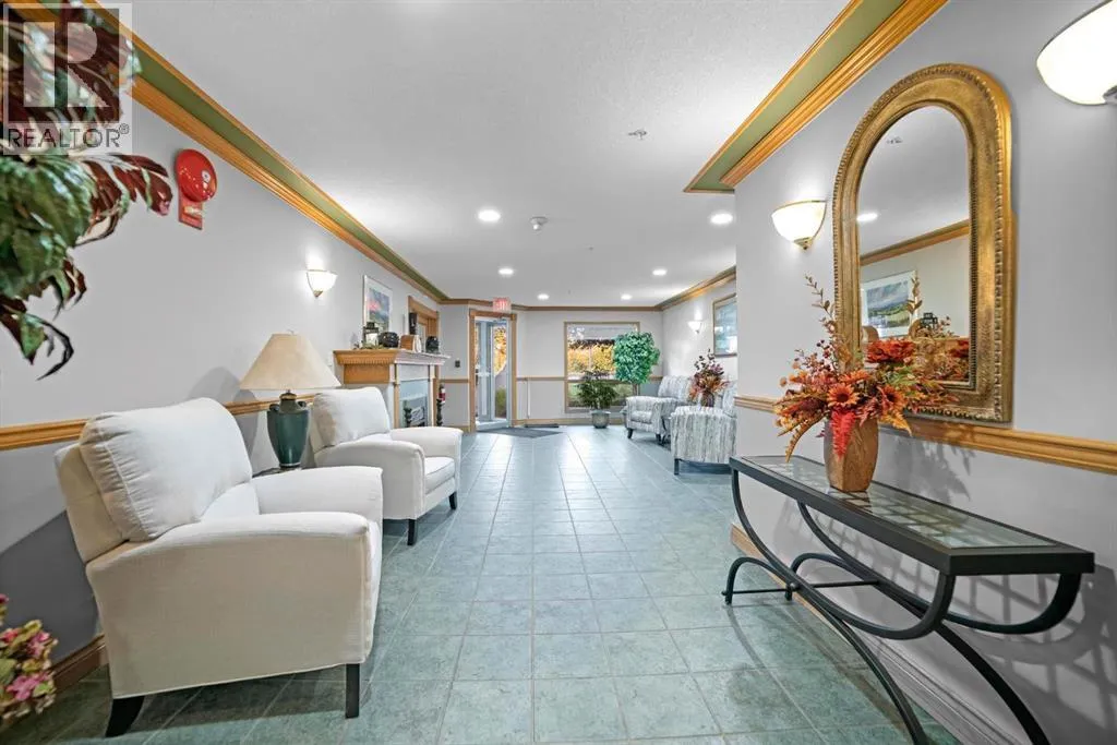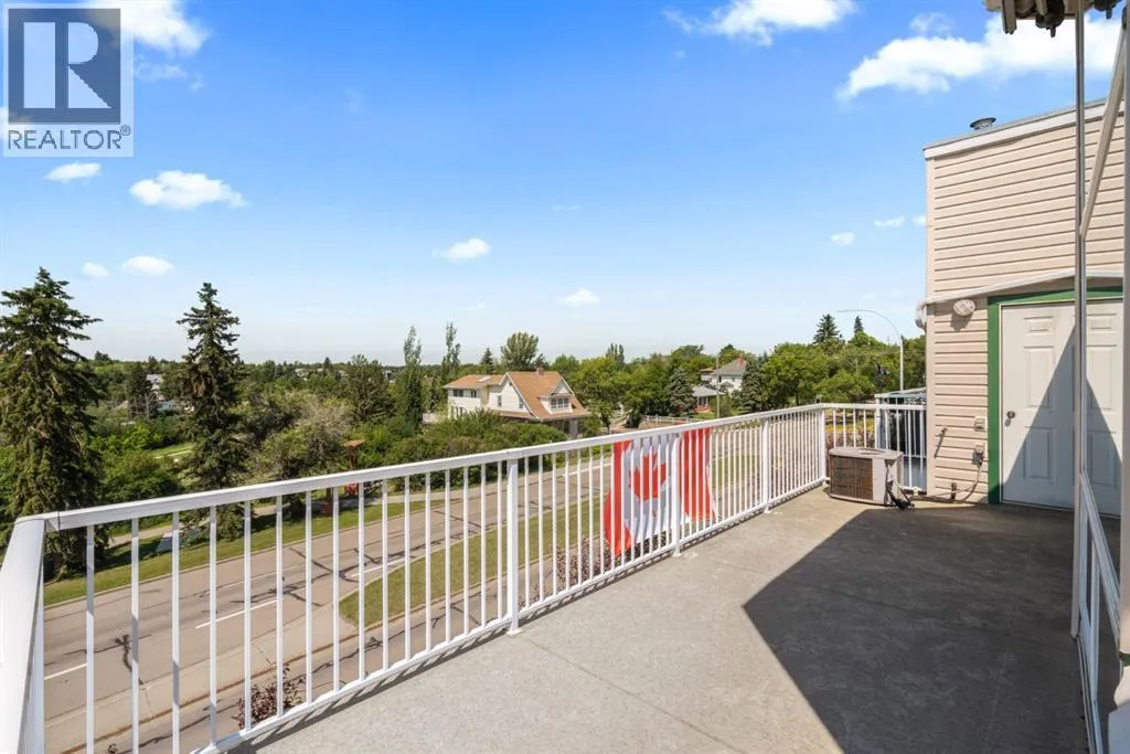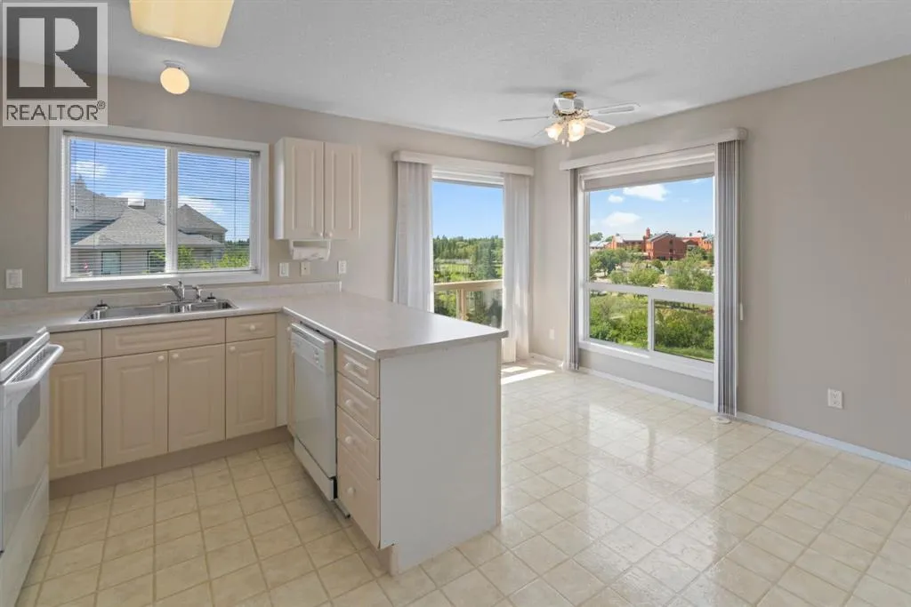 Welcome to this stunning top floor penthouse condo unit in Park Place North! Perfectly situated just steps from Main Street shopping, grocery stores, and restaurants. Enjoy panoramic views of beautiful Jubilee Park- best in town! This bright and spacious 2 bedroom, 2 bathroom condo features 20 foot ceilings, cozy gas fireplace, and central air conditioning for year-round comfort. This home includes in-suite laundry, abundance of storage, and large west facing deck with convenient awning for those sunny days. This unit also has a heated detached single garage with room for storage. This sought after building even has a party room and various organized activities which make this place more than a home- it's a community. (id:27476)