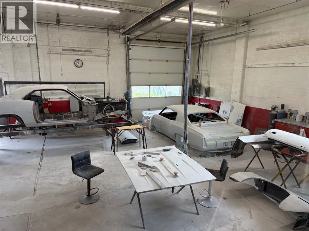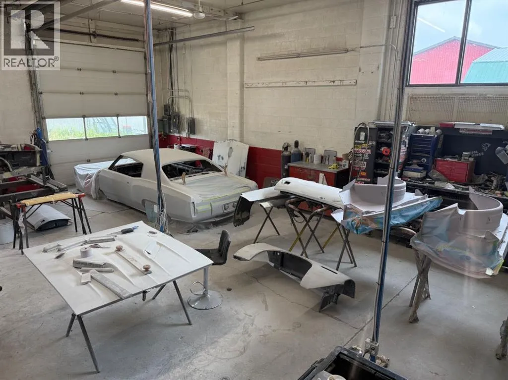 This outstanding commercial property offers incredible potential on a fully fenced, level lot with a paved parking areaâideal for a variety of business operations. Whether you're in cabinetry, auto mechanics, custom bodywork, contracting, or general storage, this 3,066 sq ft building provides a flexible and functional layout to meet your needs.Upon entry, you're welcomed into a bright, spacious showroom complete with an attached office and a two-piece public washroomâperfect for receiving clients or showcasing products. The expansive shop area boasts over 1,600 sq ft of open workspace, tall ceilings, and two 14'x12' overhead doors for easy access to large vehicles and equipment.A standout feature is the 26'x14' spray booth, equipped with an in-floor drain and a nearby mixing roomâideal for automotive or cabinetry painting. An additional two-piece washroom is located in the shop area for convenience. The upper mezzanine offers practical storage, keeping your work floor clear and organized.The exterior is fully clad in durable, low-maintenance tin siding, and the entire lot (101â x 164â) is securely fencedâmaking it excellent for both indoor and outdoor storage. With its high visibility and multi-use potential, this property is a rare opportunity for entrepreneurs looking to expand or establish their business in a well-equipped, move-in-ready space. (id:27476)
