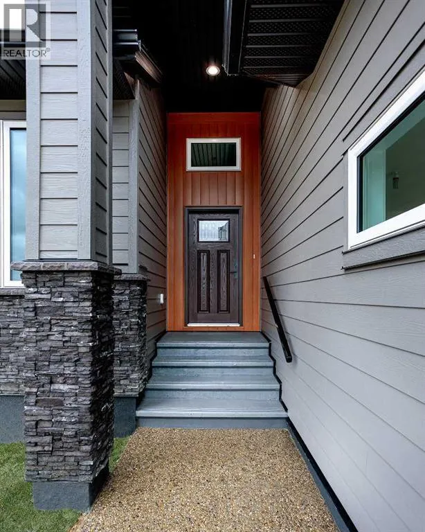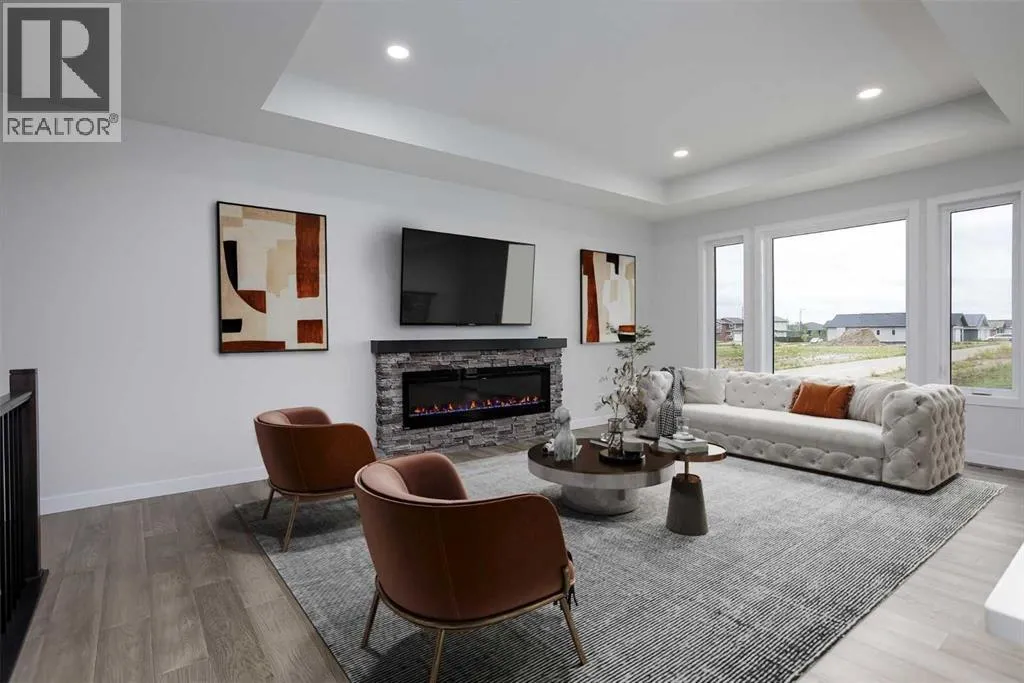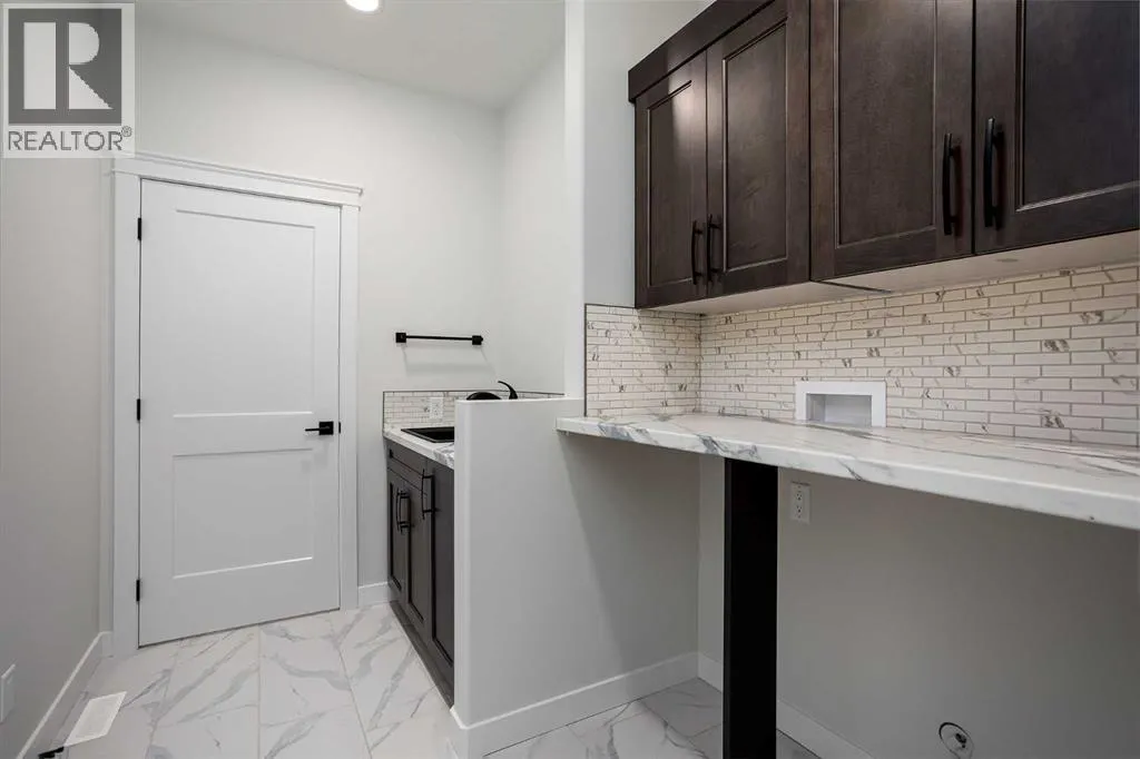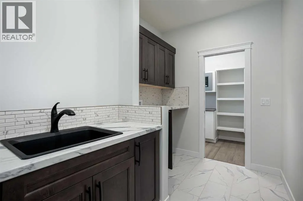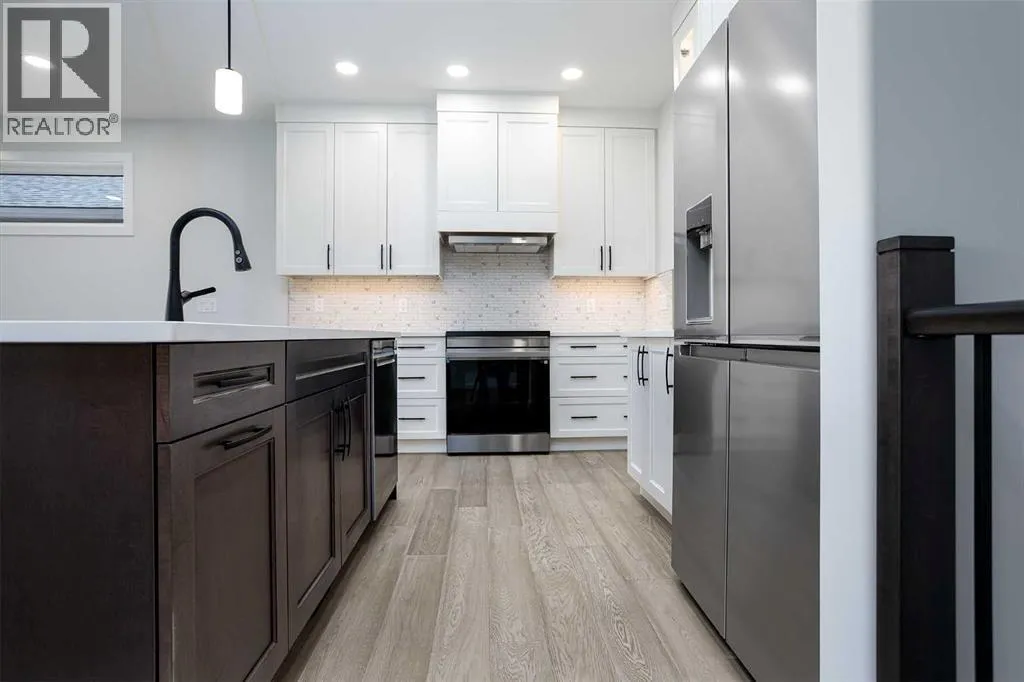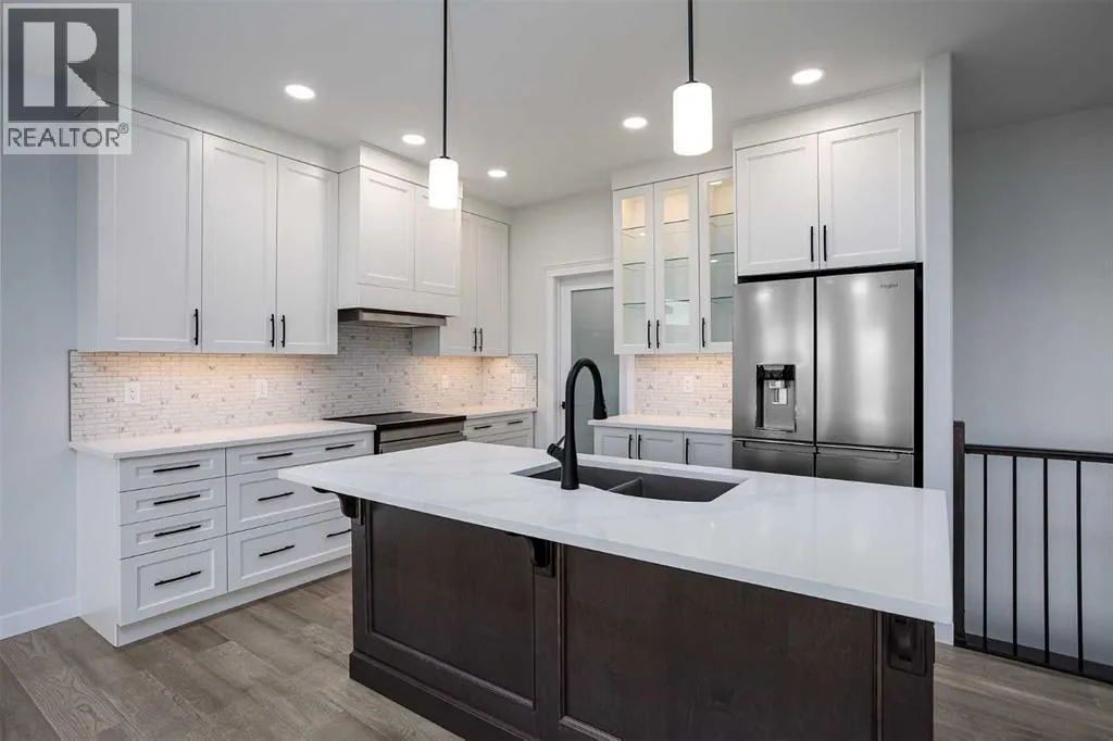 New Quality Built Bungalow. This 1,450 sq. ft. home offers a thoughtfully designed open floor plan with 9' ceilings throughout and a striking 10' coffered ceiling in the living room. A 13' ceiling at the front entry creates a grand first impression, while engineered hardwood floors set the tone for quality and style.The kitchen is a showpiece, featuring white maple cabinetry that extends to the ceiling with accent lighting, quartz countertops, a chic island, and a butler's pantry for convenience. Appliances are upgraded and include a premium induction cooktop. The adjoining dining area provides access to a covered deck with glass railing and natural gas hookup, perfect for year-round BBQs.The living room is highlighted by a modern electric fireplace, while the main-floor laundry with added sink adds everyday functionality. The main bath is finished with quartz countertops and a luxurious 4-piece layout. The primary suite impresses with a walk-in closet, a stunning en-suite with double vanity, heated floor, and a beautifully tiled shower.Downstairs, the fully finished basement continues the high standard of design with 9' ceilings, a spacious family room (roughed in for a bar), two large bedrooms with walk-in closets, and another full 4-piece bath. Vinyl plank flooring and in-floor heat add comfort and style.Additional features include a 26' x 23' garage with epoxy-finished floor and drain, central air conditioning, and central vac with retractable hose. This lot also boasts convenient side alley access. A home built with quality, style, and function in mind. (id:27476)