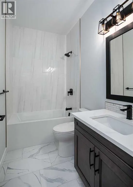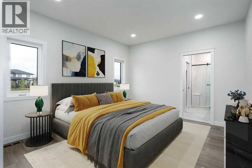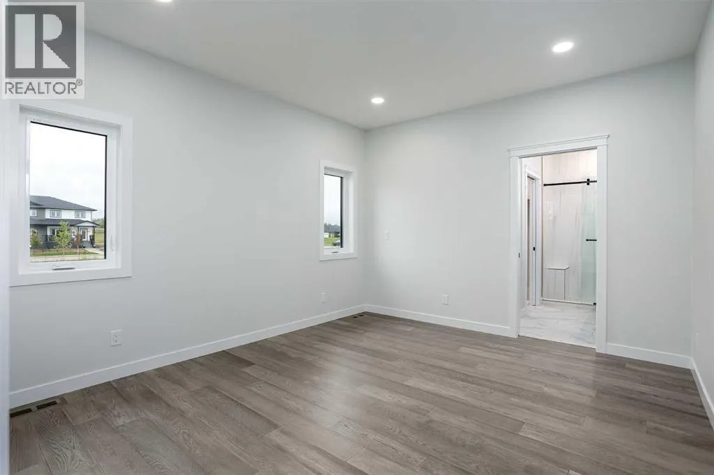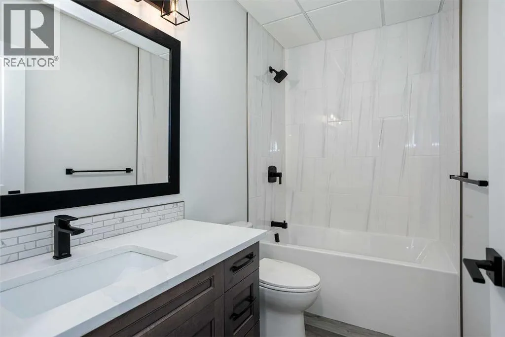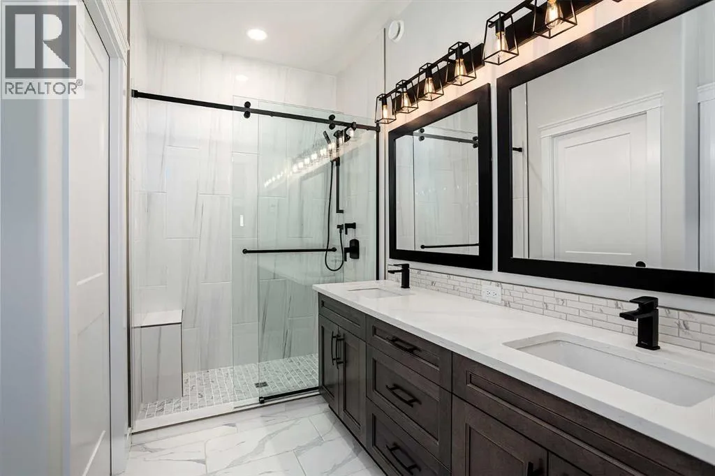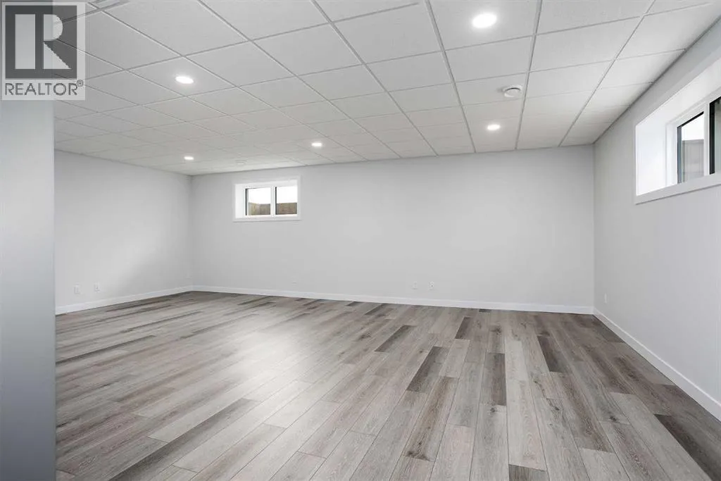 New Quality Built Bungalow. This 1,450 sq. ft. home offers a thoughtfully designed open floor plan with 9' ceilings throughout and a striking 10' coffered ceiling in the living room. A 13' ceiling at the front entry creates a grand first impression, while engineered hardwood floors set the tone for quality and style.The kitchen is a showpiece, featuring white maple cabinetry that extends to the ceiling with accent lighting, quartz countertops, a chic island, and a butler's pantry for convenience. Appliances are upgraded and include a premium induction cooktop. The adjoining dining area provides access to a covered deck with glass railing and natural gas hookup, perfect for year-round BBQs.The living room is highlighted by a modern electric fireplace, while the main-floor laundry with added sink adds everyday functionality. The main bath is finished with quartz countertops and a luxurious 4-piece layout. The primary suite impresses with a walk-in closet, a stunning en-suite with double vanity, heated floor, and a beautifully tiled shower.Downstairs, the fully finished basement continues the high standard of design with 9' ceilings, a spacious family room (roughed in for a bar), two large bedrooms with walk-in closets, and another full 4-piece bath. Vinyl plank flooring and in-floor heat add comfort and style.Additional features include a 26' x 23' garage with epoxy-finished floor and drain, central air conditioning, and central vac with retractable hose. This lot also boasts convenient side alley access. A home built with quality, style, and function in mind. (id:27476)