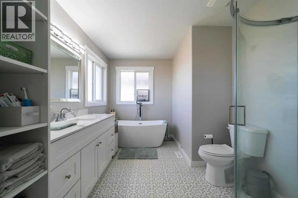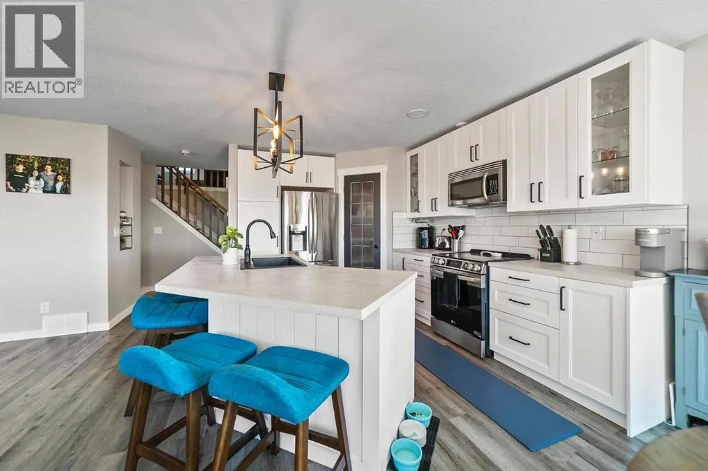 Nestled in the desirable community of Southwest Meadows, is this stunning completely renovated 2 storey dream home. The open concept design is perfect for entertaining, with a spacious living room, dining area, and a bright kitchen with modern cabinetry, quartz counters, vinyl plank floor, walk-in pantry and centre island. Also on the main floor you will find a powder room, laundry area and patio doors that lead you to the back deck for your West facing fantastic view. Upstairs, you'll find a den/office area(or 4th bedroom), bonus space, 3 bedrooms, and a additional 4pc bathroom. The primary suite is an elegant space to unwind from the day. It includes an amazing and thoughtfully designed walk-in closet and a luxurious 4-piece ensuite with soaker tub. The lower level is finished and includes a family room, bedroom and 3pc bathroom. With a fenced landscaped yard with no neighbours behind, large deck, shed, A/C, double heated garage and much more, this home is perfect for growing family. (id:27476)