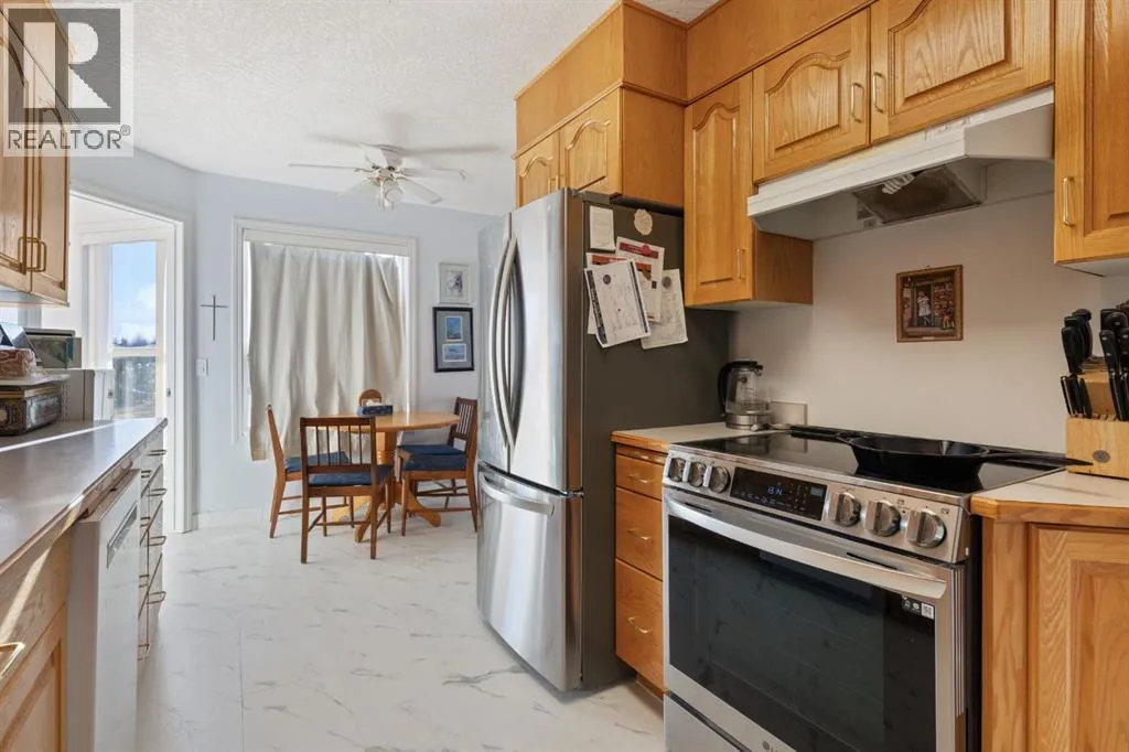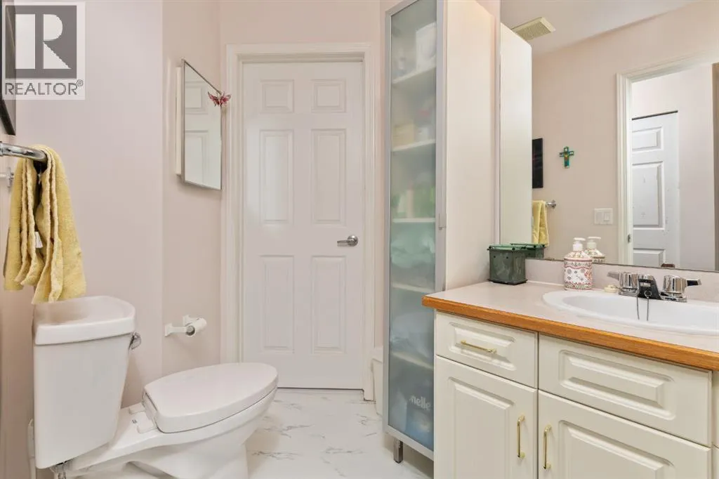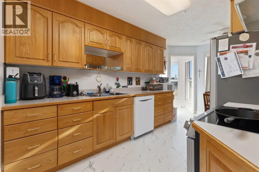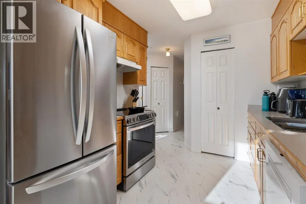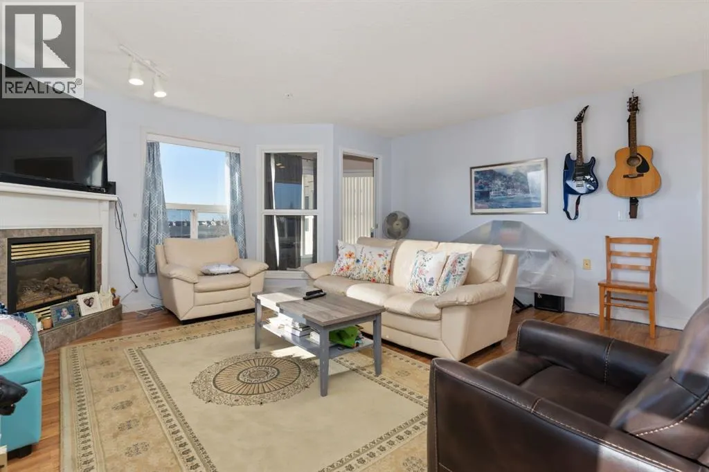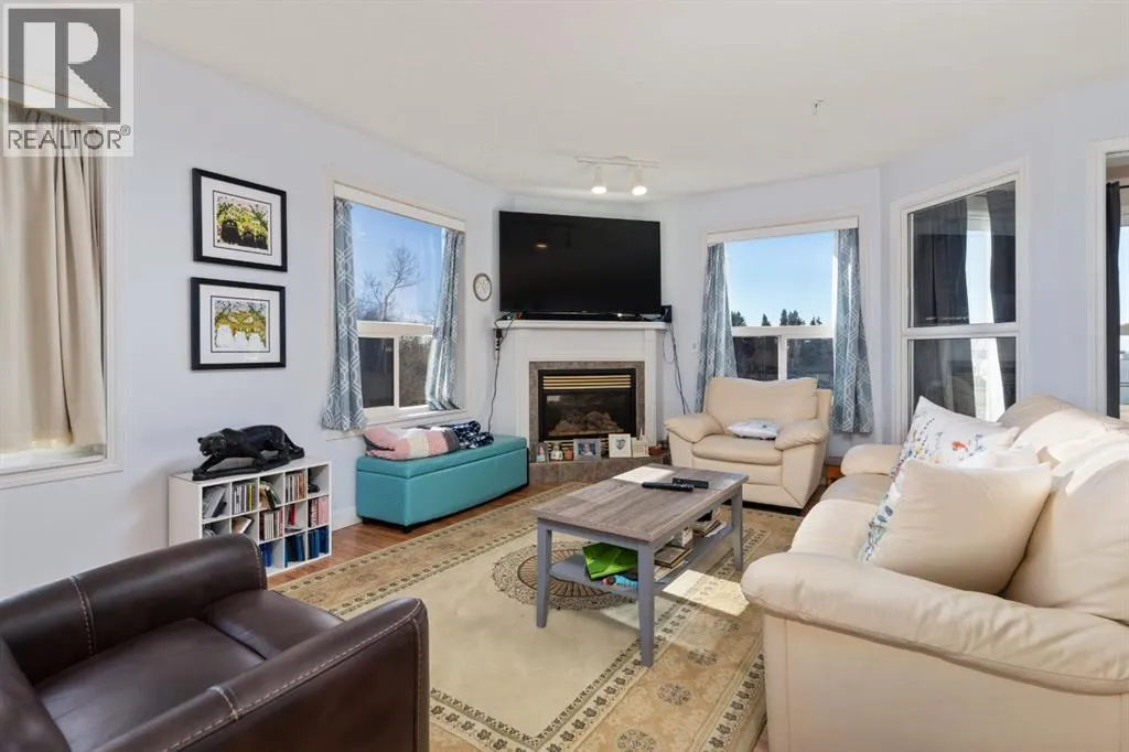 Looking for a bright and spacious condo with a great layout? Welcome to Crown Place! This 2 bedroom, 2 bathroom home has 1246 sq ft of living space, plus sunshine galore thanks to its south AND west exposure. Youâll love the natural light that floods into both sunrooms, the living area, and the bedrooms. On those cooler evenings, the cozy gas fireplace makes the perfect spot to unwind.The primary bedroom is huge, with two sets of double closets and a 3-piece ensuite. The second bedroom also has its own ensuite, which doubles as the main bathroom, making this a fantastic setup for roommates, guests, or just a little extra privacy. In-suite laundry is a great feature with bonus storage space, for those seasonal extras. One of the best features? The wall of south-facing windows with a 3rd floor view of the high school soccer field. Itâs just green grass & trees as far as you can see, a rare find that feels private and peaceful! No need for art on the walls as the natural art changes with the seasons! Crown Place isnât just about the condo unit though. The building itself has a friendly community vibe with a large lobby where theres always someone to chat with over coffee, plus a games room, kitchenette, puzzle/book room, and an exercise room. With shopping, restaurants, and medical clinics nearby, everything you need is right at your fingertips. You'll appreciate the assigned powered parking stall and visitor parking here as well! (id:27476)
