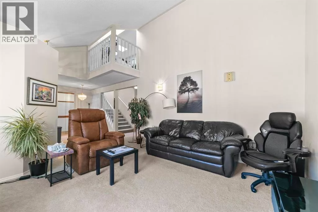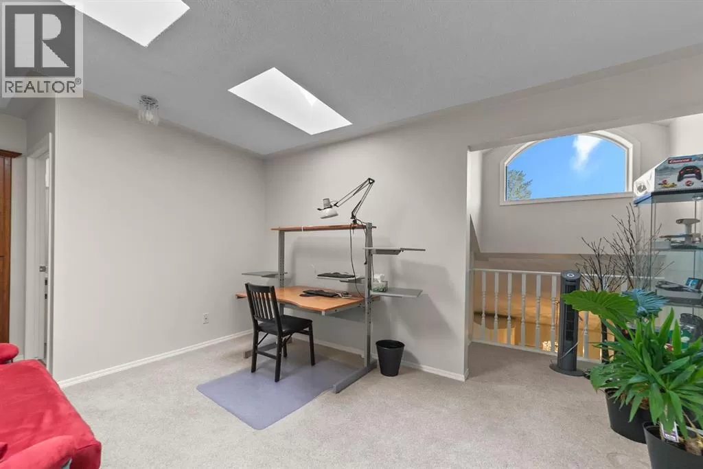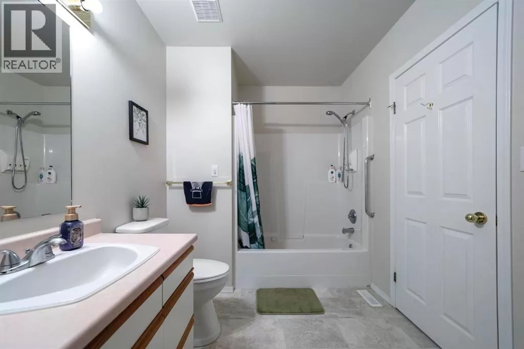 Welcome to Centre Court Condos, where comfort meets convenience in the heart of Camrose! This beautiful 2-bedroom, 2-bathroom condo offers a carefree lifestyle close to downtown, Mirror Lake walking trails, and the Senior Centre. Inside, youâll find vaulted ceilings, an open staircase, and a charming balcony that overlooks the main level. The main floor features a generous primary suite complete with a walk-in closet and ensuite, as well as the convenience of main floor laundry. Upstairs, enjoy a bright bonus room with a skylight, a second bedroom, and another full bathroomâperfect for guests or hobbies. The lower level is a blank canvas ready for your personal touch, with plenty of room for storage. A single attached garage adds to the appeal of this low-maintenance, well-located home. (id:27476)