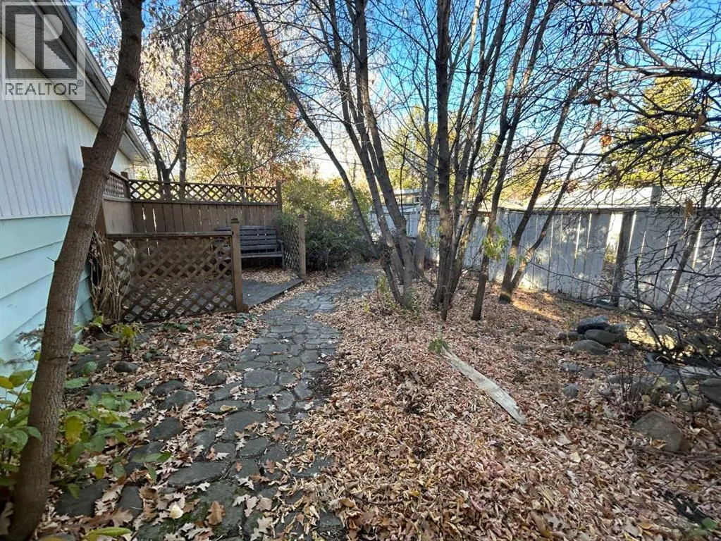 Charming well kept bungalow 2 blocks from UofA campus! This hidden gem is tucked away in a quiet crescent. SHhhh It is so quiet and secluded that most Camrosians don't even know it exists. Nestled within the sought after neighbourhood of the prestigeous Augustana University campus . You are welsomed in by the The open concept great room is filled with natural light in all directions. The updated kitchen offers 3 appliances including a gas range for the seasoned chef in the house. Even the one stuck doing dishes wont mind as they look onto the large private back yard. The main floor also offers 2 generous sized bedrooms.and a large 4 pc bath. There is also another full kitchen and separate living space in the bright open basement with a large bedroom and 3 piece bath .The basement offers an additional infloor hot water heating system (currently not in use) to keep it cozy through the winter months. The back entrance offers access to a shared main floor laundry and large concrete driveway. The oversized single garage with attached workshop as well as a multifunctional room that is drywalled and painted. Outside, a stone walkway will lead you into a whimsical little secret garden area with a quiet seating area and fountain all shaded by a mature natural canopy of mature trees. note:sewer line to street has been replace (id:27476)