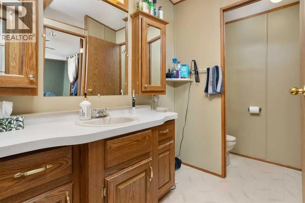 Affordable and close to two schools, this 3-bedroom, 2 bath mobile sits on its own lot! This 1993 mobile is situated on a 40x140 lot with tons of parking and space for the kids. As you walk in, youâll find two well sized bedrooms on the west end of the home along with a four-piece bathroom. Central to the home is a large living room with and a spacious open kitchen with eating area that boasts lots of cupboard and counter space. Further down the hallway there is a separate laundry room with space for a freezer or storage. Capping off the home is a large primary bedroom with its own four piece en-suite. Completing the home is a north facing 10x16 deck and a spacious back yard with a small shed for storage of your lawn mower and other yard equipment. This turnkey home is ready for you and your family. (id:27476)
