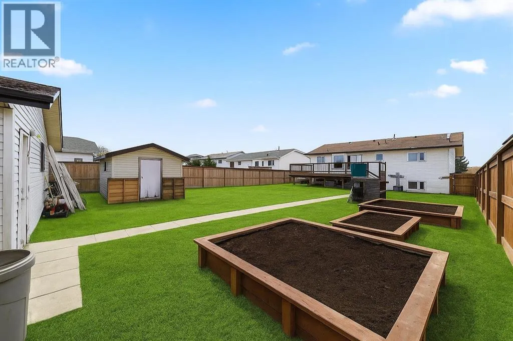 ***YOUâRE INVITED TO OUR OPEN HOUSE AT 5419 53rd STREET, CAMROSE AB, THIS SATURDAY, NOVEMBER 8th, FROM 11 AM - 2 PM*** Welcome to this beautifully maintained 6-bedroom, 3-bathroom bi-level. The bright and inviting main level offers a seamless blend of comfort and functionality, featuring newer vinyl and tile flooring, warm wood tones, and newer vinyl windows that fill the space with natural light. The east-facing kitchen provides a warm & cheerful place to enjoy your morning coffee or tea and has plenty of oak cabinetry & prep space, with a cozy dining area that opens directly onto a massive 15â Ã 20â deck, perfect for family BBQs and summer evenings outdoors.Down the hall, the primary bedroom includes a private 2-piece ensuite, while two additional bedrooms and a full 4-piece bath complete the main level. Enjoy year-round comfort with central air conditioning to keep the home cool through the warmer months. The lower level continues to impress with large bi-level windows, a generous family room ideal for movie nights or kidsâ play space, three more bedrooms, a 3-piece bathroom, and ample storage throughout.Outside, youâll love the extra-deep 196 ft lot that offers space for everyone, a fully fenced backyard (fenced was redone about 5 years ago) with raised garden beds, a 24â Ã 24â detached garage, 14â Ã 10â storage shed, additional parking pad with room for your RV, and still plenty of yard to enjoy.This home delivers exceptional value, flexibility, and room to grow, all within easy reach of schools, parks, shopping, and walking trails. Donât miss your chance to make it yours! (id:27476)