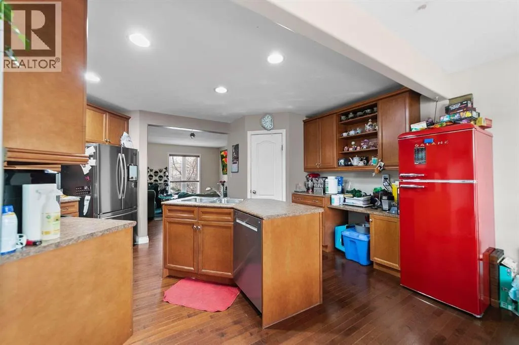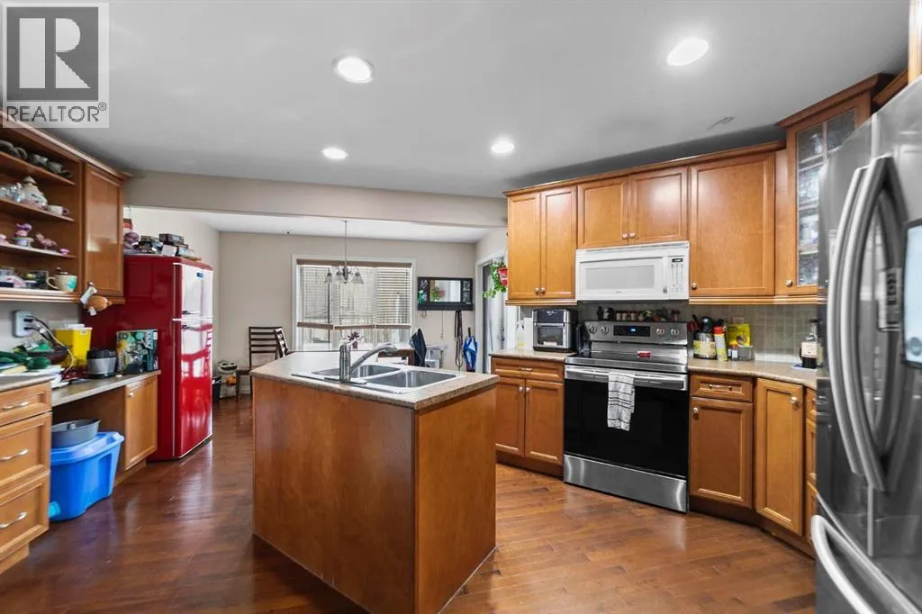 Discover this impressive two-storey home in the desirable community of Valleyview! The main floor offers a warm and inviting living room with a cozy gas fireplace, along with a bright, open kitchen and dining area featuring tons of cabinet space, a corner pantry, and a functional island. A convenient main-floor laundry room and 2-piece bath complete the level. Upstairs, youâll find a spacious bonus room, three comfortable bedrooms, and two bathrooms, including a primary suite with a walk-in closet, en-suite, and its own private balconyâperfect for morning coffee. The basement is partially finished, giving you room to expand. You will enjoy the A/C during the summer months! Outside, enjoy a fully fenced and private yard with low-maintenance vinyl fencing, stamped concrete, and a lovely deck for entertaining. An attached heated double garage and additional RV parking make this home an exceptional find. (id:27476)