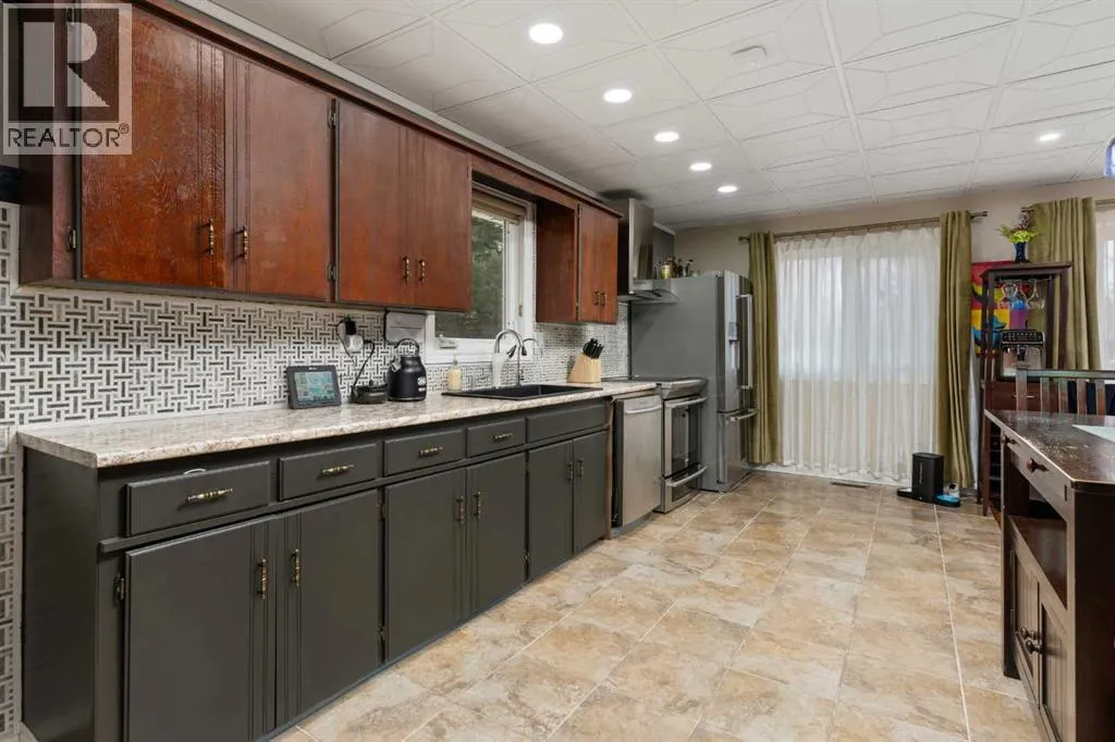 Welcome to this beautifully cared-for 1,053 sq. ft. four-bedroom bungalow, perfectly situated in a quiet close and backing onto a serene, picturesque greenspace. This home has been extensively updated inside and out, offering comfort, style, and modern convenience in every corner. Step inside to discover upgraded windows, flooring, shingles, furnace, paint, designer backsplash and countertops, and so much more. The exterior has also been refreshed with stunning finishes and inviting perennial beds framed by attractive border retainers, creating incredible curb appeal. All appliances have been recently purchased to complete the homeâs transformation. Prepare to be amazed by the gorgeous, fully renovated bathroomâa true showstopper with high-tech touches, including a $9K luxury lavatory featuring a heated seat, bidet, and automatic open/close function. This home is truly a tech loverâs dream, with smart lighting throughout that can be controlled with an app for added enjoyment and security. Youâll love the spacious living room, filled with natural light from large windows. The open-concept kitchen and dining area is perfect for everyday living, showcasing updated countertops and a stylish new backsplash. All four bedrooms are generously sized, and the upgraded four-piece bath offers additional comfort and functionality. The full basement provides a highly workable layout with abundant storage, offering a fantastic opportunity to develop the space to your personal taste. Additional upgrades include a Smart Irrigation System, Smart Automatic Lawnmower and an updated sewer line (2020). Outdoors, the property continues to impress with a massive 24' x 30' heated garage with back-alley access and ample room for RV parking. The beautifully landscaped yard feels like your own private park, complete with a charming gazebo to enjoy during the summer months.Donât miss out on this fabulous, move-in-ready home that blends comfort, technology, and timeless charmâall backing onto a stunning greenspace! (id:27476)