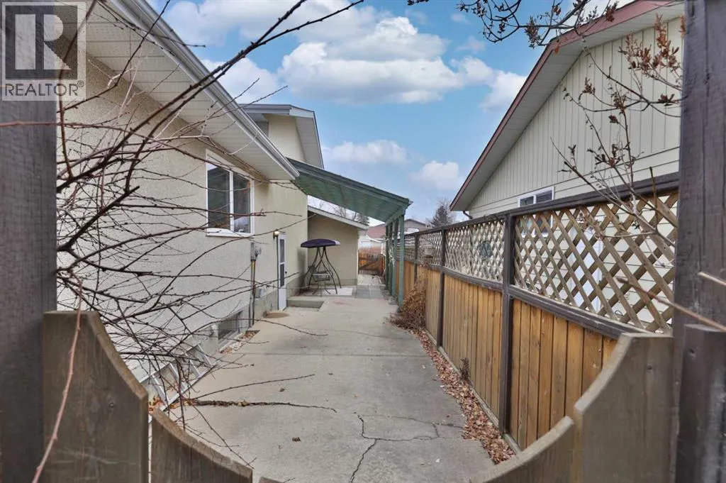 This lovely Century Meadows duplex is ready for you to call it HOME! It offers 4 bedrooms, 2 washrooms on 4 levels of living space. Welcoming you into the home is nice exposed aggregate sidewalk. As you enter the home, the main level has a spacious living room looking out to the west and the kitchen/eating area soaks up the south facing sun. The upper level has 2 bedrooms and the main 4 pc. washroom. The lower level has 2 more bedrooms and a nice 3 pc. washroom and one of the BEST parts is the SIDE ENTRY to the south patio and fenced yard. (providing perfect access for that independent teenager or family member) The basement (4th level) has a HUGE family room, laundry space, storage room AND crawl space under the 3rd level. Back out on the covered patio, you'll appreciate the privacy of the small yard, access to the single car garage and the extra parking. The most recent upgrades are fresh paint and NEW SHINGLES on the house and garage in 2024 (plus 2 new vents in the garage). (id:27476)