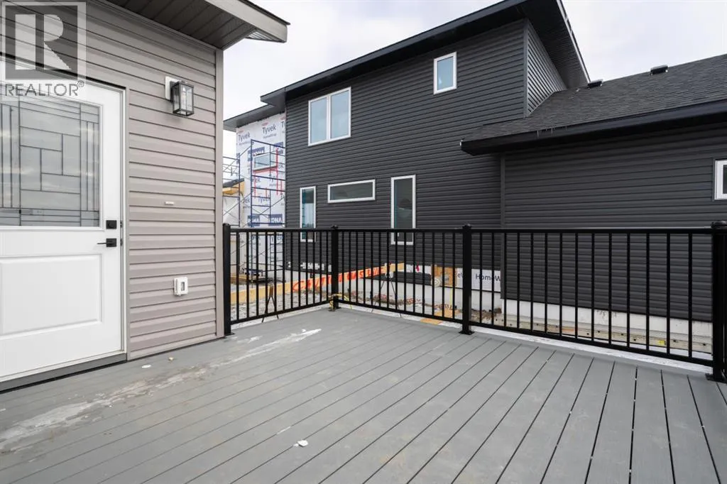 Brand New Two Storey Built by Battle River Homes! Great Location - Southside Camrose - close to walking trails and steps away from the newly opened Catholic High School. Incredible Family Floor plan featuring a bright and open main-floor plan with 9ft ceilings, vinyl plank flooring and tons of extra windows for all your natural light. You'll love the traditional front living room, great dining area with room to expand plus an incredible kitchen that sees quartz counters, large central island with eating bar, white cabinetry and a full 5'6x5'6 walk-in pantry. Balancing out the main level is a rear entry with 2pc and access out to 12'6x13 no maintenance deck and back yard. Upper level has 3 great sized bedrooms with the 2 spare rooms giving plenty of space for bedroom sets and a nook for desk/dresser option. The Primary Bedroom is a stunner with extra windows, a 7'2x7'2 walk-in closet and a private 4pc ensuite with dual sinks and full shower with tile and bench seating. A full 4pc bath plus a dedicated laundry room round out the upper level - a fantastic perk of this home. ICF Basement - unfinished - lays out well for additional bedroom, living area, future bathroom and storage. Paved Back Lane gives access to the Attached 25x27 Rear Garage - Fully Finished with high ceilings, epoxy floors, extra windows, view to the front street and a floor drain. Another Quality Built Home from Battle River Homes! (id:27476)