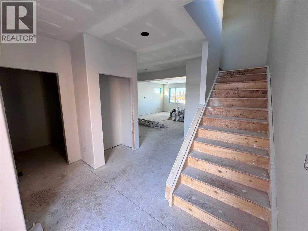 Brand New Two Storey Built by Battle River Homes! Great Location - Southside Camrose - close to walking trails and steps away from the newly opened Catholic High School. Incredible Family Floor plan featuring a bright and open main-floor plan with 9ft ceilings, vinyl plank flooring and tons of extra windows for all your natural light. You'll love the traditional front living room, great dining area with room to expand plus an incredible kitchen that sees quartz counters, large central island with eating bar, white cabinetry and a full 5'6x5'6 walk-in pantry. Balancing out the main level is a rear entry with 2pc and access out to 12'6x13 no maintenance deck and back yard. Upper level has 3 great sized bedrooms with the 2 spare rooms giving plenty of space for bedroom sets and a nook for desk/dresser option. The Primary Bedroom is a stunner with extra windows, a 7'2x7'2 walk-in closet and a private 4pc ensuite with dual sinks and full shower with tile and bench seating. A full 4pc bath plus a dedicated laundry room round out the upper level - a fantastic perk of this home. ICF Basement - unfinished - lays out well for additional bedroom, living area, future bathroom and storage. Paved Back Lane gives access to the Attached 25x27 Rear Garage - Fully Finished with high ceilings, epoxy floors, extra windows, view to the front street and a floor drain. Another Quality Built Home from Battle River Homes! *Under Construction - Projected end of January Completion* (id:27476)