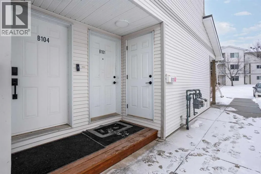 GROUND FLOOR CONDO FOR IMMEDIATE POSSESSION! Perfect property for those who don't want stairs. Fresh paint & vinyl flooring. Kitchen with an abundance of counter space. Living room gives lots of natural light and is just steps from your parking spot. Two bedrooms and a full 4-piece bathroom. Full laundry service and a new hot water tank in 2025. Additional storage room immediately outside your unit. Walking distance from all the west end grocery stores, shopping, & the Camrose Golf Course as well. (id:27476)