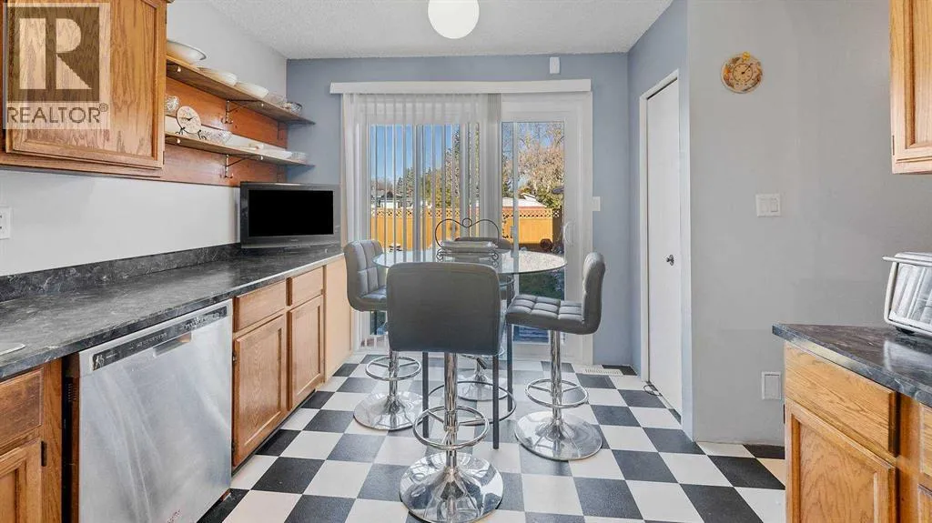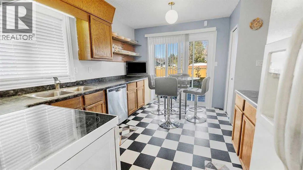 Welcome to this lovingly cared-for 1976 custom home, perfectly situated in one of Camroseâs desirable neighborhoodsâjust steps from schools, shopping, and parks. From the moment you arrive, youâll appreciate the warmth and character this home offers.The main floor features a cozy sunken living room with a wood-burning fireplace, perfect for relaxing evenings. Youâll also find a bright dining area, a private kitchen with a charming eat-in nookâideal for morning coffeeâand the convenience of main floor laundry. A 2-piece bathroom and plenty of storage add to the homeâs thoughtful layout.Upstairs offers two spacious bedrooms and a full bathroom. The primary bedroom is tucked away for added privacy and features its own 2-piece ensuite and a walk-in closet.The lower level provides even more living space with a large rec room, a 3-piece bathroom, and a versatile flex area with exterior access. This space also includes an additional laundry hookup, offering great flexibility for guests, a home office or hobbies.Step outside to enjoy the fully fenced backyard with plenty of space to relax, garden, or entertain. A double detached garage, extra parking, and a front carport provide plenty of room for vehicles and storage.Lovingly maintained over the years, the home also features newer windows and exterior doors for added comfort and efficiency. Move in and enjoy it as is, or bring your ideas and add your own modern touchâthis is a wonderful opportunity to make a great home your own in an unbeatable location! (id:27476)