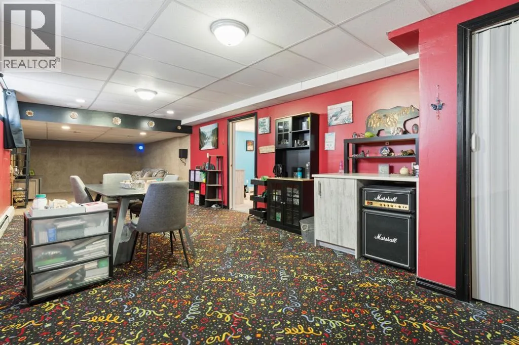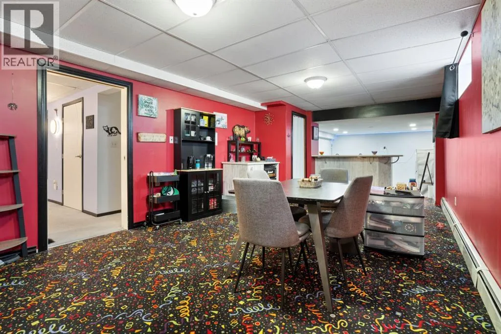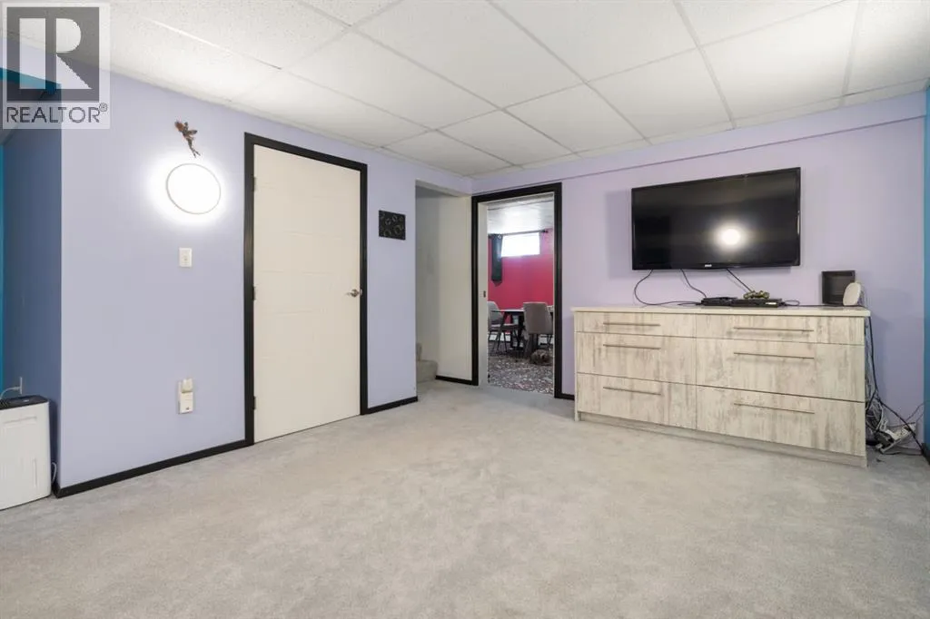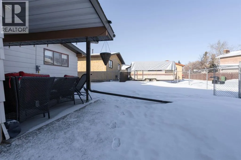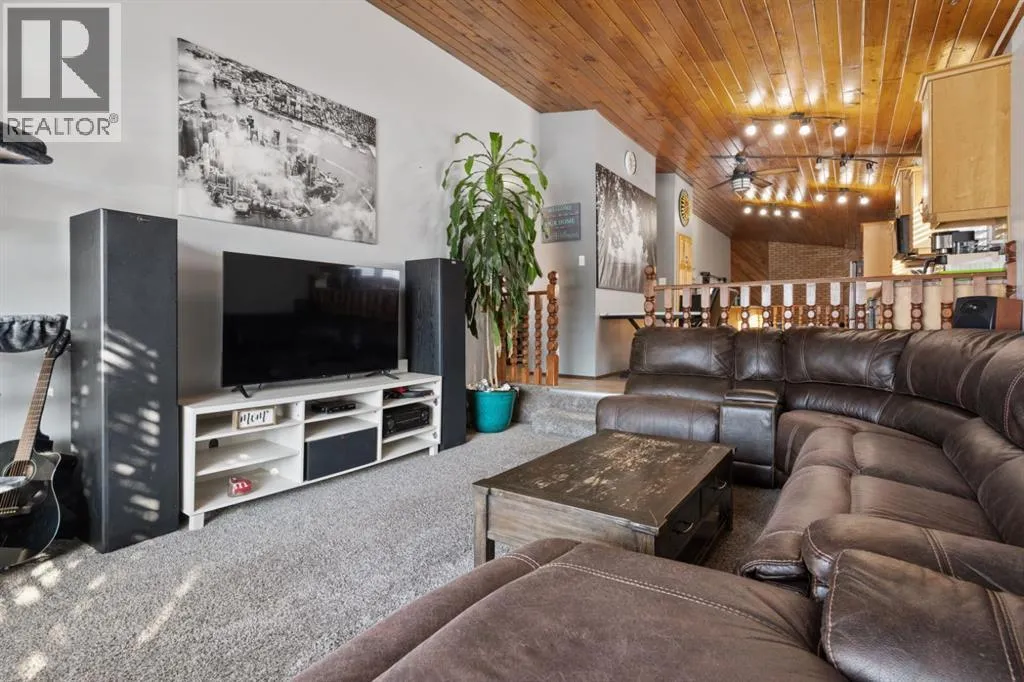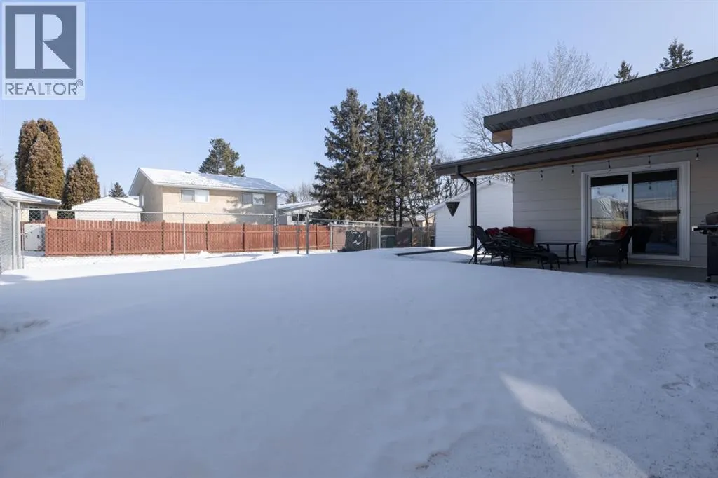 Homes like this donât come along often ! A spacious 1,594 sq ft bungalow with eye catching architecture, soaring vaulted ceilings, and room for the whole family. From the moment you arrive, the unique architecture and inviting front porch create a warm first impression that sets this home apart. Step inside and youâre immediately greeted by soaring vaulted ceilings that carry through the kitchen, living room, and dining area, creating an open, airy space filled with natural light.The heart of the home is the spacious kitchen with an abundance of cabinets and countertop space, perfect for everything from busy school mornings to weekend baking marathons. The kitchen flows effortlessly into the dining and living areas where a cozy wood burning fireplace invites everyone to gather and unwind. Patio doors lead you out to a large fenced backyard with RV parking, giving kids and pets plenty of room to play while still having space for summer BBQs and backyard gatherings.With 1,594 sq ft on the main floor, this bungalow offers the space families are always searching for. There are three bedrooms plus a comfortable primary suite featuring a walk-through closet and private 3 pc ensuite, along with a 4 pc main bathroom.Downstairs is where the fun really begins. The expansive basement offers multiple spaces to spread out, including a family room, media room, and a rec room complete with playful theatre style carpet and a dry bar perfect for movie nights, game days, or hosting friends. Two additional bedrooms connected by a walk-through closet, a 3 pc bathroom, and laundry complete the lower level.Located in a fantastic neighbourhood close to schools, playgrounds, and walking distance to west end shopping, this home offers the space, comfort, and community every family hopes to find. (id:27476)