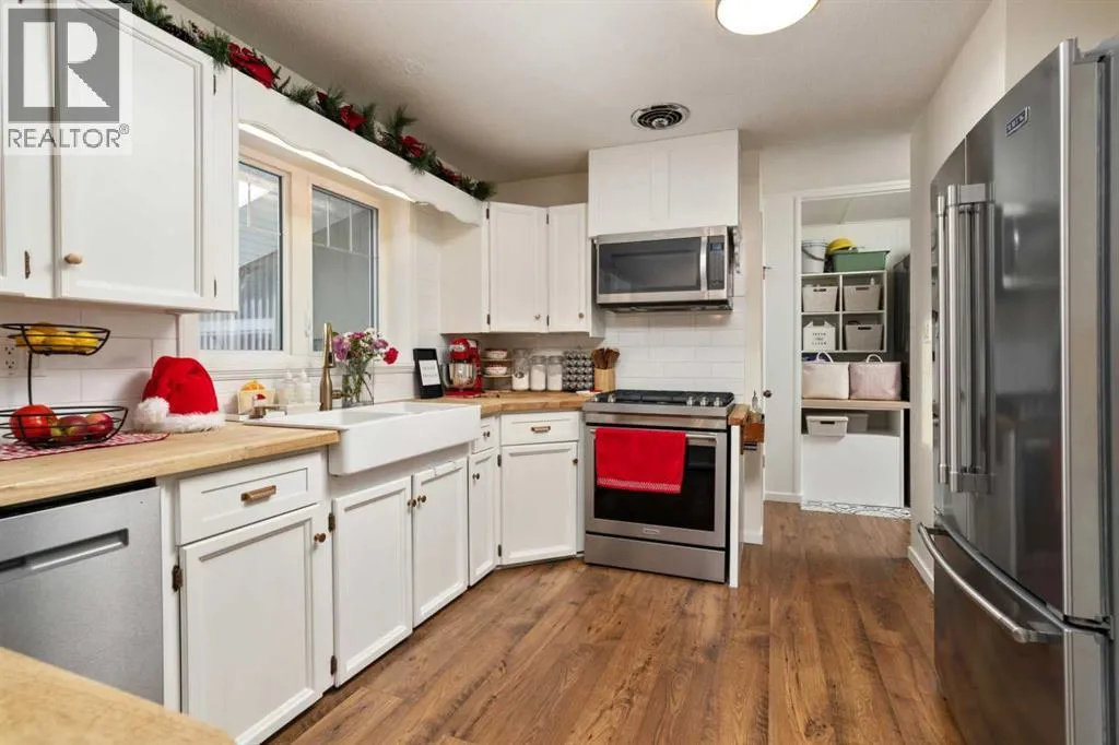 Cozy & Warm Family Home Near Mirror LakeStep inside this updated and inviting bungalow, just a stoneâs throw from the scenic Mirror Lake walking paths. This move-in ready 4-bedroom, 2-bathroom home offers a perfect blend of comfort, charm, and thoughtful upgrades throughout.Enjoy cooking and gathering in the beautiful, large kitchen featuring new updated appliances, refreshed countertops, and a stylish farmhouse sink. The home has been tastefully upgraded with new paint, modern doors and trim, built-in closets, and the convenience of main floor laundry. Major mechanical updates include a new furnace and Navien hot water on demand for energy-efficient living.The fully finished basement provides exceptional versatility with an extra kitchen, ample storage, and generous living spacesâideal for extended family, hobbies, or entertaining.Outside, relax on the private deck overlooking the fully fenced yard, complete with a charming white picket fence in the front. The attached carport offers great storage options and has the potential to be easily converted into a single garage. With newer vinyl siding, windows, and roof, this home is truly turnkey.A warm, updated family home in an unbeatable locationâdonât miss this one! (id:27476)
