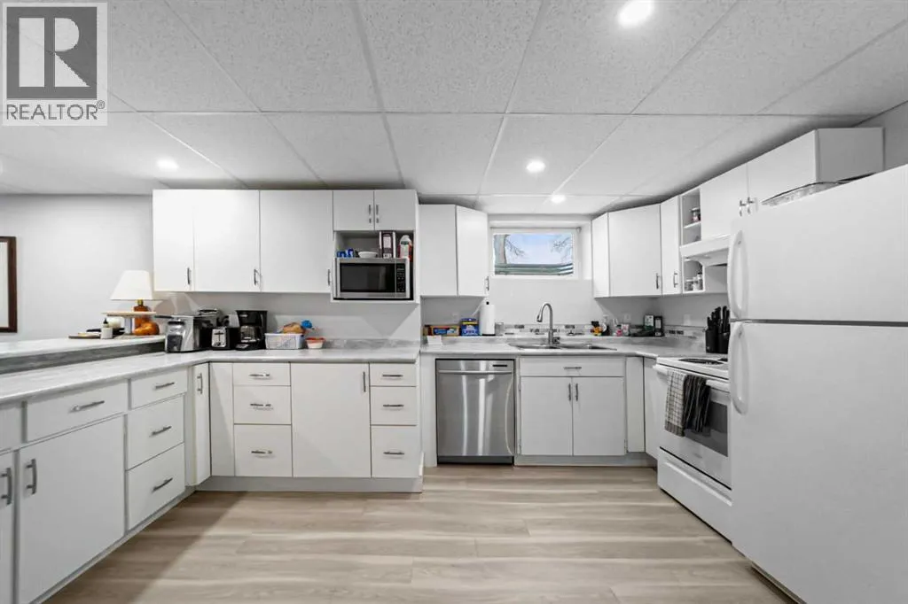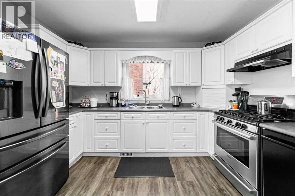 Welcome to this well-maintained, move-in-ready family home located in a quiet neighborhood in Camrose. The main floor features 3 bedrooms and 1.5 bathrooms, including a convenient 2-piece ensuite off the primary bedroom. The bright and functional kitchen offers newer appliances and a gas stove, while main floor laundry adds everyday convenience. The newly developed basement provides excellent additional living space with kitchen, living room, dining area, one bedroom, a full bathroom, plus a second set of laundry. Important mechanical updates include a new furnace (2024), central air conditioning (2024), and a newer hot water tank. Outside youâll find a finished and heated double garage with built in storage, a large greenhouse, a fully fenced yard with patio, fruit trees, and a garden area. Alley access adds extra convenience and additional parking. This property shows nicely and offers a great combination of comfort, functionality, and outdoor space in a desirable, quiet location. (id:27476)