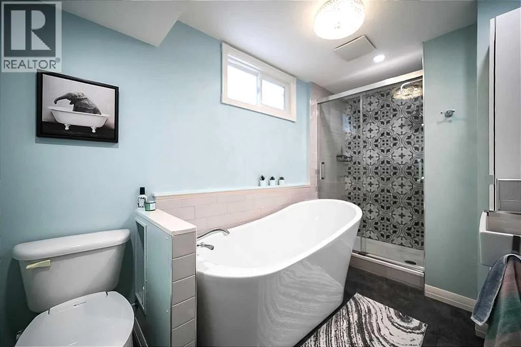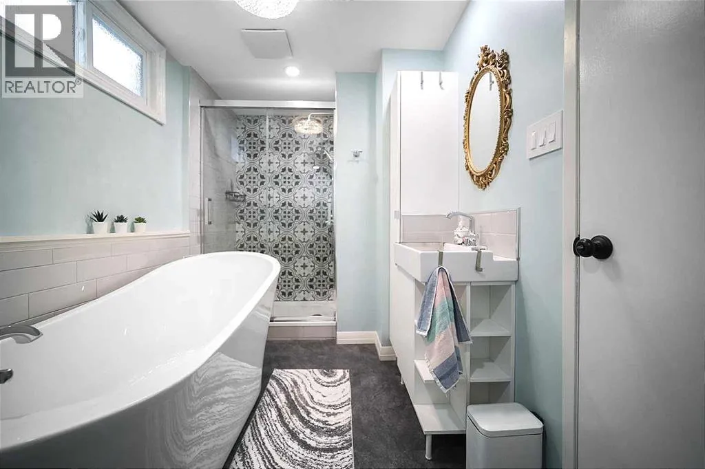 What a welcoming place to call HOME! Thoroughly and thoughtfully updated both inside and out, this entirely charming 3 bedroom, 2 full-bath Camrose bungalow is truly something to behold. Tasteful and stylish finishes greet you from the street with freshly painted siding, updated shingles, manicured lawn, crisp vinyl windows and decorative detail on the gates to the fully fenced yard. Upon entry, you'll notice the awesomeness in layers - warm and neutral vinyl plank flooring, fresh paint, cohesive light fixtures, a mosaic mantle surrounding the electric fireplace and a floorplan that flows. You might agree that the heart of the home is the entirely updated kitchen (2020); complete with counters, cupboards, appliances, sink, tile backsplash, vinyl window frames and a functionally ideal dining area. For added convenience, the patio doors lead you onto the 18' x 12' deck where grilling, gathering and relaxing can continue outdoors! Two spacious bedrooms also grace the main floor, along with a custom 4 piece bath with new and matching colorful fixtures, vanity, tile, trims and even in-floor heating. Heading downstairs, the foyer at the back door entrance offers a place to drop your bags, hang your hat and store your boots, while a few steps down lead you to a basement that everyone will want to use! The bath on this level features a tiled walk-in shower, soaker tub and updated vanity too - a spa experience at home! There's also a spacious rec area, flex space, third bedroom, cold storage, and nice open laundry room. The whole family has a newly fenced back yard to enjoy here with a level lawn and shade from a mature mountain ash tree, plus a double detached garage + parking pad with alley access to accommodate toys, vehicles and even RV parking. The location offers excellent proximity to schools and playgrounds, downtown amenities and privacy from busy streets. The shingles on the garage are the only thing left on the to-do list, don't wait to book your viewing at th is one! (id:27476)